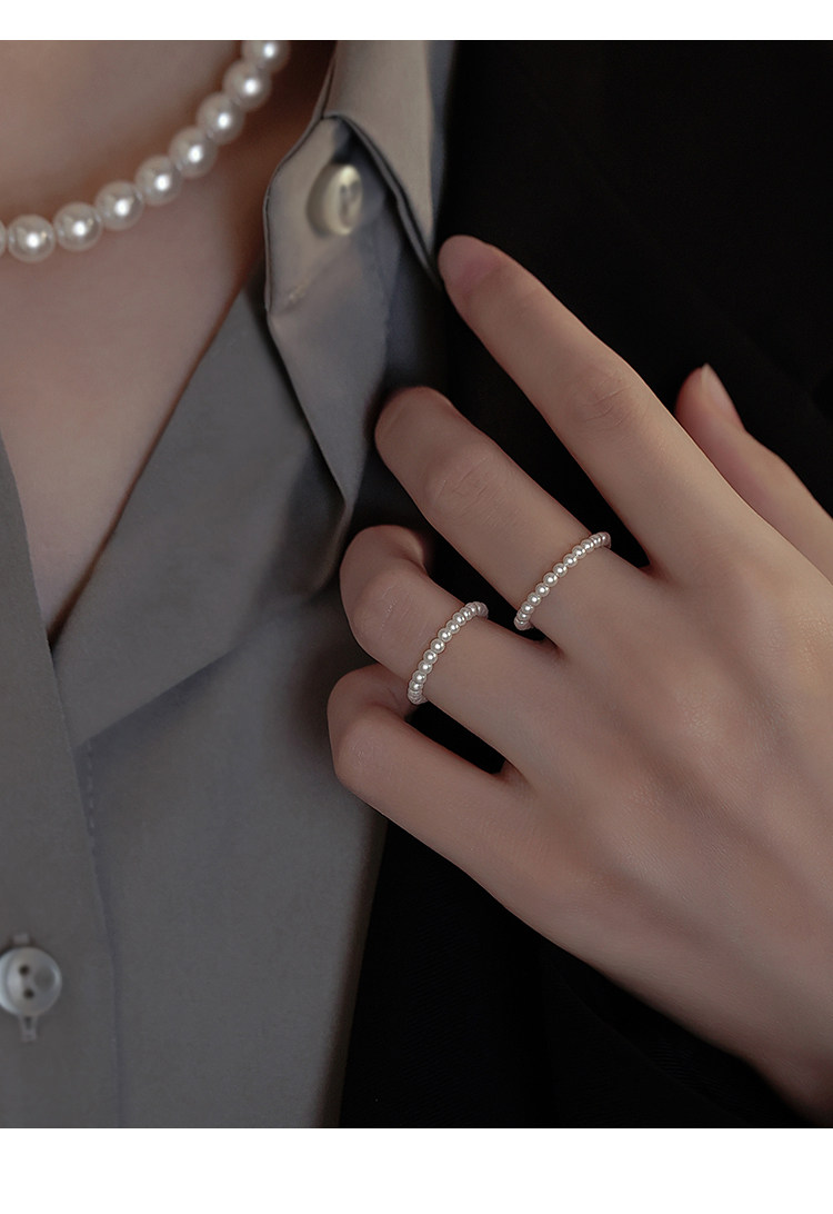 925 Sterling Silver Pearl Ring, Stackable Plain Band Ring, Niche High-End Women's Light Luxury Beaded Index Finger Ring