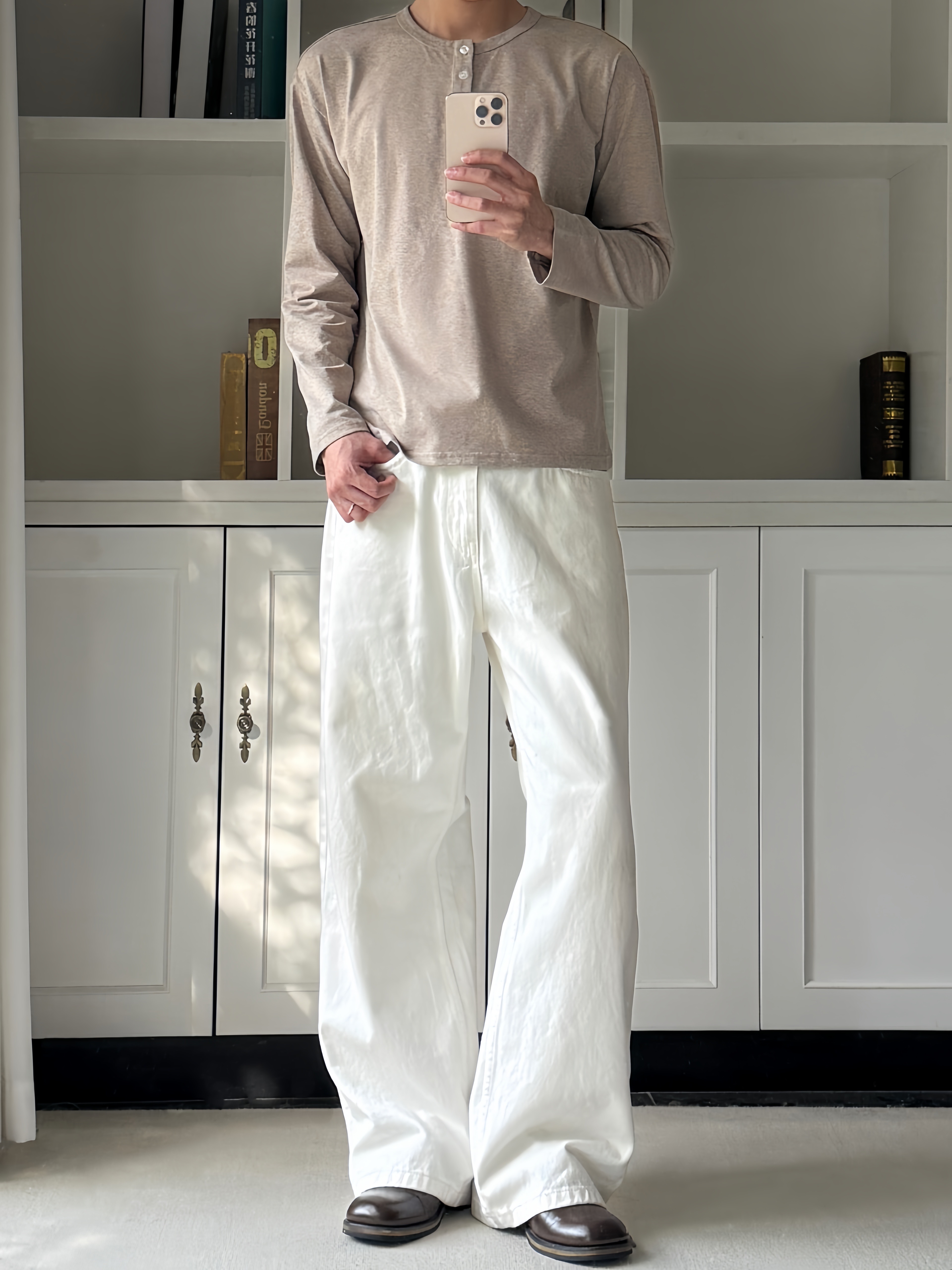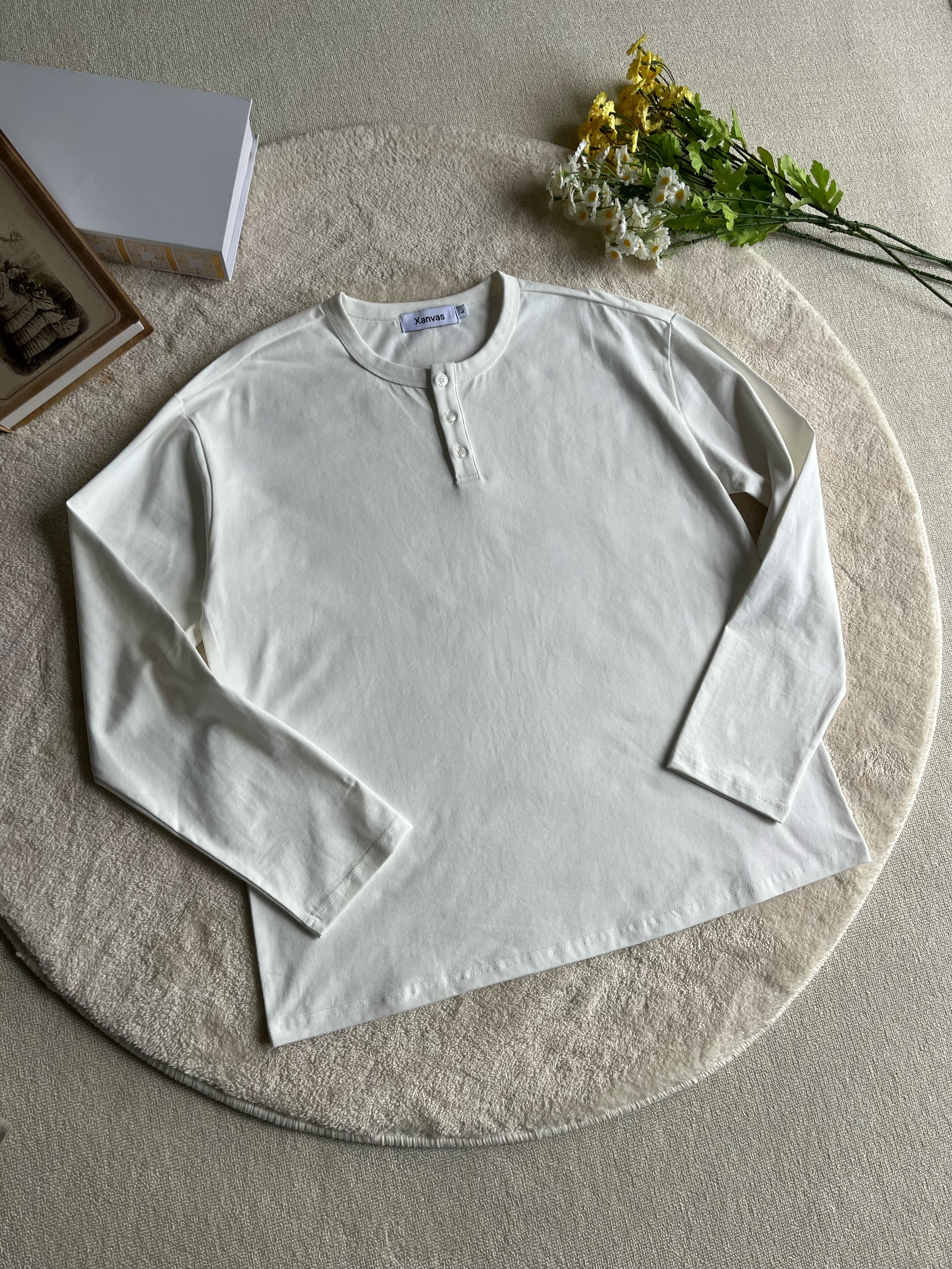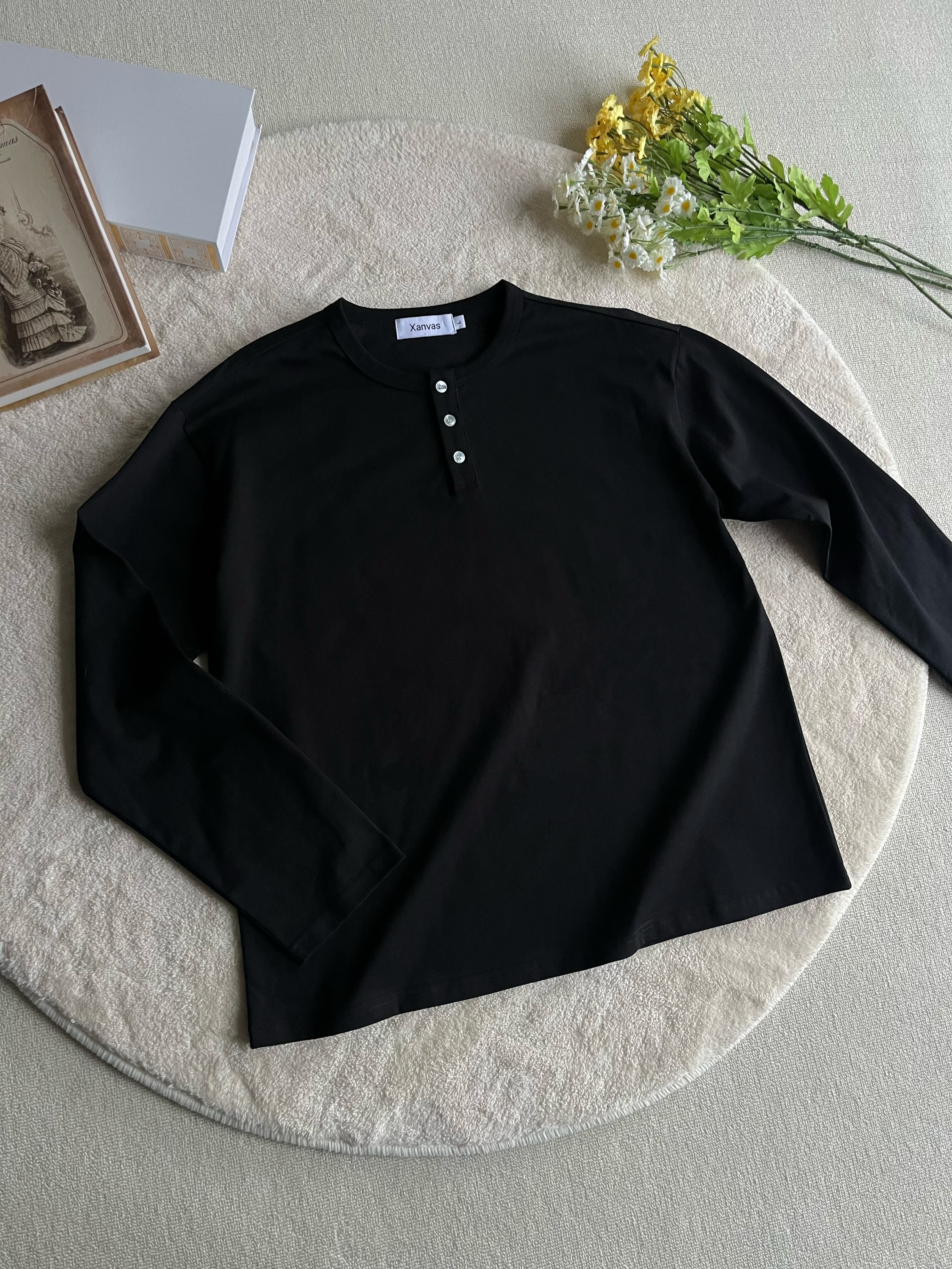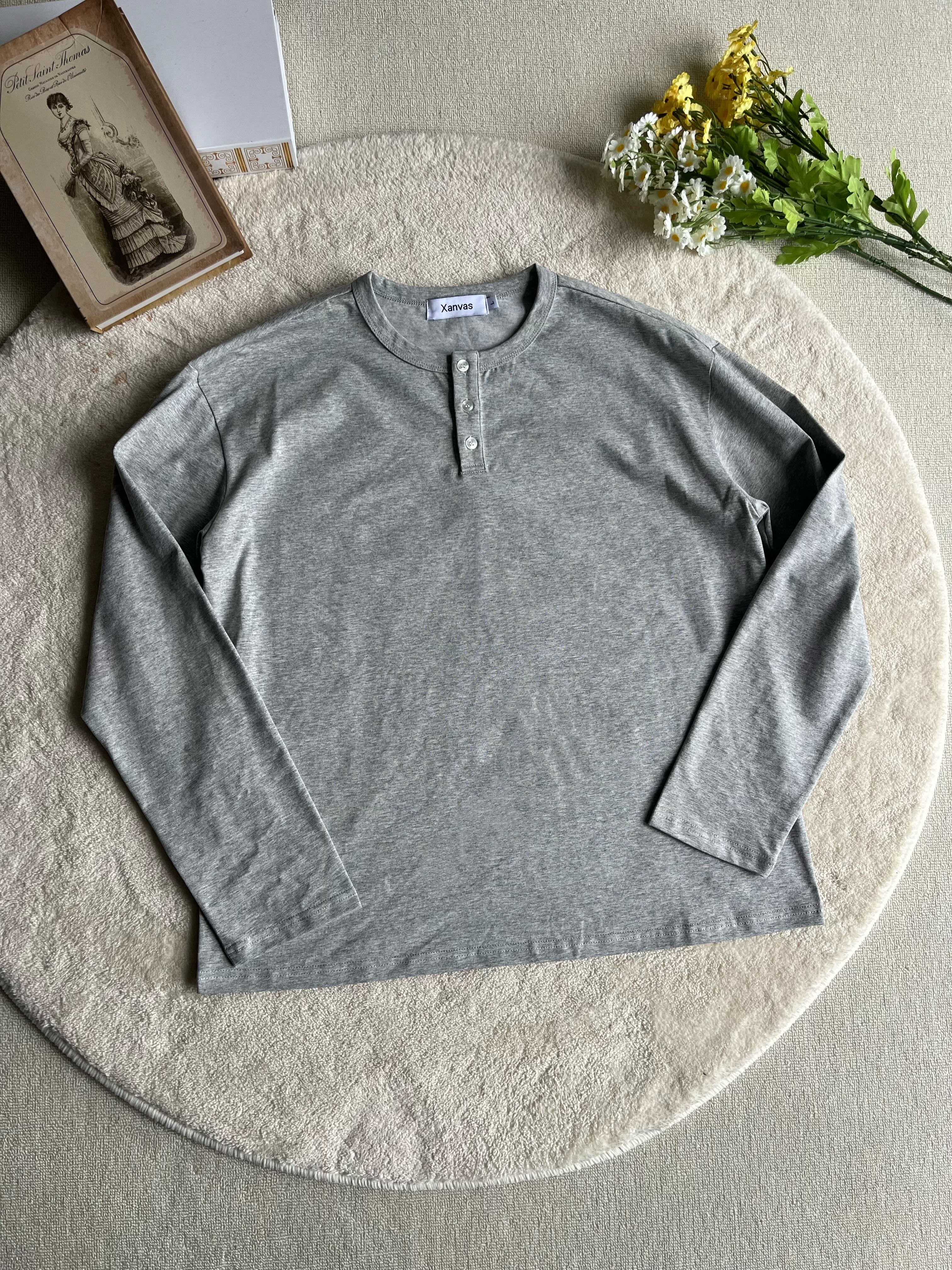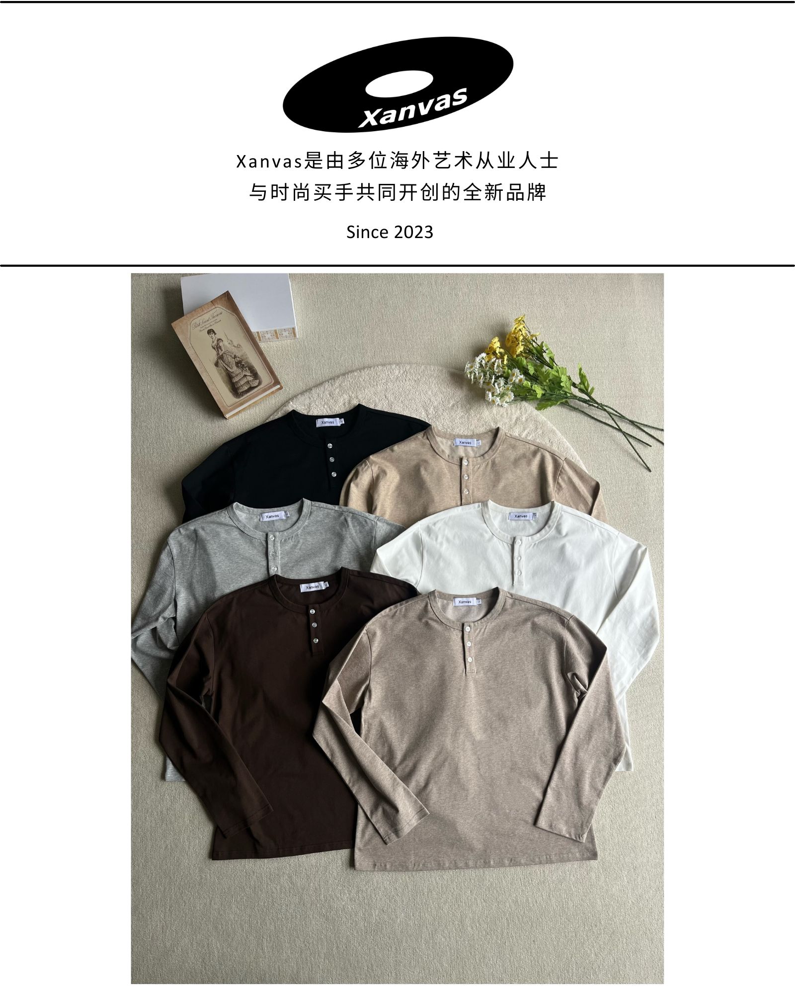 Xanvas Long-Termism Series Autumn/Winter Basic Versatile Henry Collar Long Sleeve Base T-Shirt Old Money Cleanfit