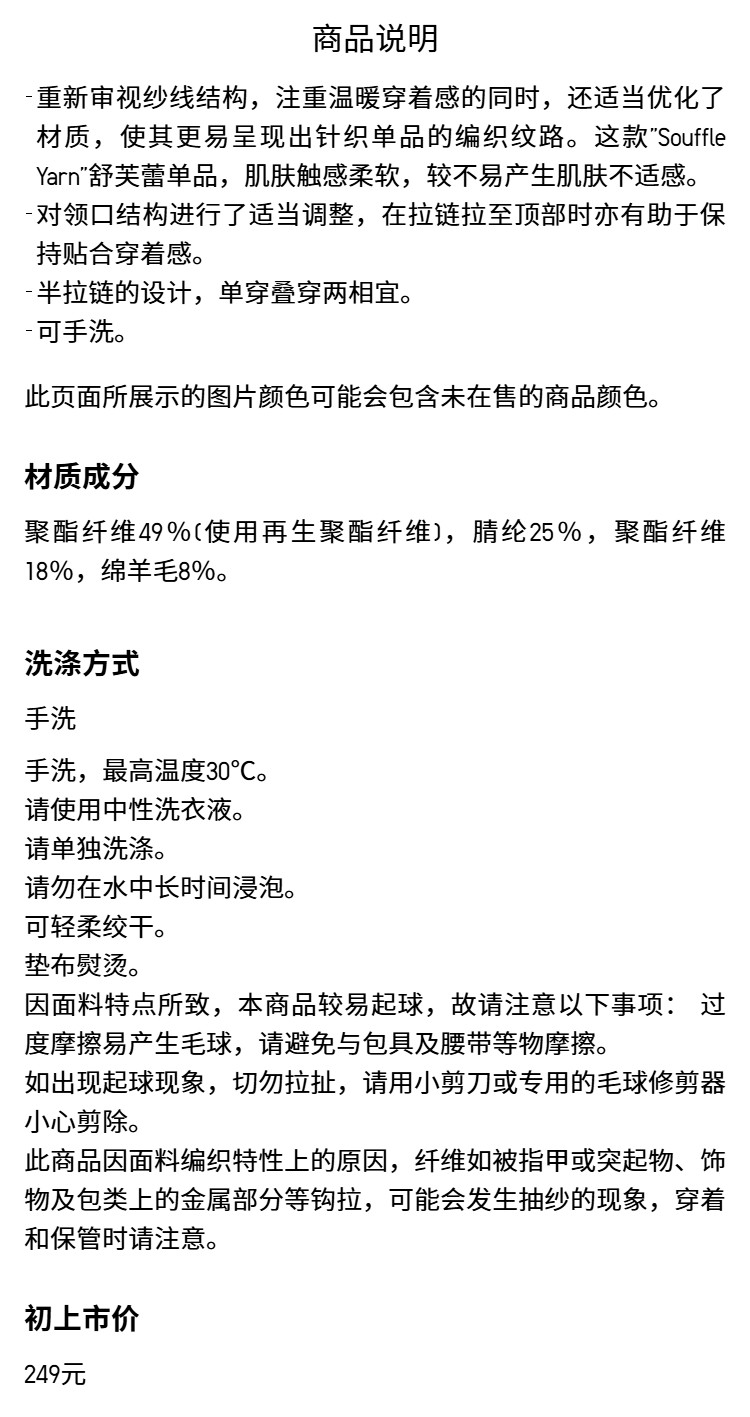 Uniqlo Men's and Women's Souffle Yarn Half-Zip Knit Sweater New Style 478546