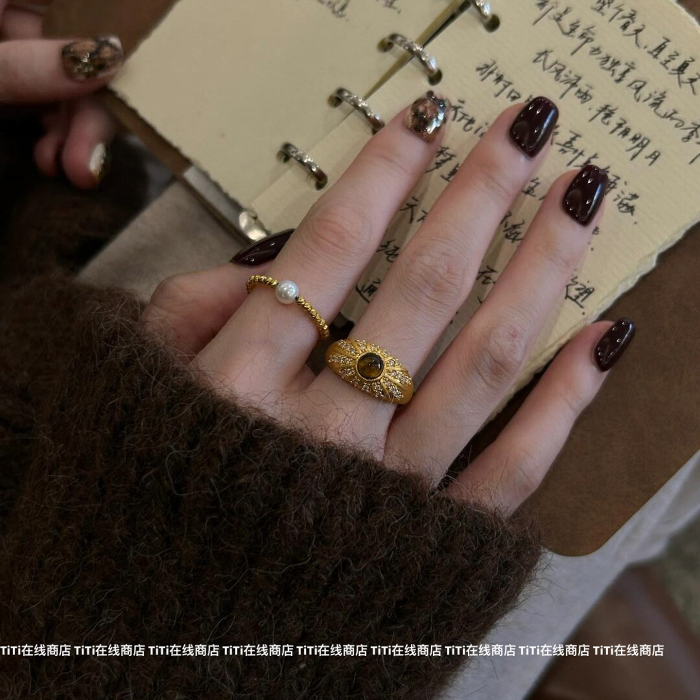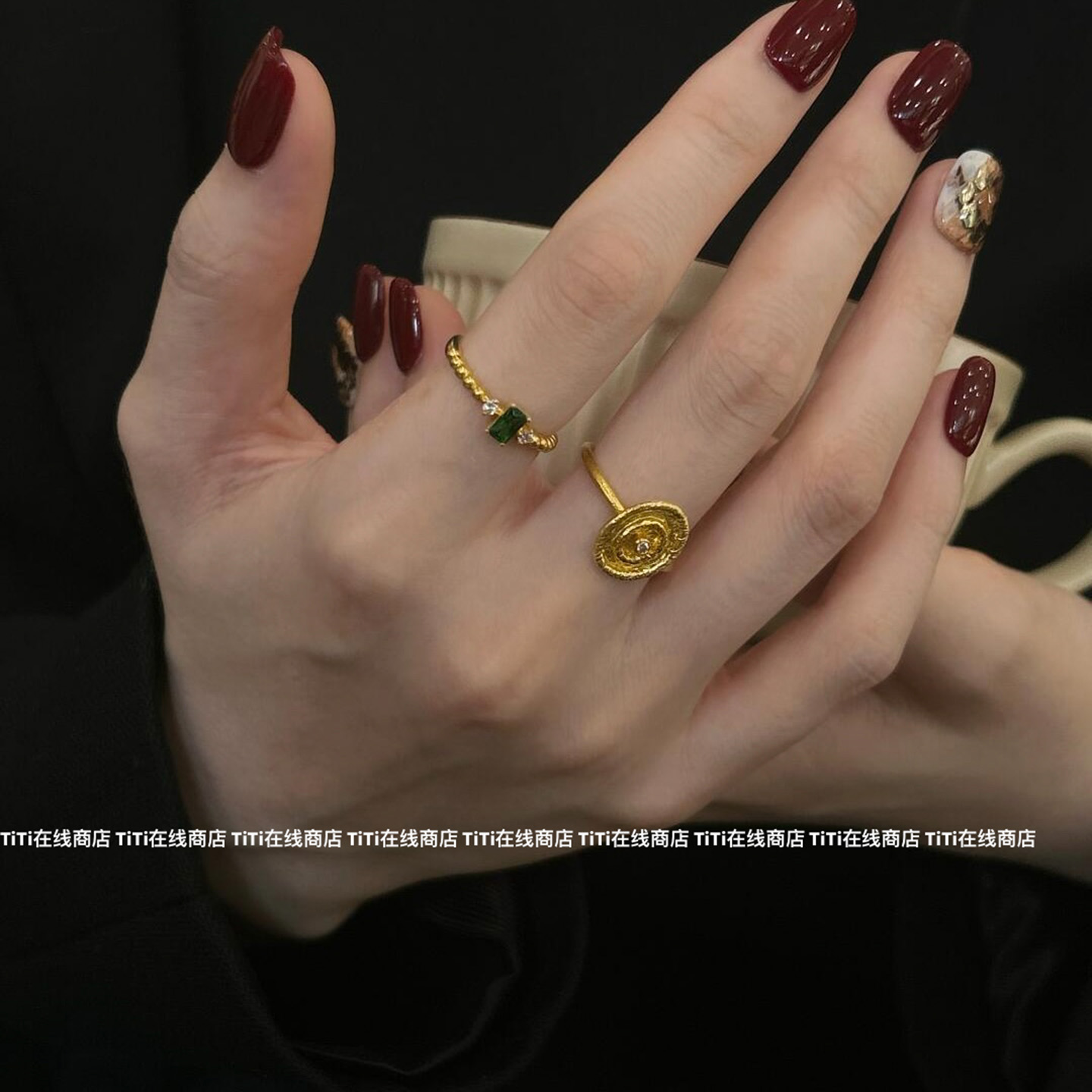 Vintage Gold Hollow Lace Ring for Women, Stackable Plain Open Ring, Index Finger Ring, Palace Style Ring