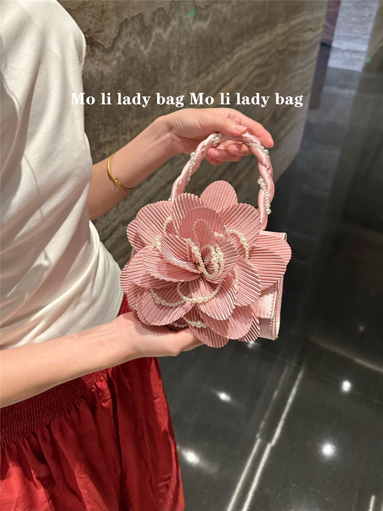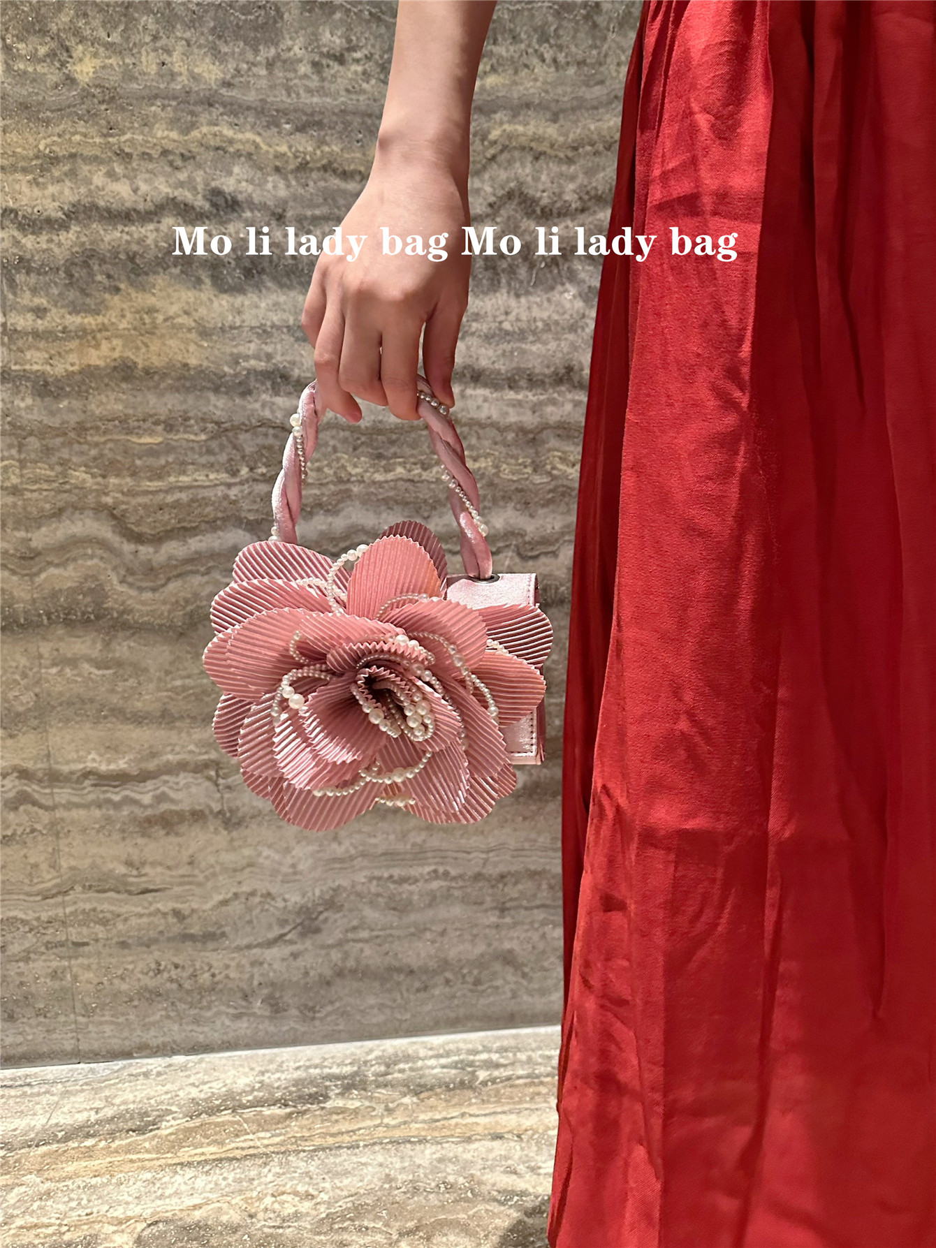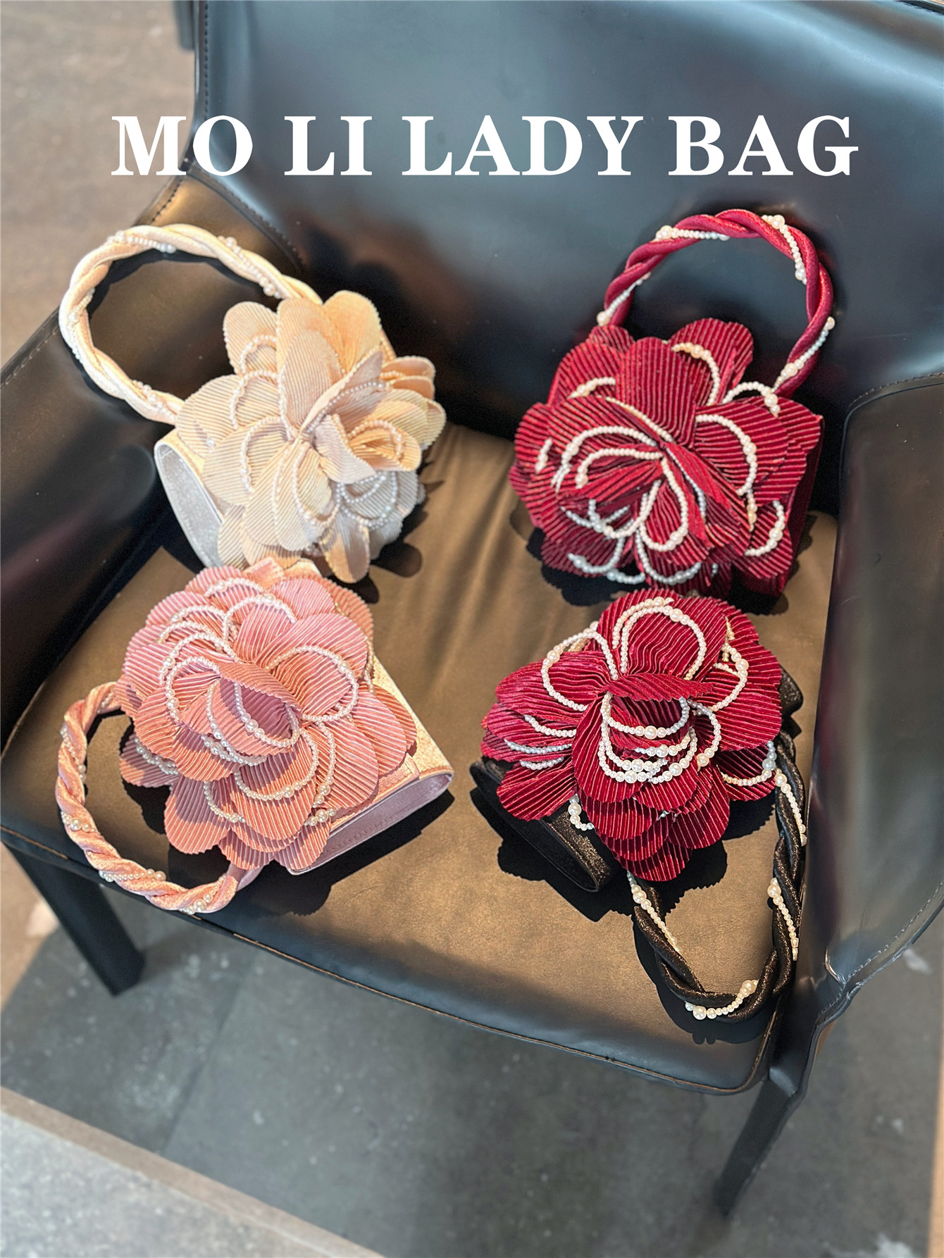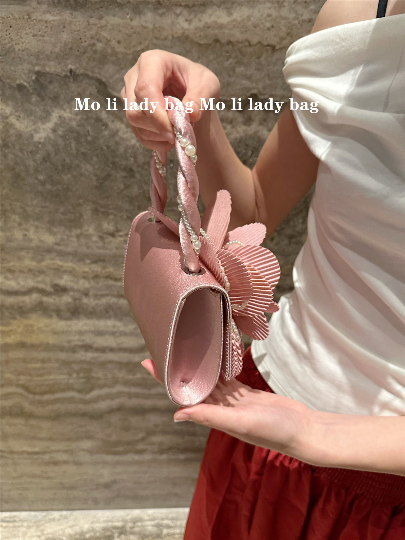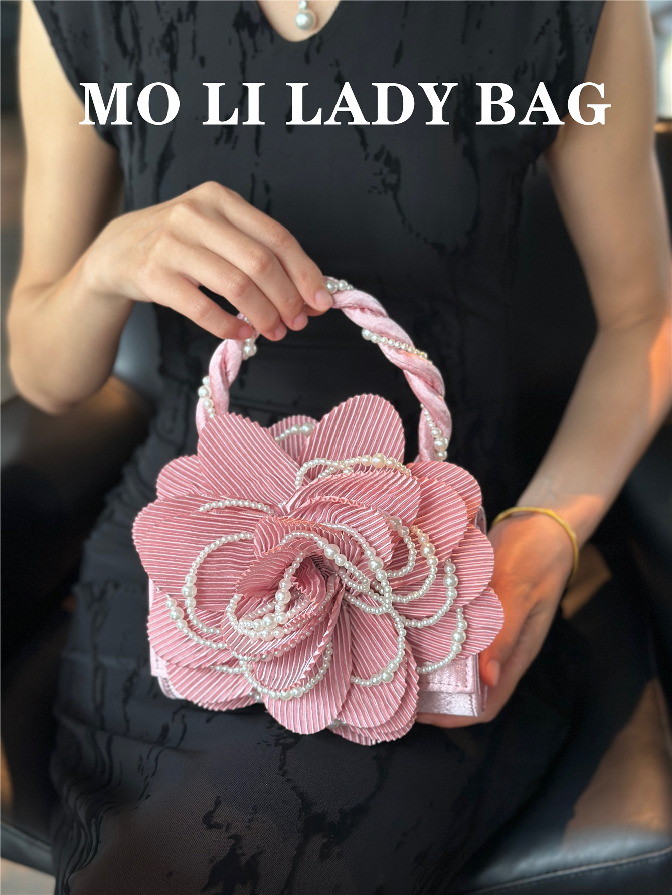 2025 New Chinese-Style Retro Twist Pearl Cheongsam Bag with Rose Three-Dimensional Pink Flower Bag Fairy Bag Crossbody Women's Bag