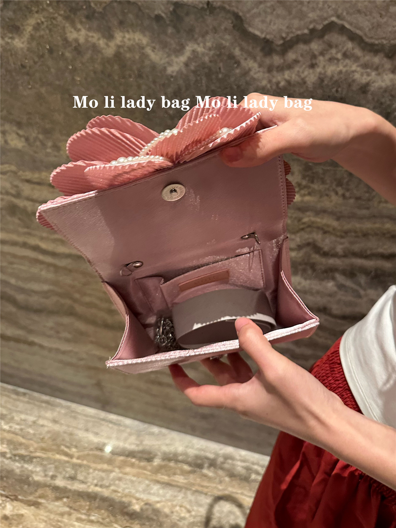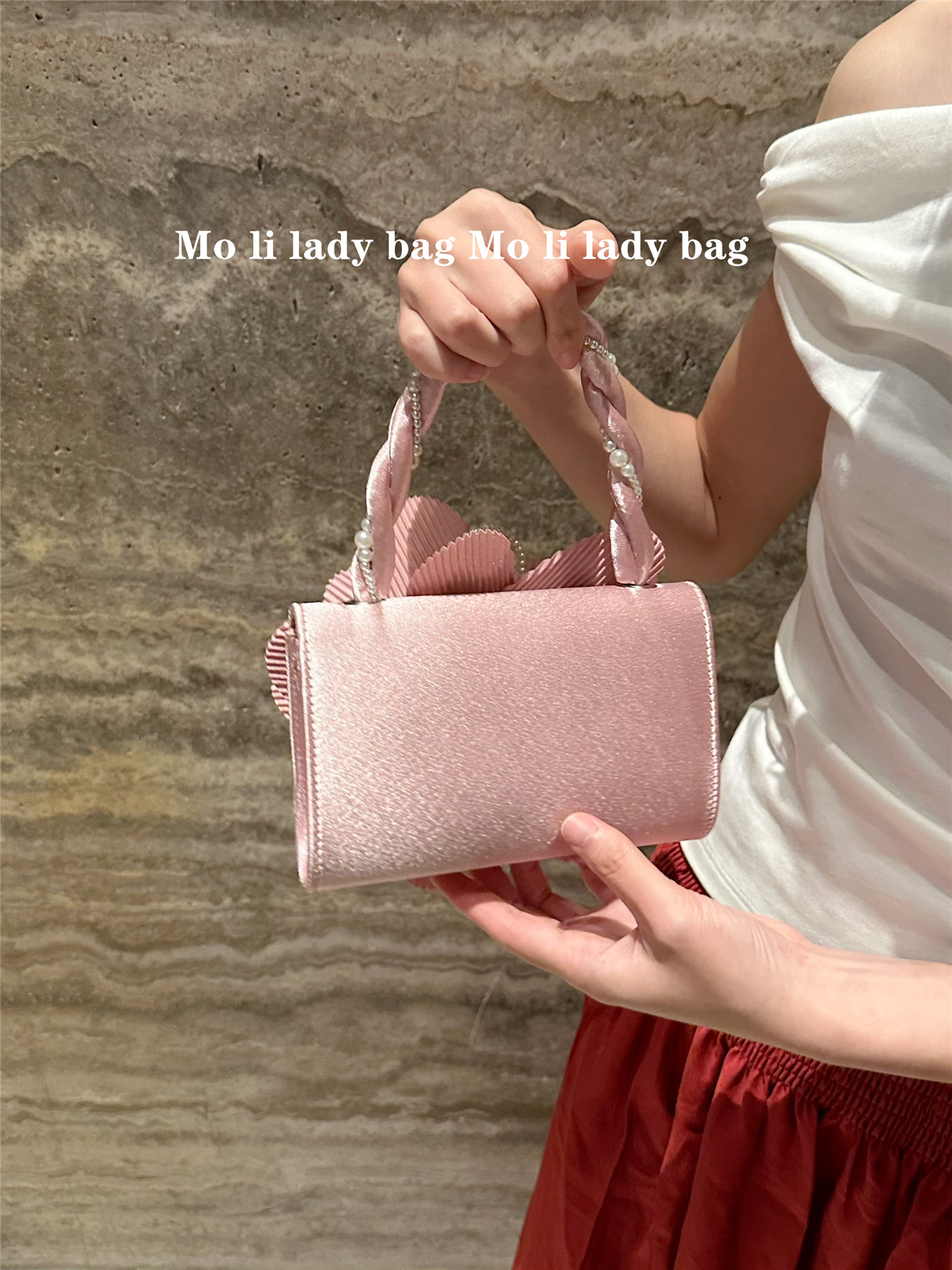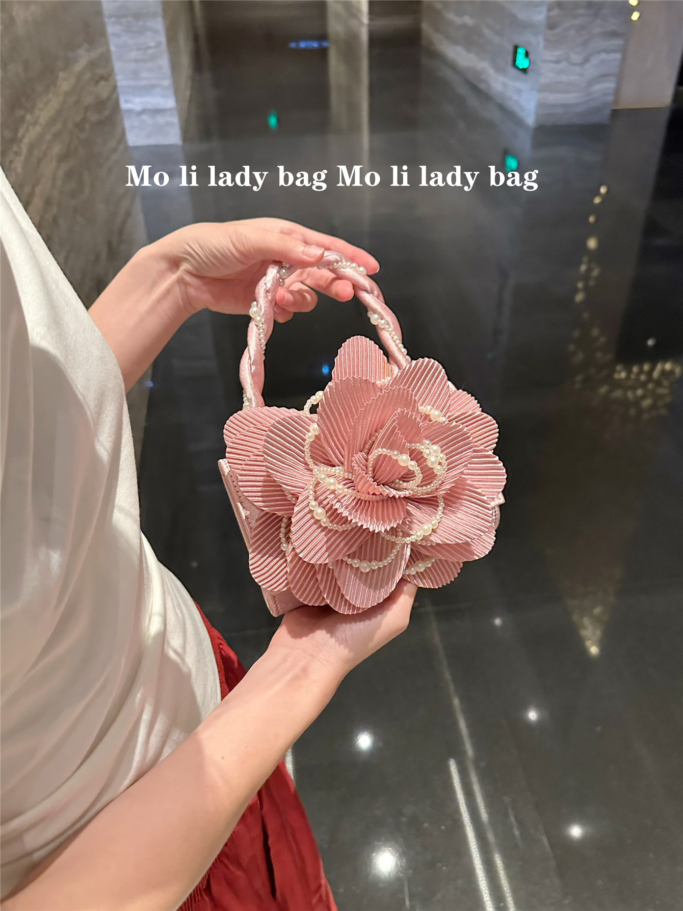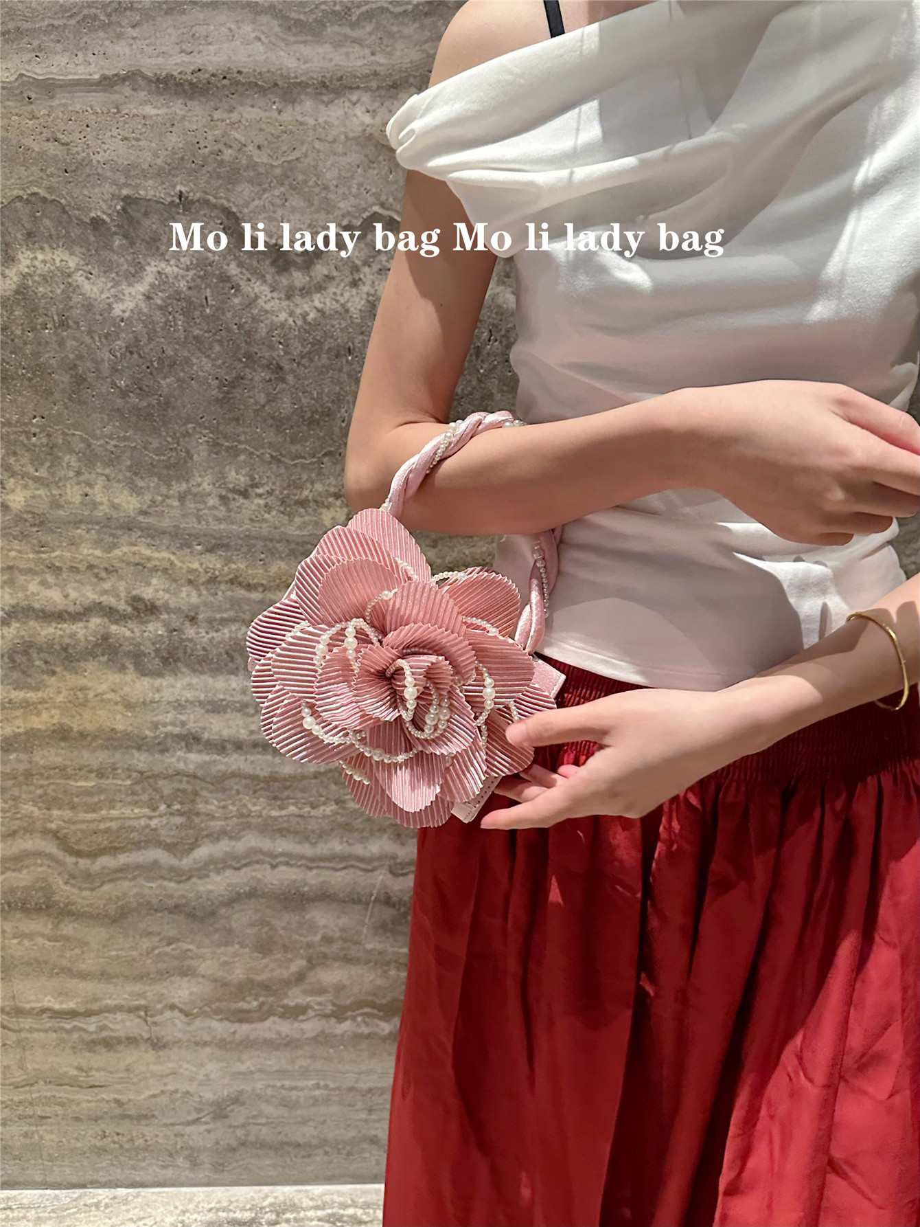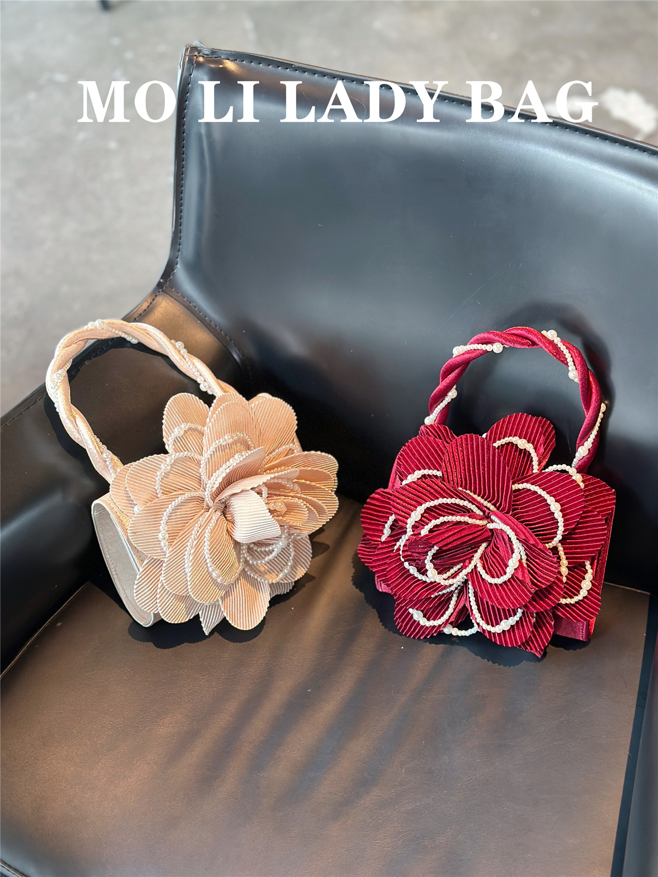 2025 New Chinese-Style Retro Twist Pearl Cheongsam Bag with Rose Three-Dimensional Pink Flower Bag Fairy Bag Crossbody Women's Bag