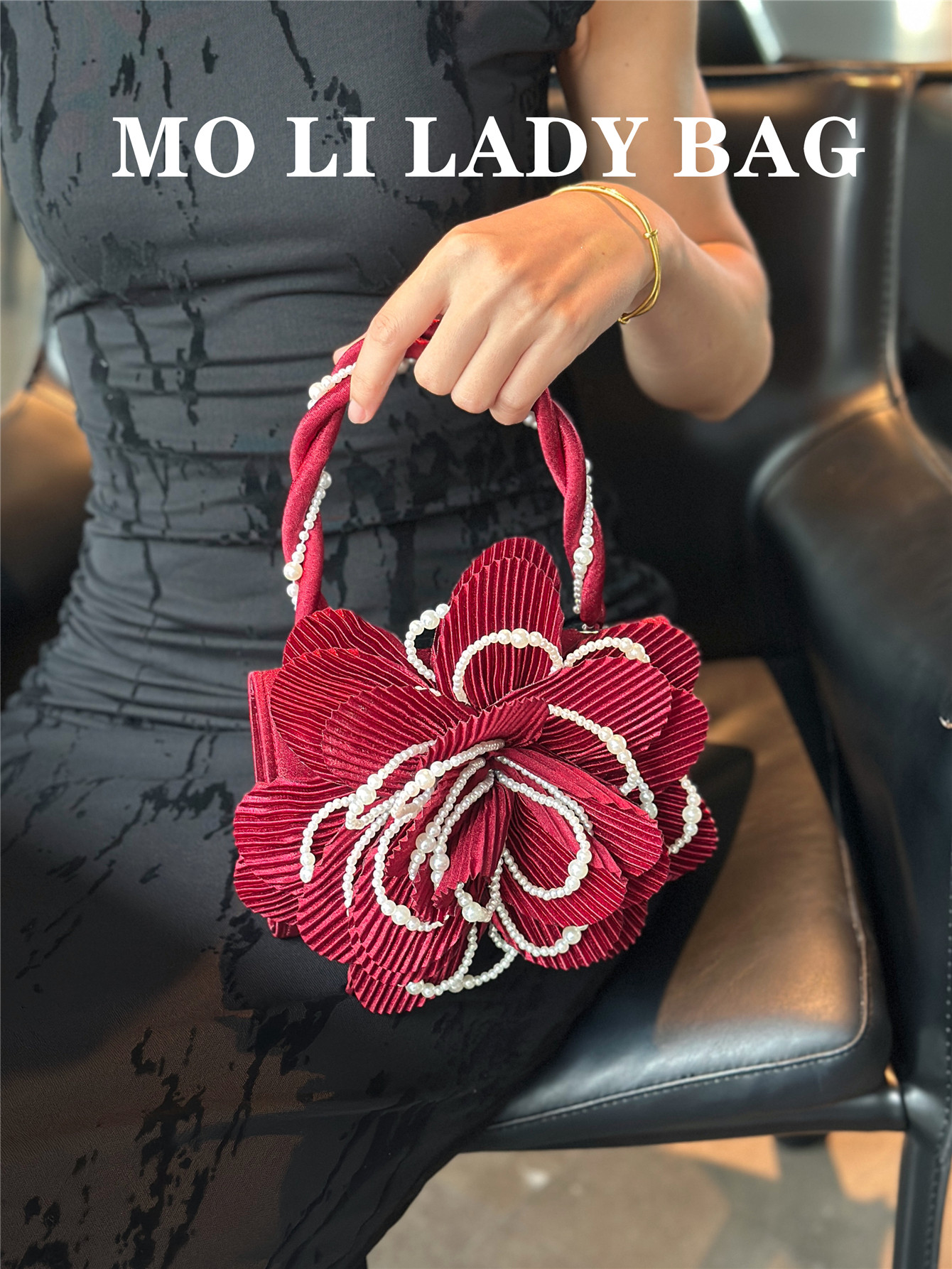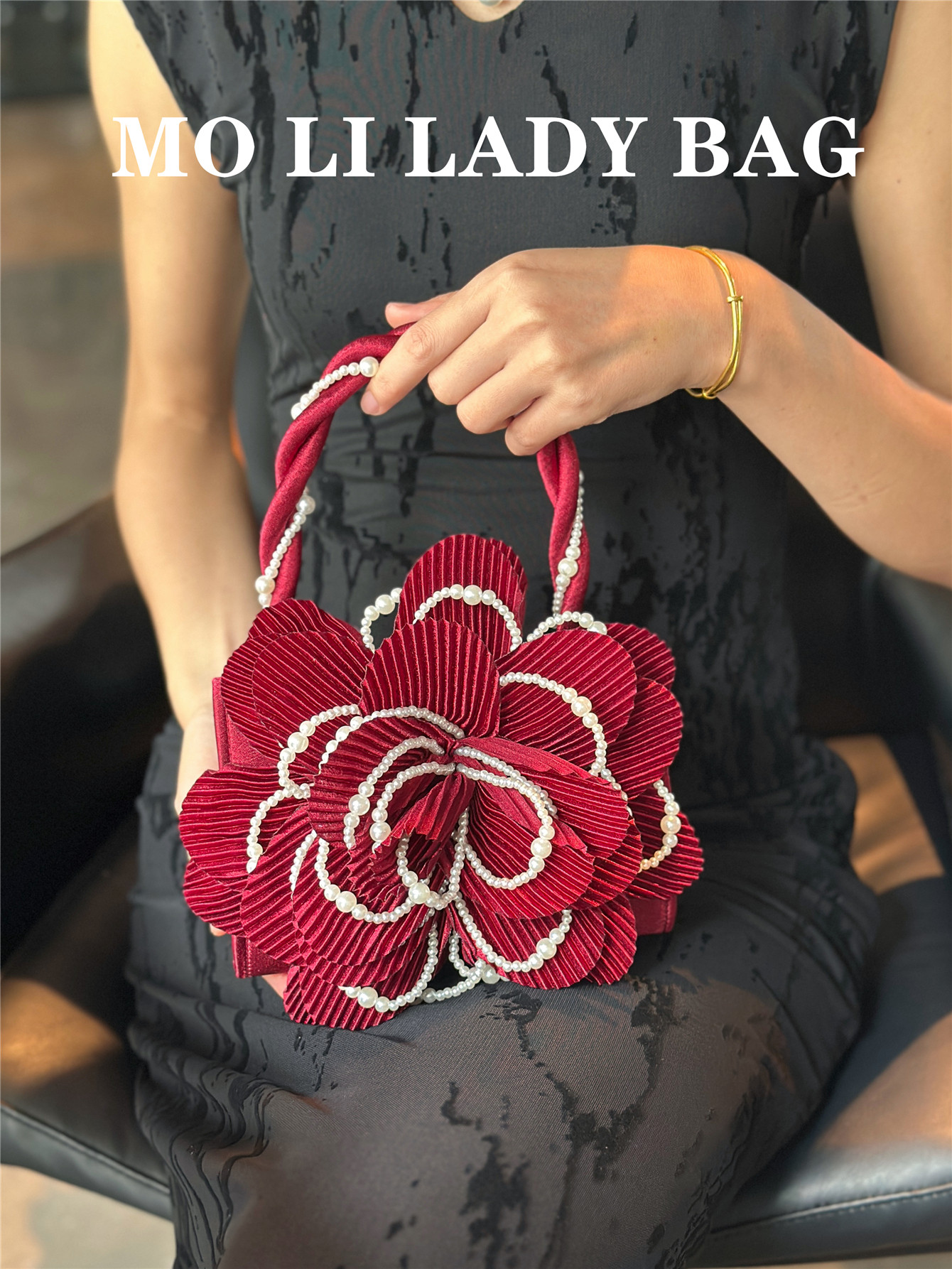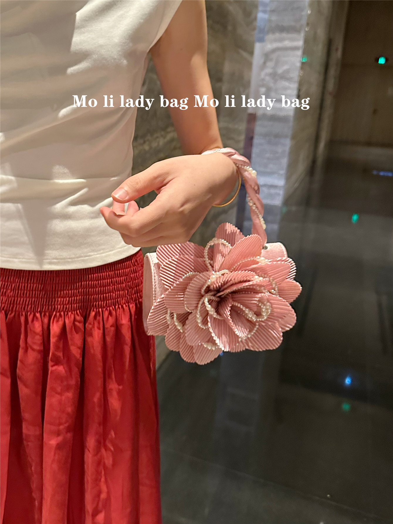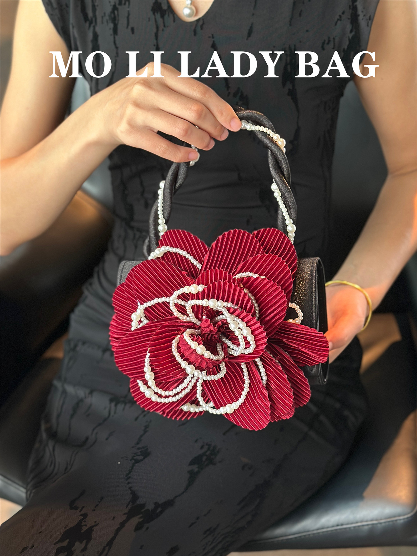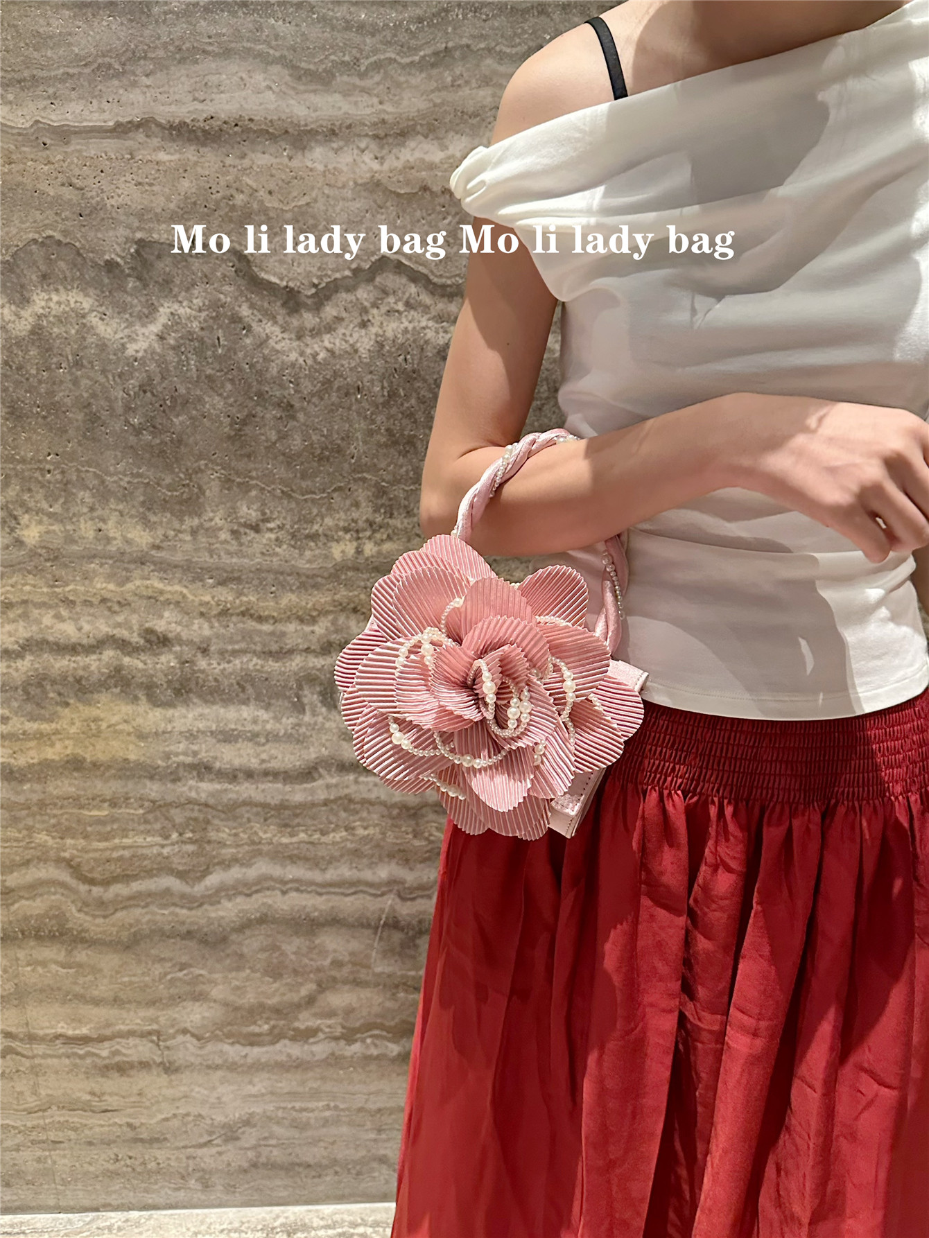 2025 New Chinese-Style Retro Twist Pearl Cheongsam Bag with Rose Three-Dimensional Pink Flower Bag Fairy Bag Crossbody Women's Bag