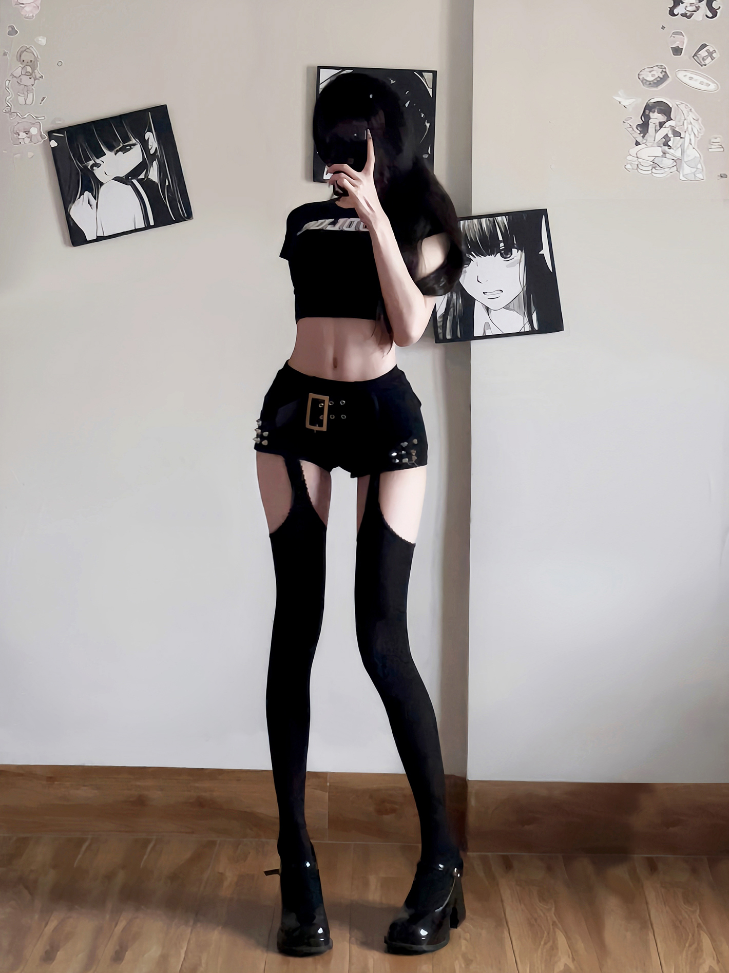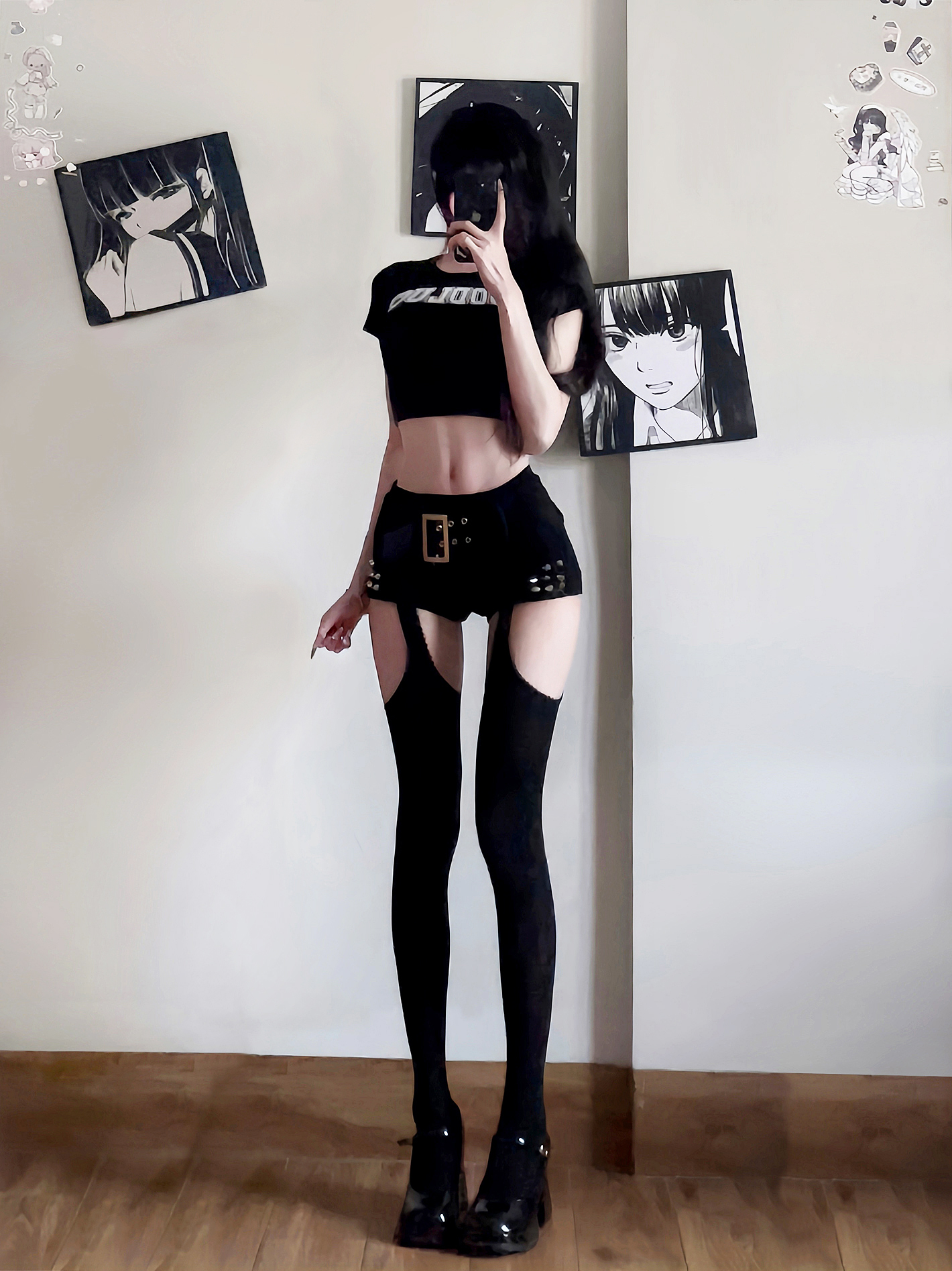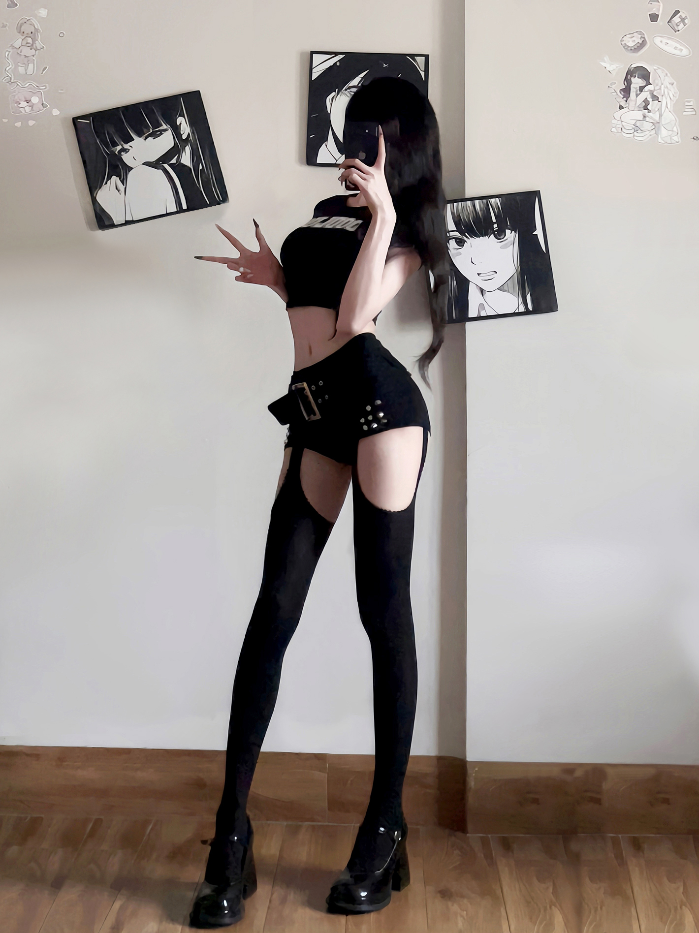 Velvet Two-Way Thigh-High Stockings for Women with Lace, Long and Sexy, Y2K Black Slimming Over-The-Knee Garter Stockings