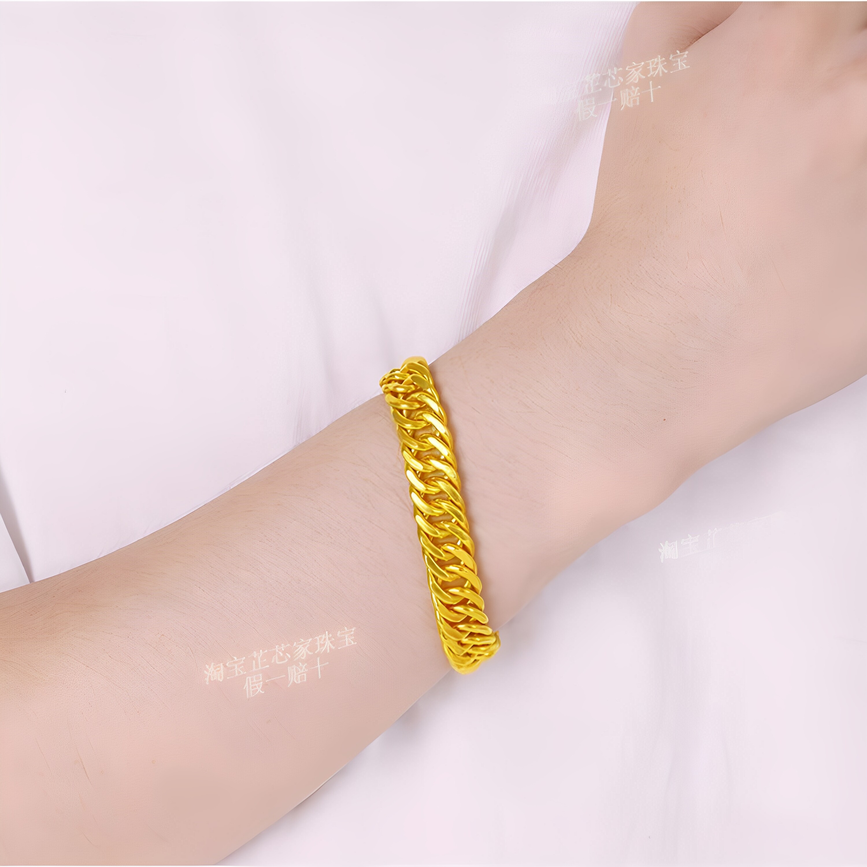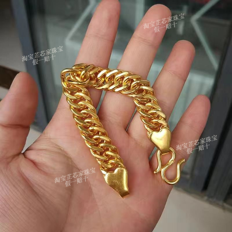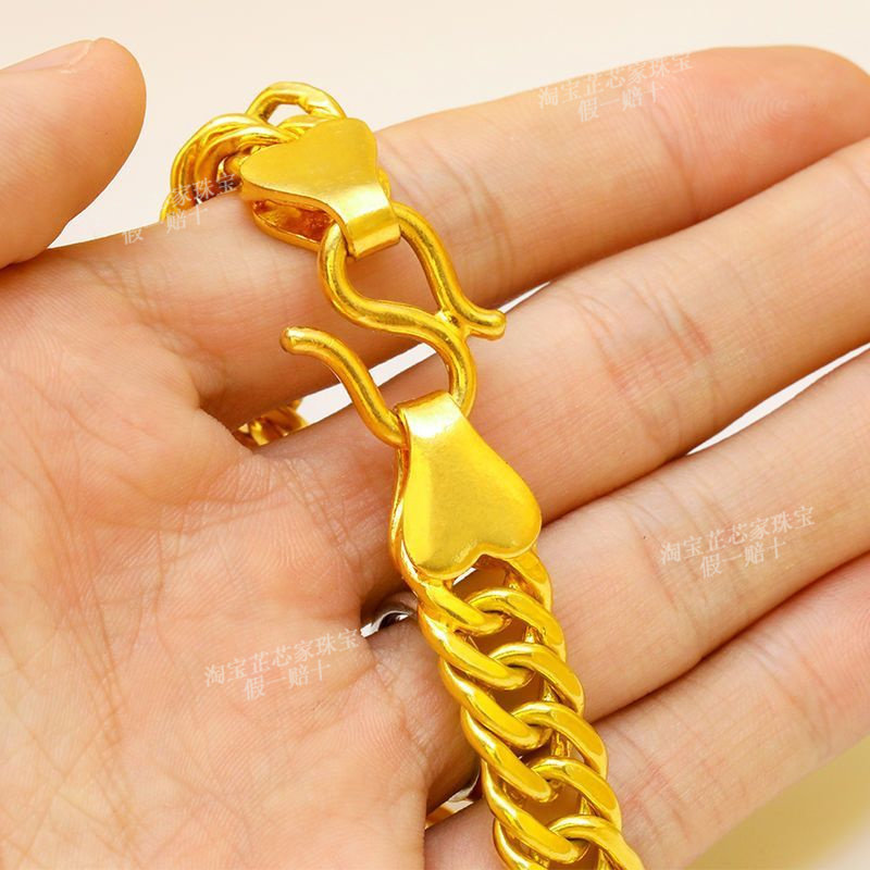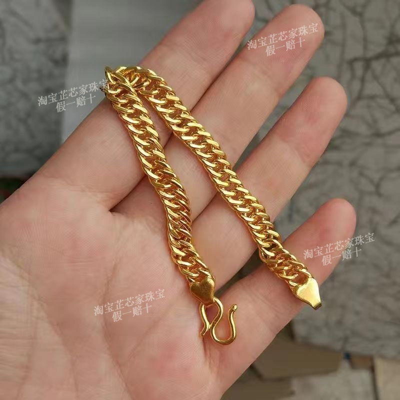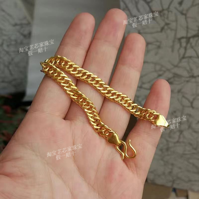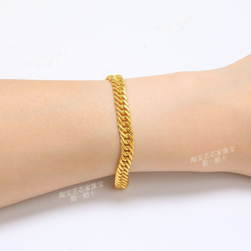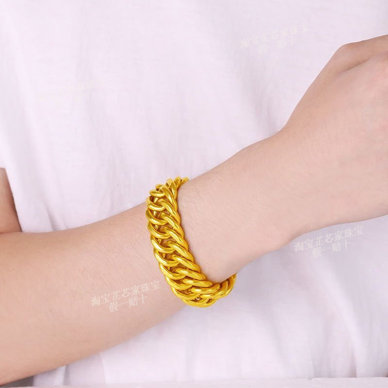 Gold Bracelet for Men, 9999 Pure Silver Horsewhip Bracelet, Non-Fading Gold-Plated Silver Tank Bracelet, Pure Gold Wide-Face Jewelry