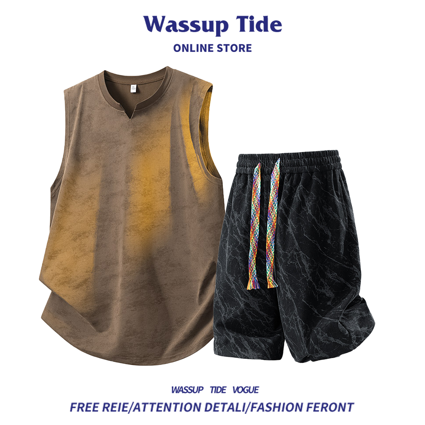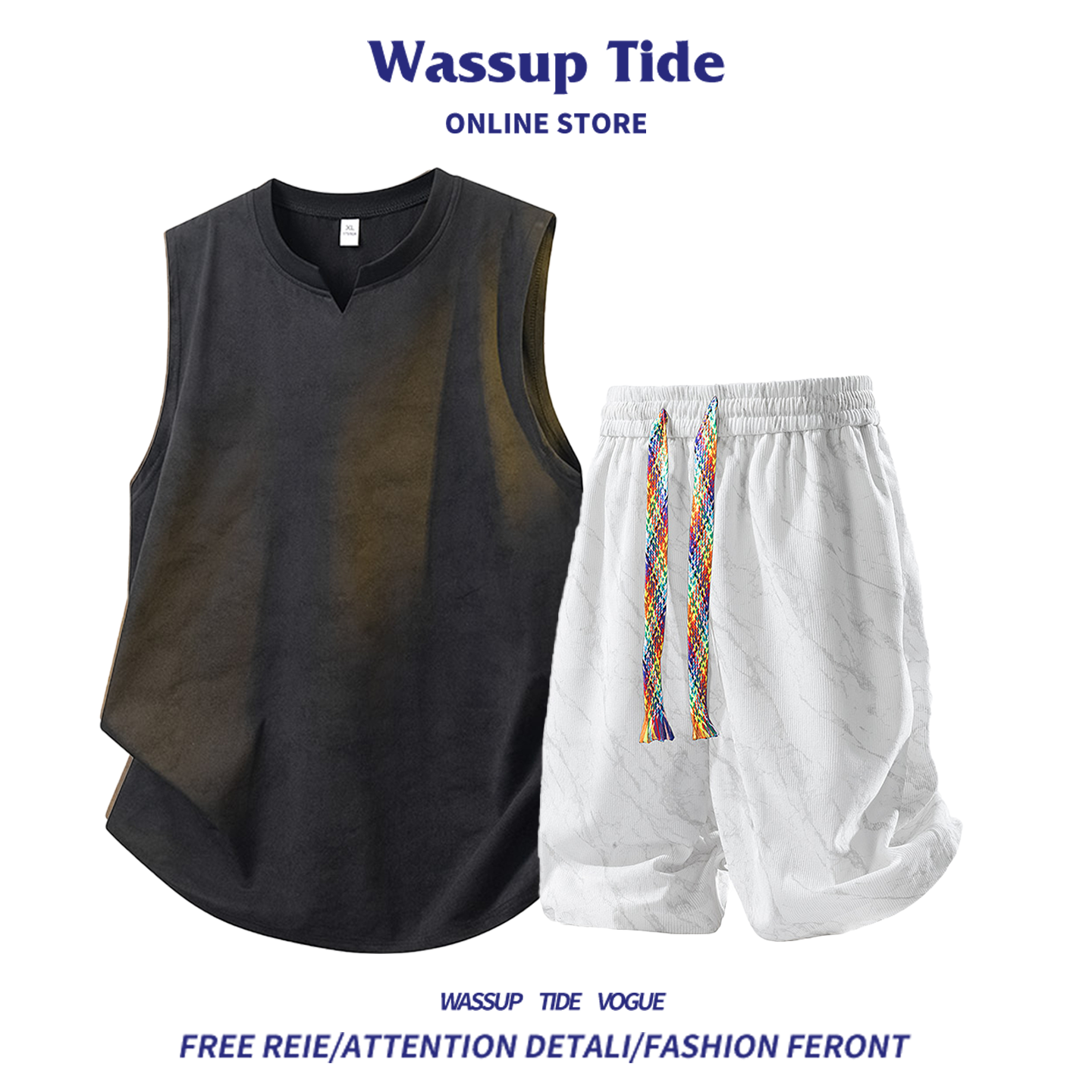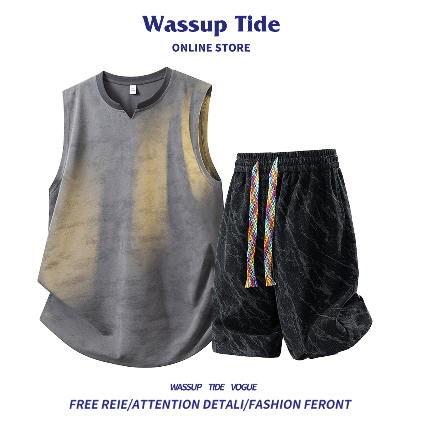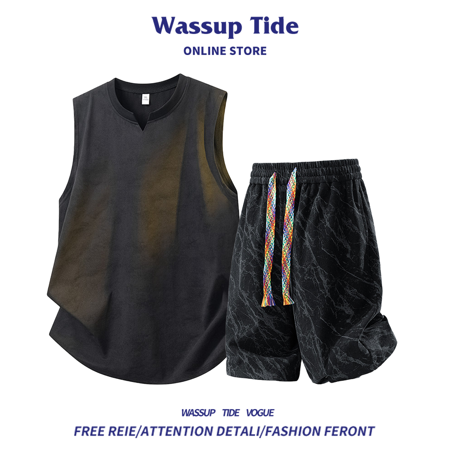 Wassup Tide Sports Suit Men's Summer 2025 New Thin Loose Vest Shorts Two-Piece Set