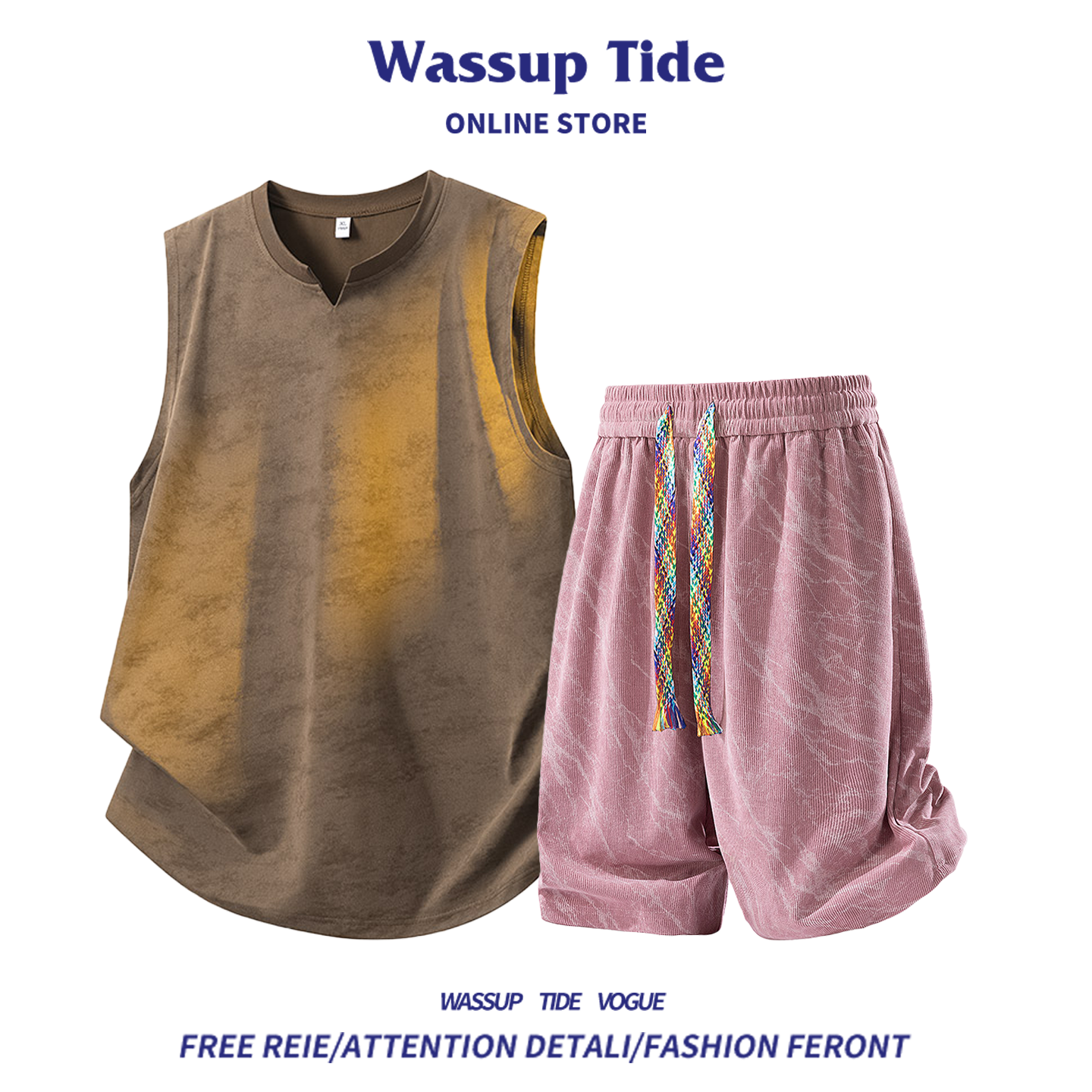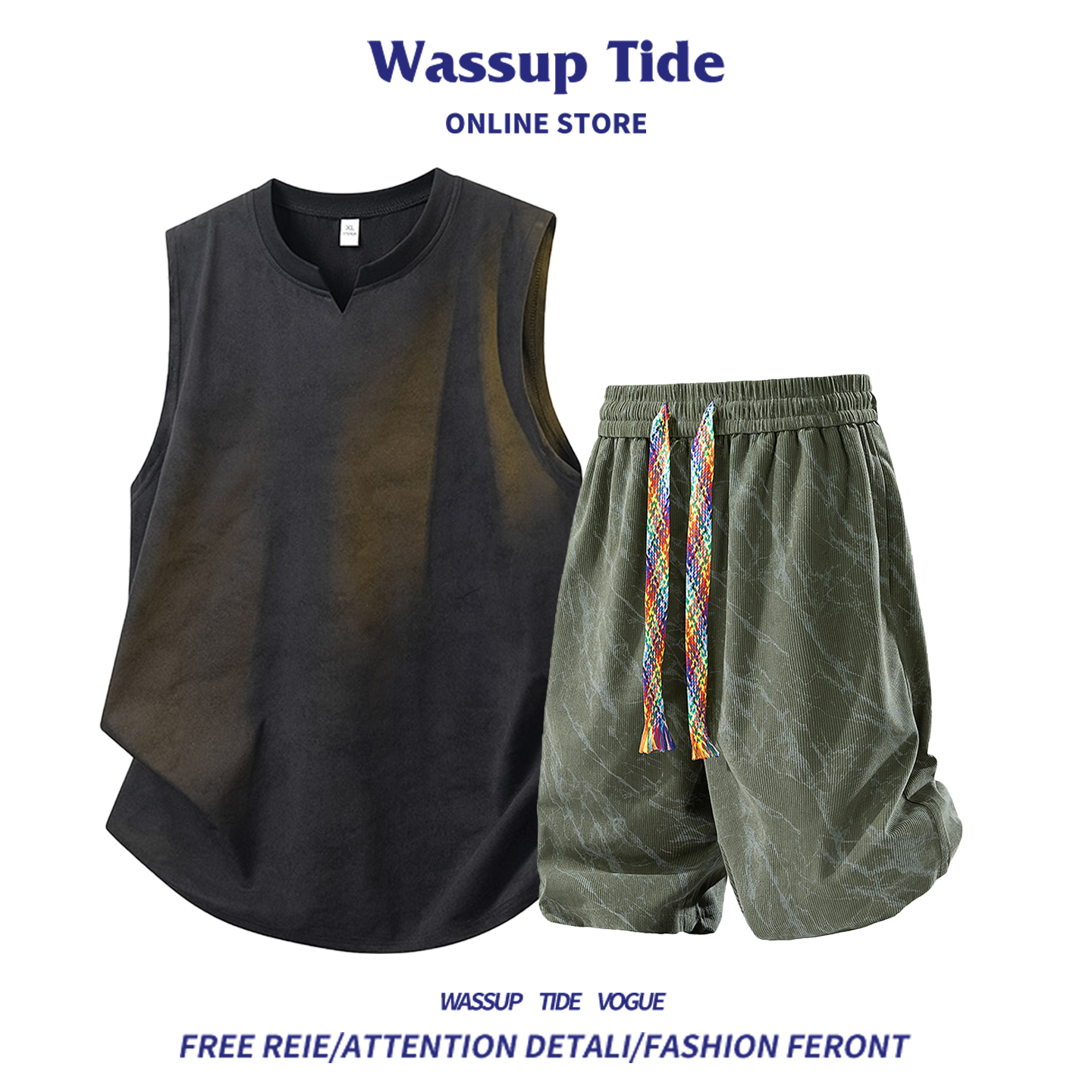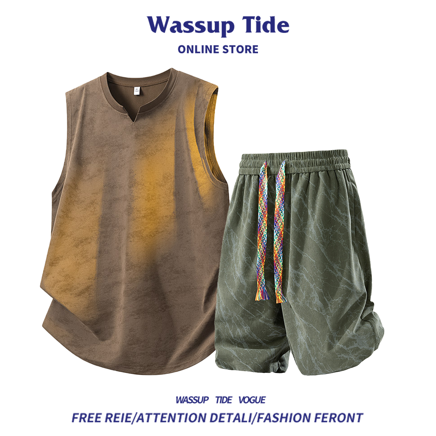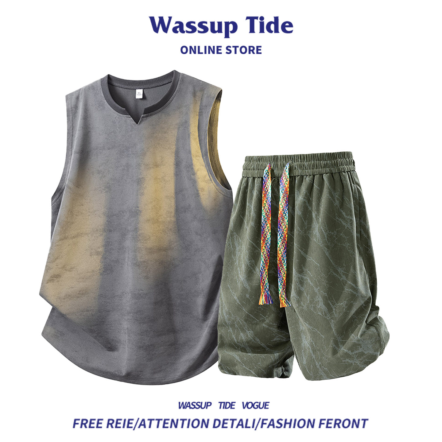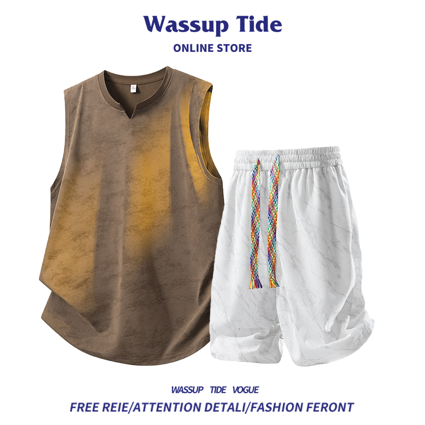 Wassup Tide Sports Suit Men's Summer 2025 New Thin Loose Vest Shorts Two-Piece Set