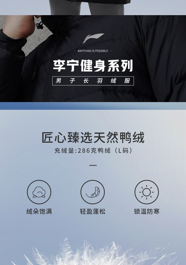 Li-Ning Hot Pot down Jacket | Men's Winter 2025 New Long Thickened Top, Cold-Proof and Warm Sports Coat