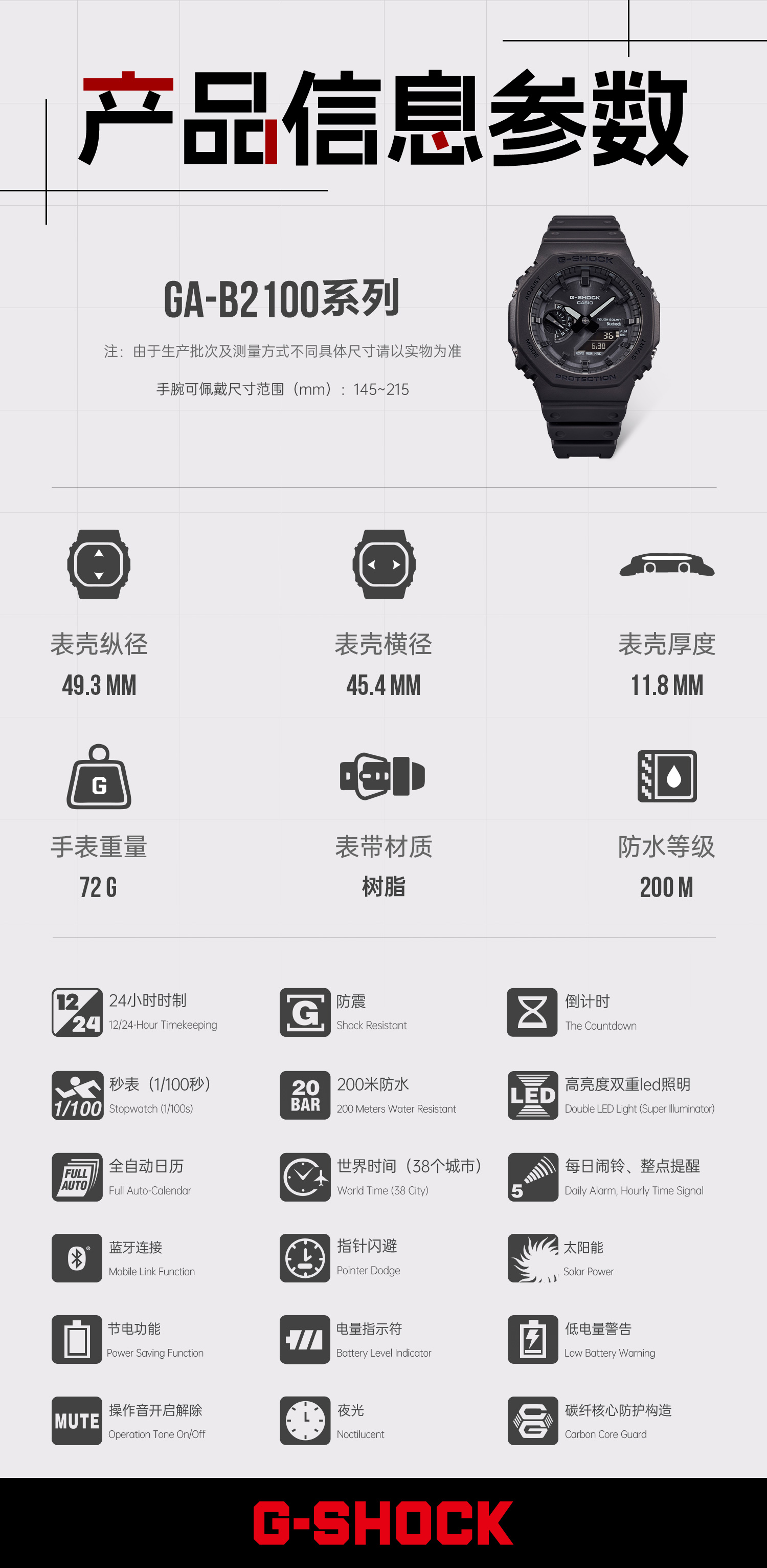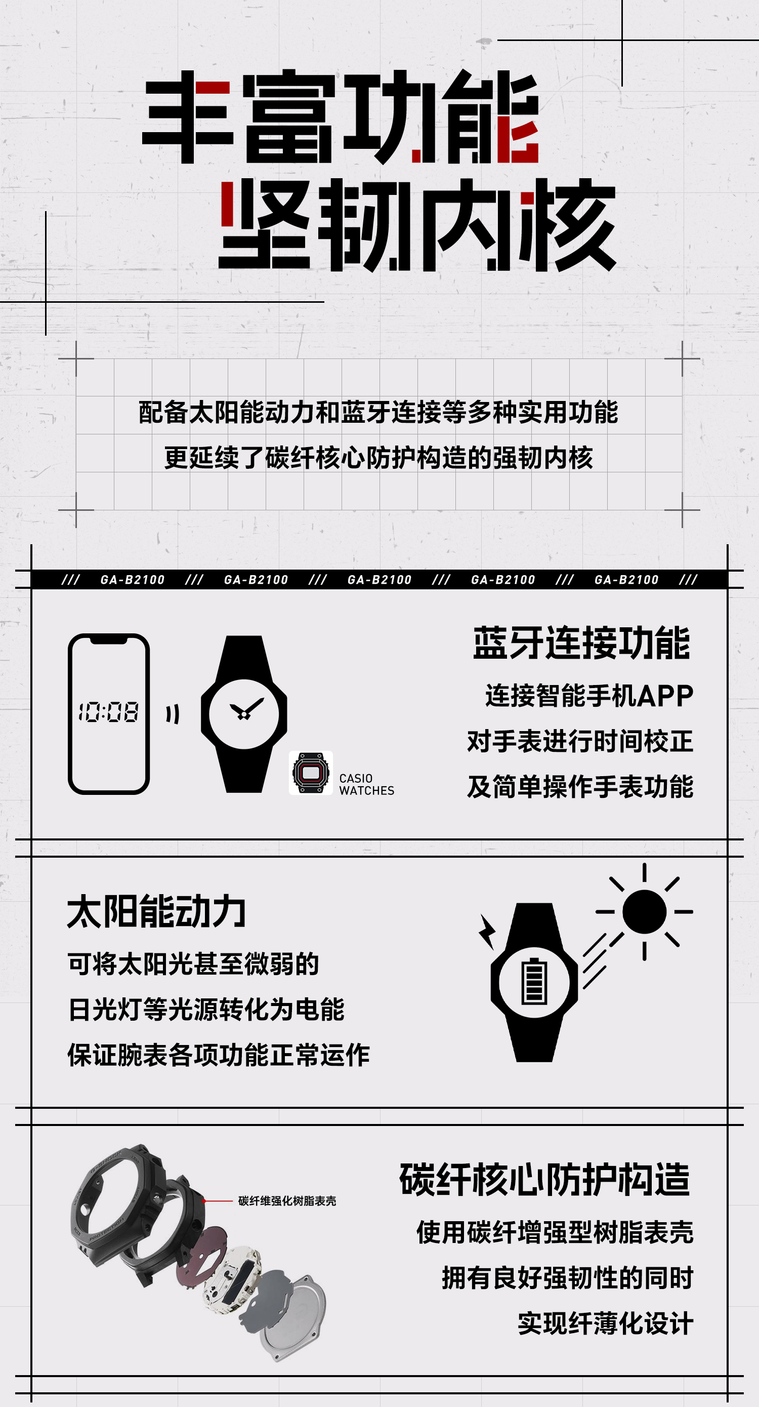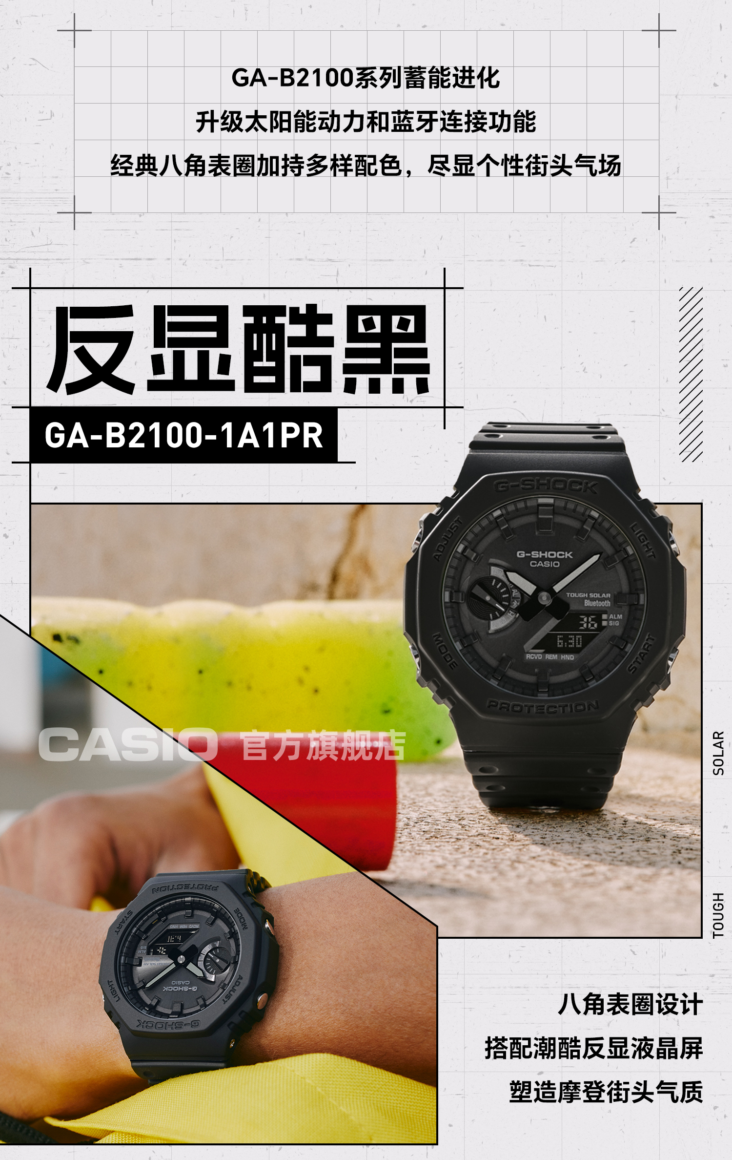 Casio Official Flagship Store Ga-B2100 Solar Octagonal Bubble Wrap Sports Watch for Men and Women G-Shock