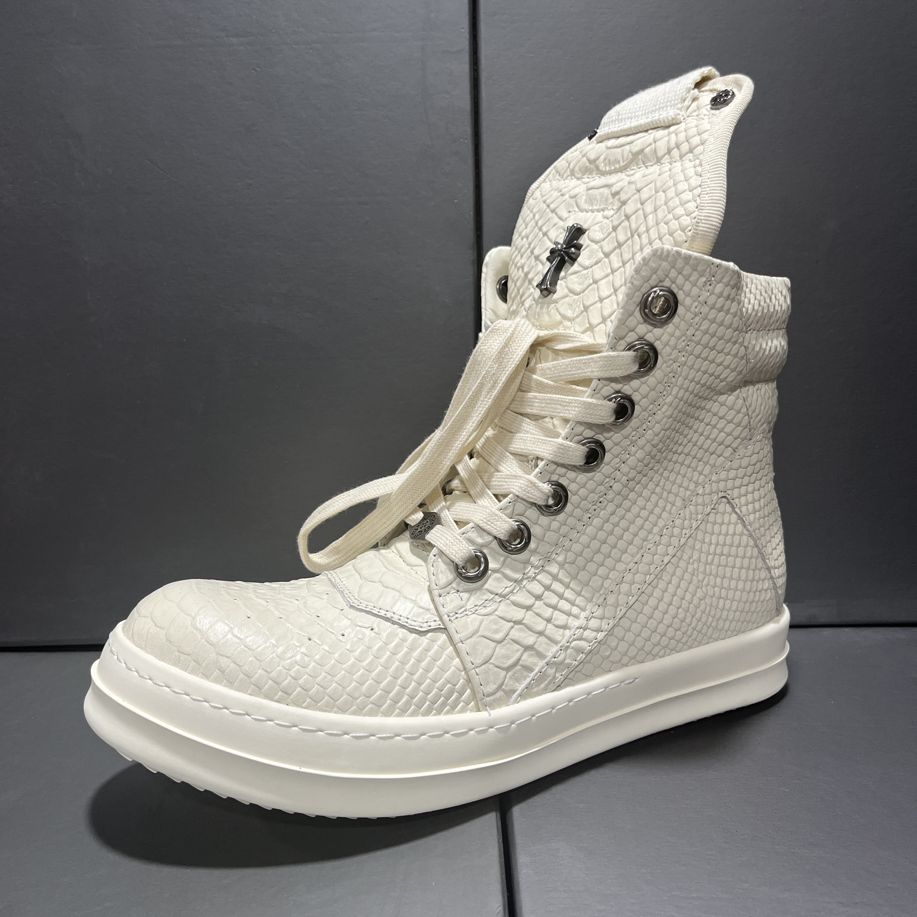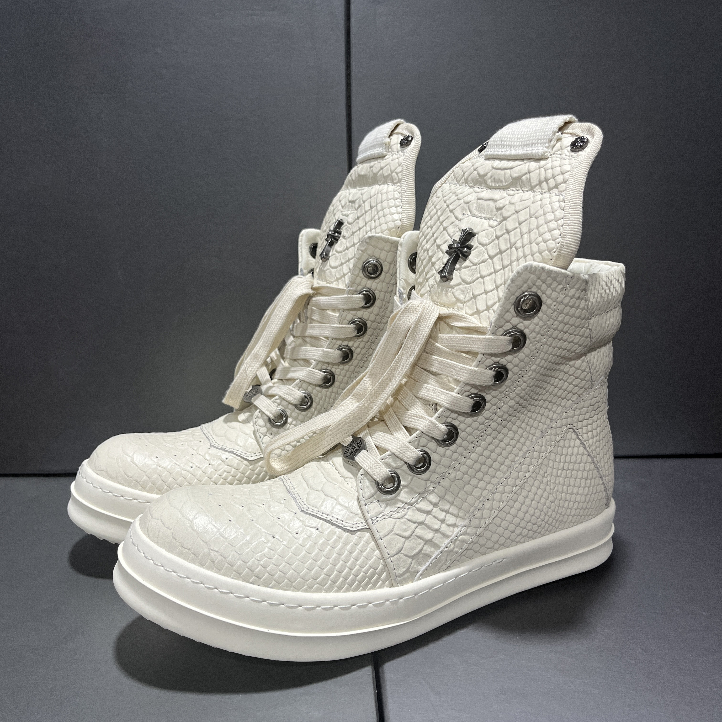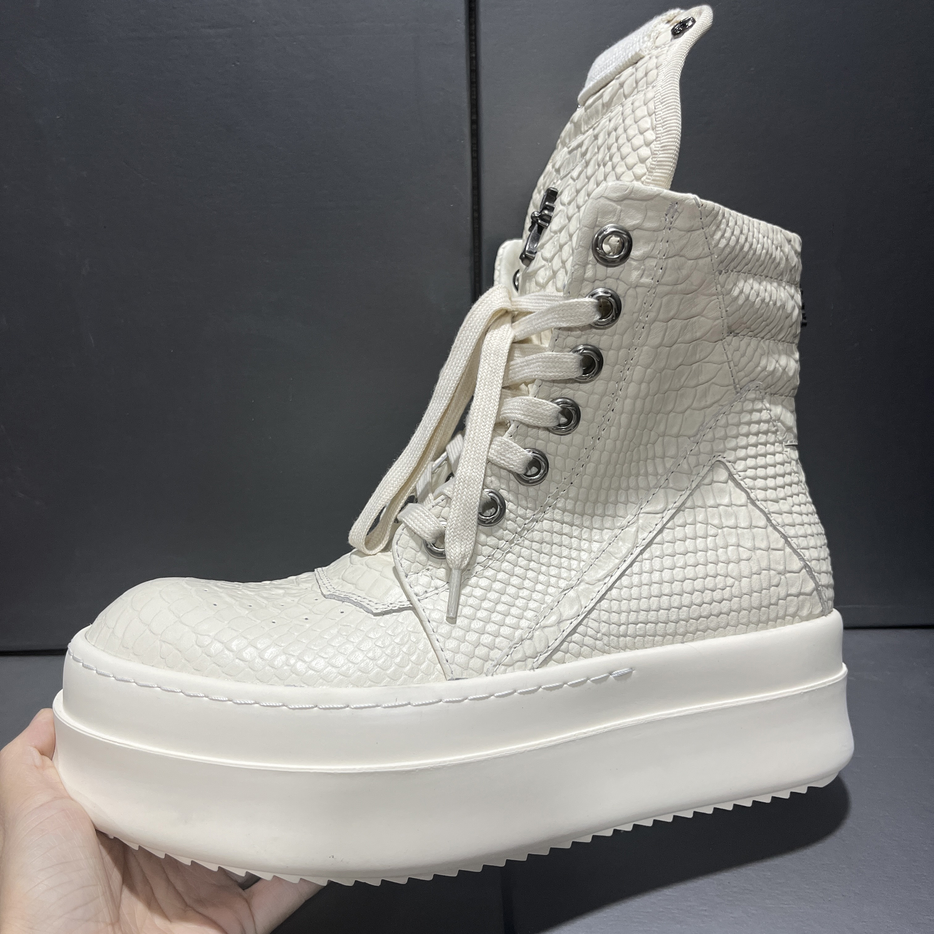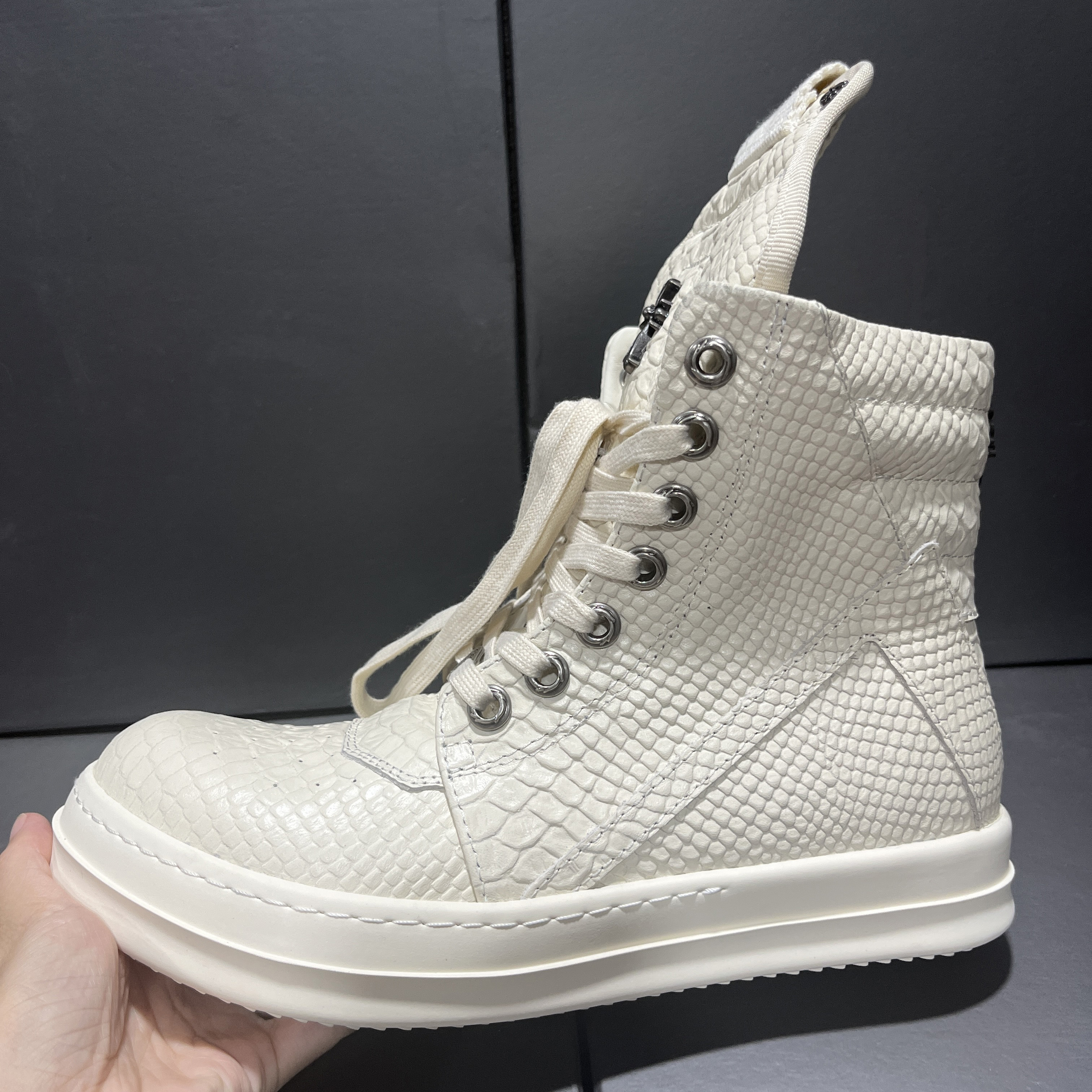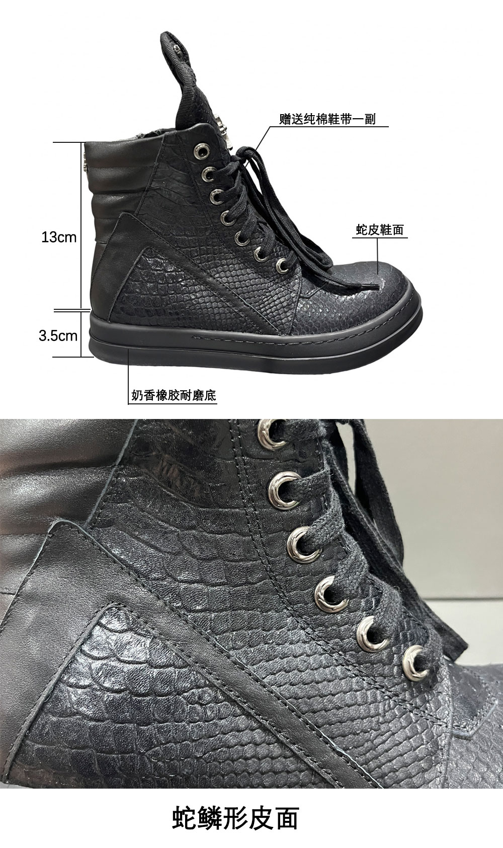 2025 New Ro Shoes High-Top Black and White Snake Pattern Inverted Triangle Genuine Leather Sneakers Men's Thick-Soled Casual Trendy Men's Short Boots