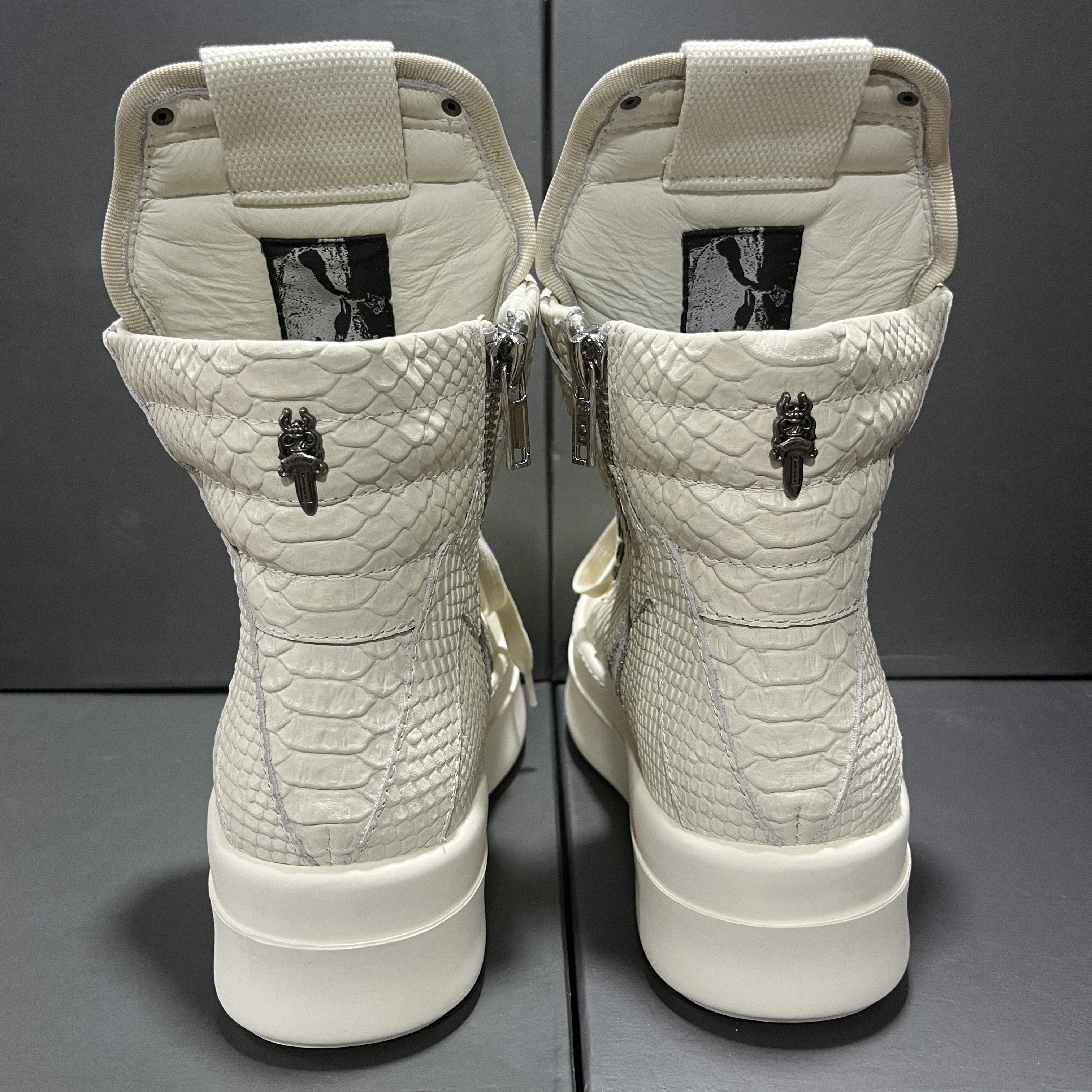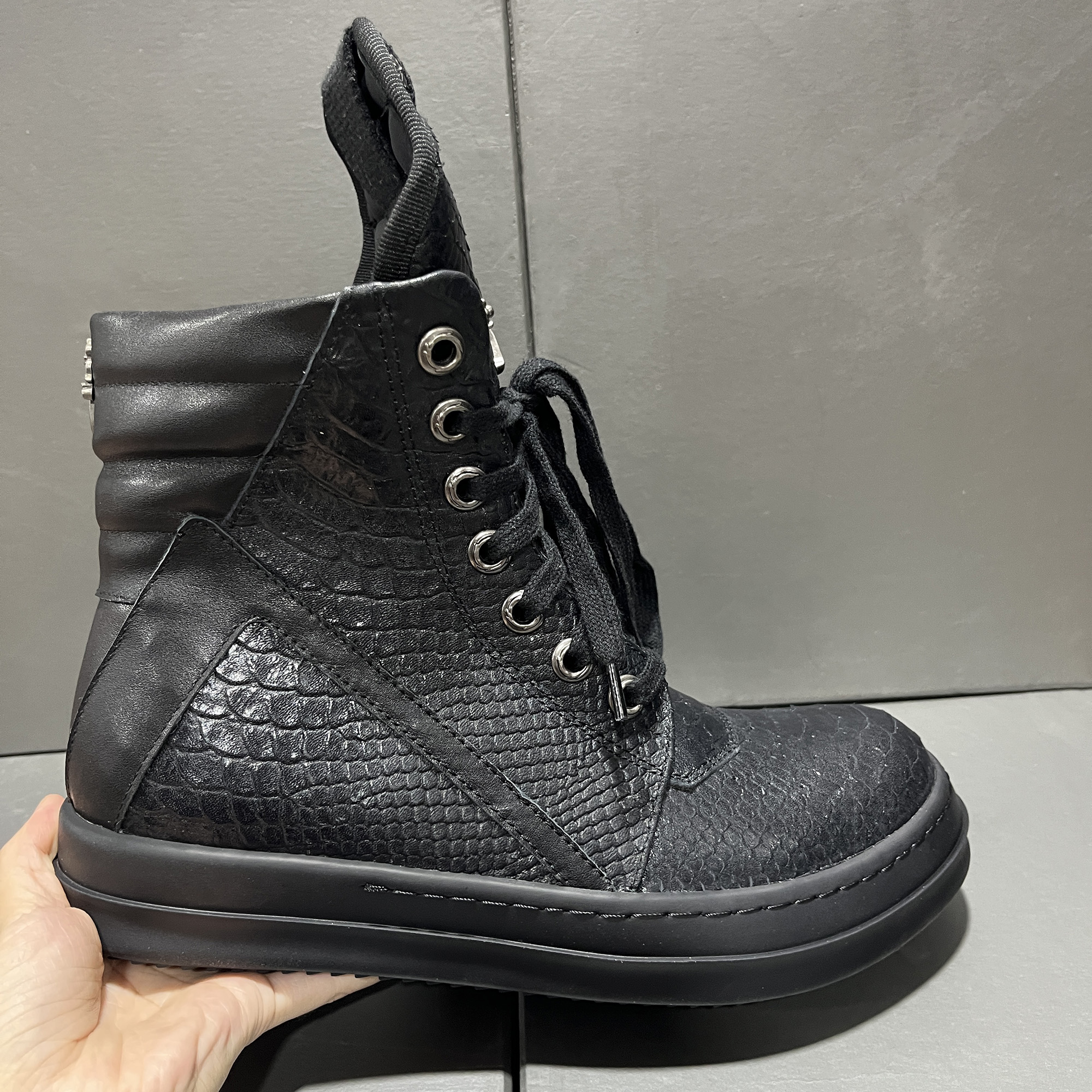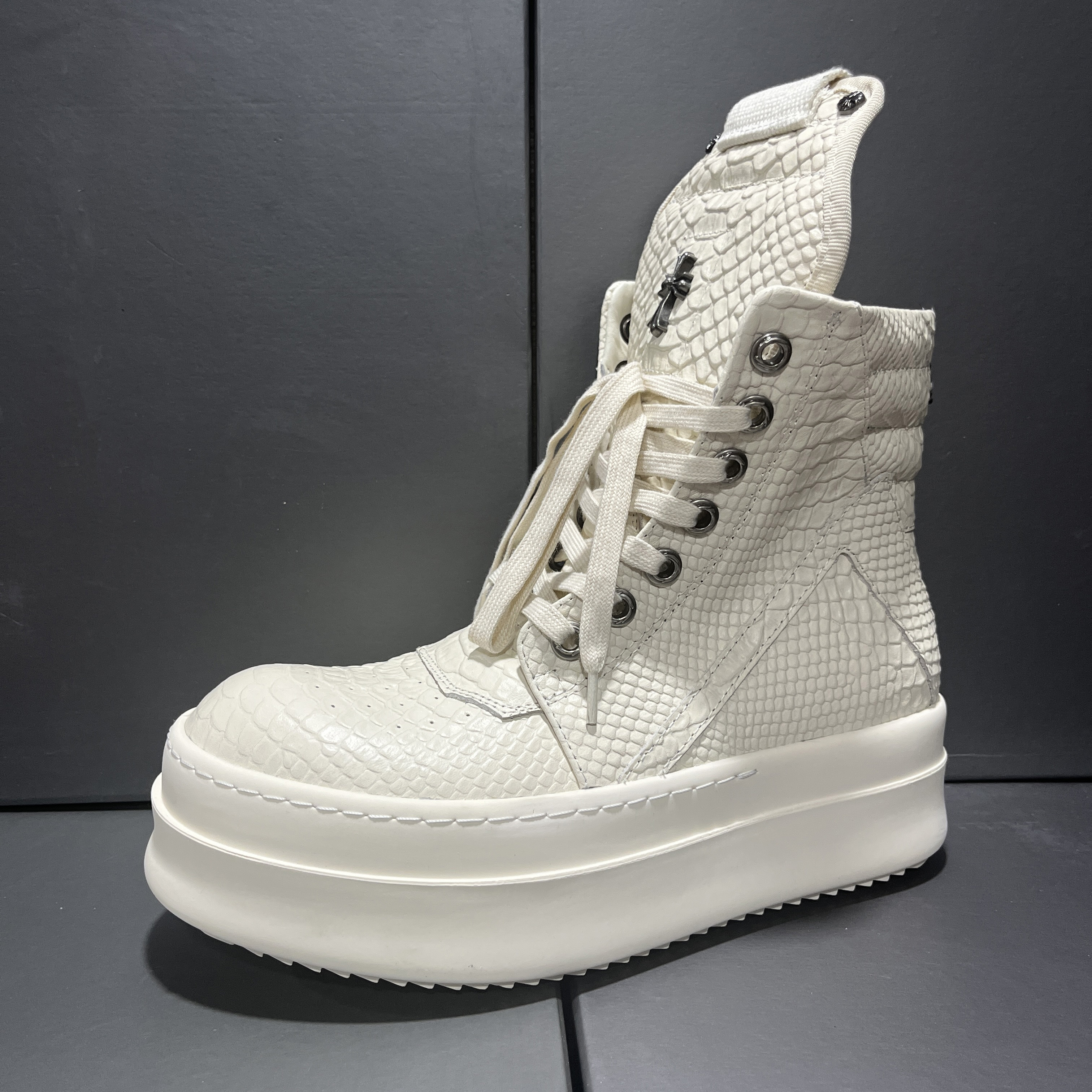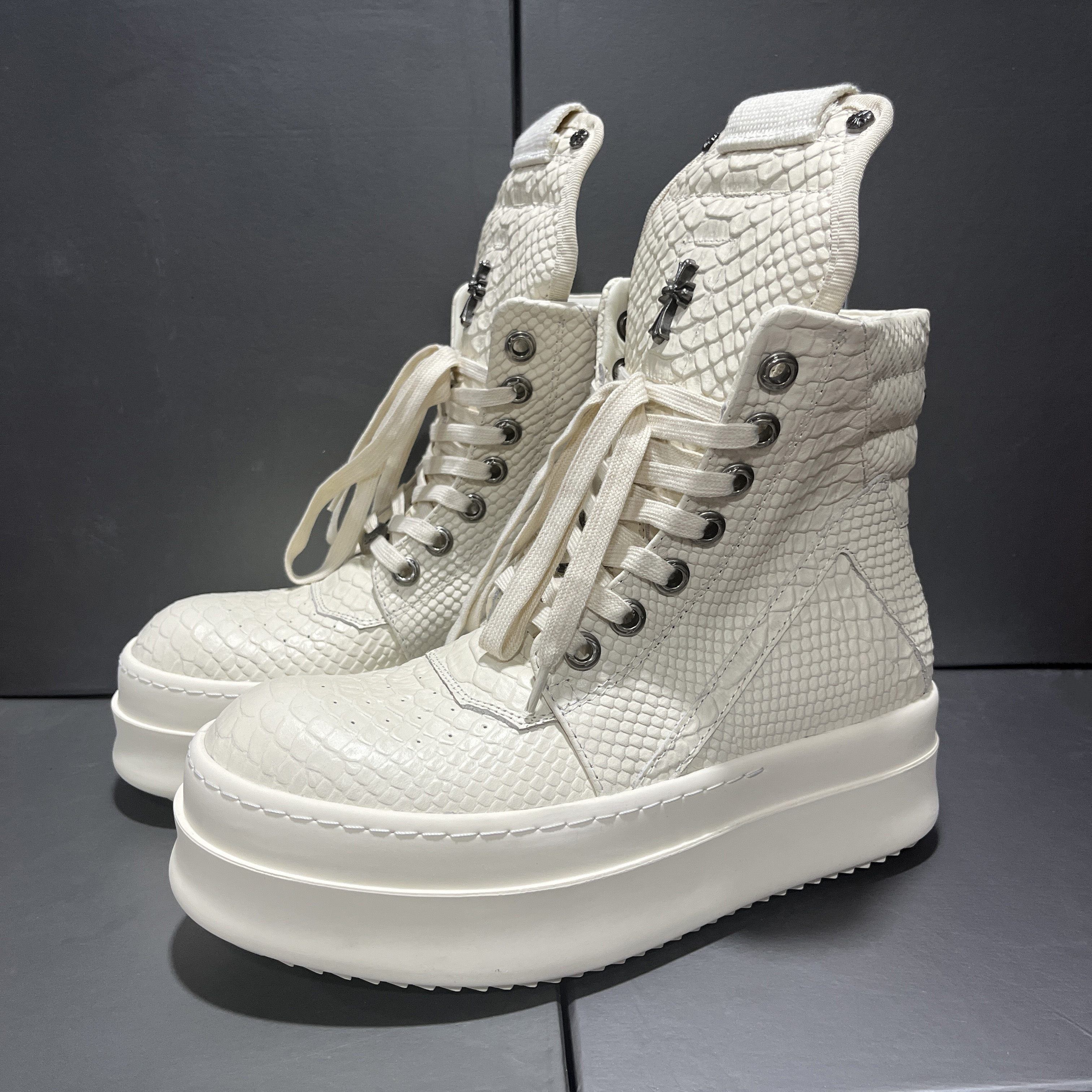 2025 New Ro Shoes High-Top Black and White Snake Pattern Inverted Triangle Genuine Leather Sneakers Men's Thick-Soled Casual Trendy Men's Short Boots