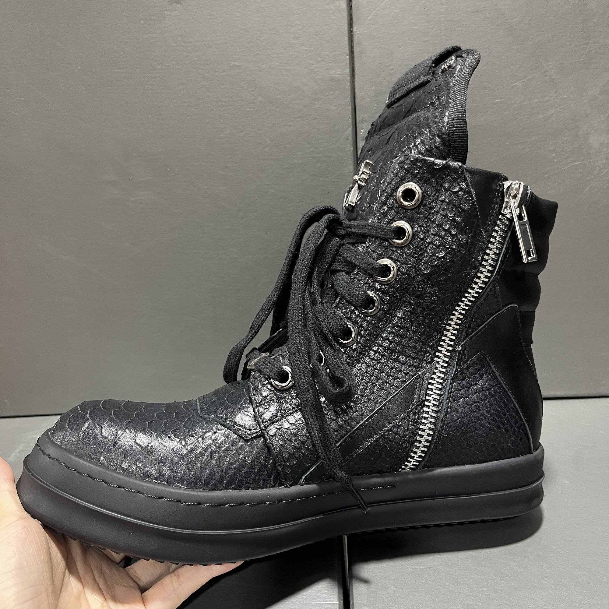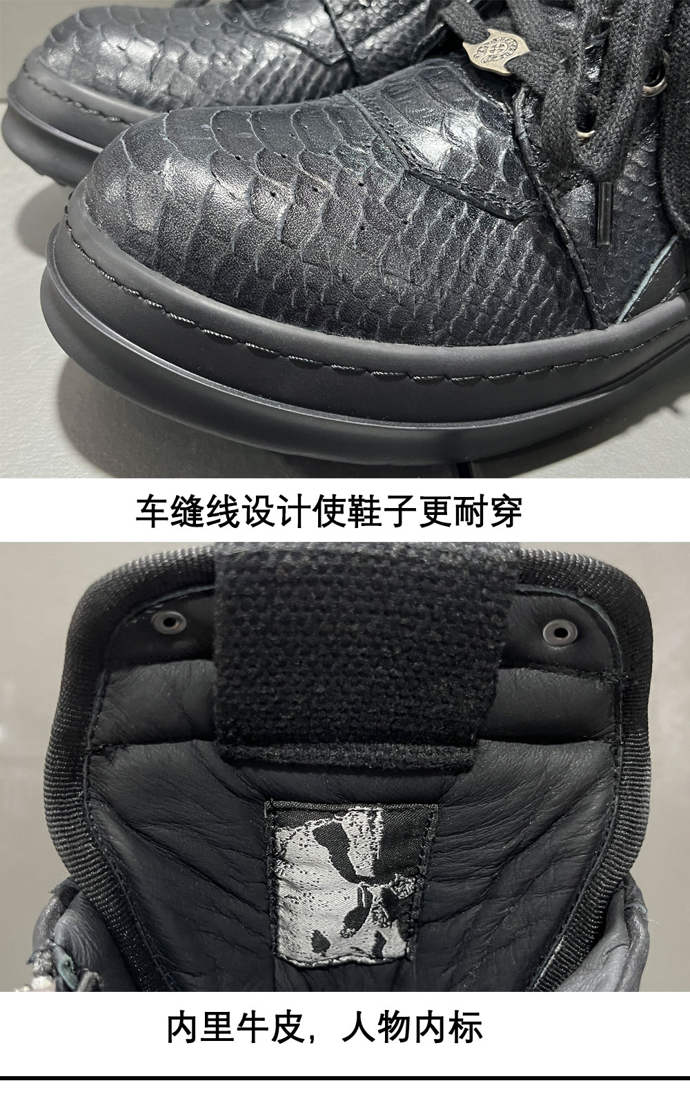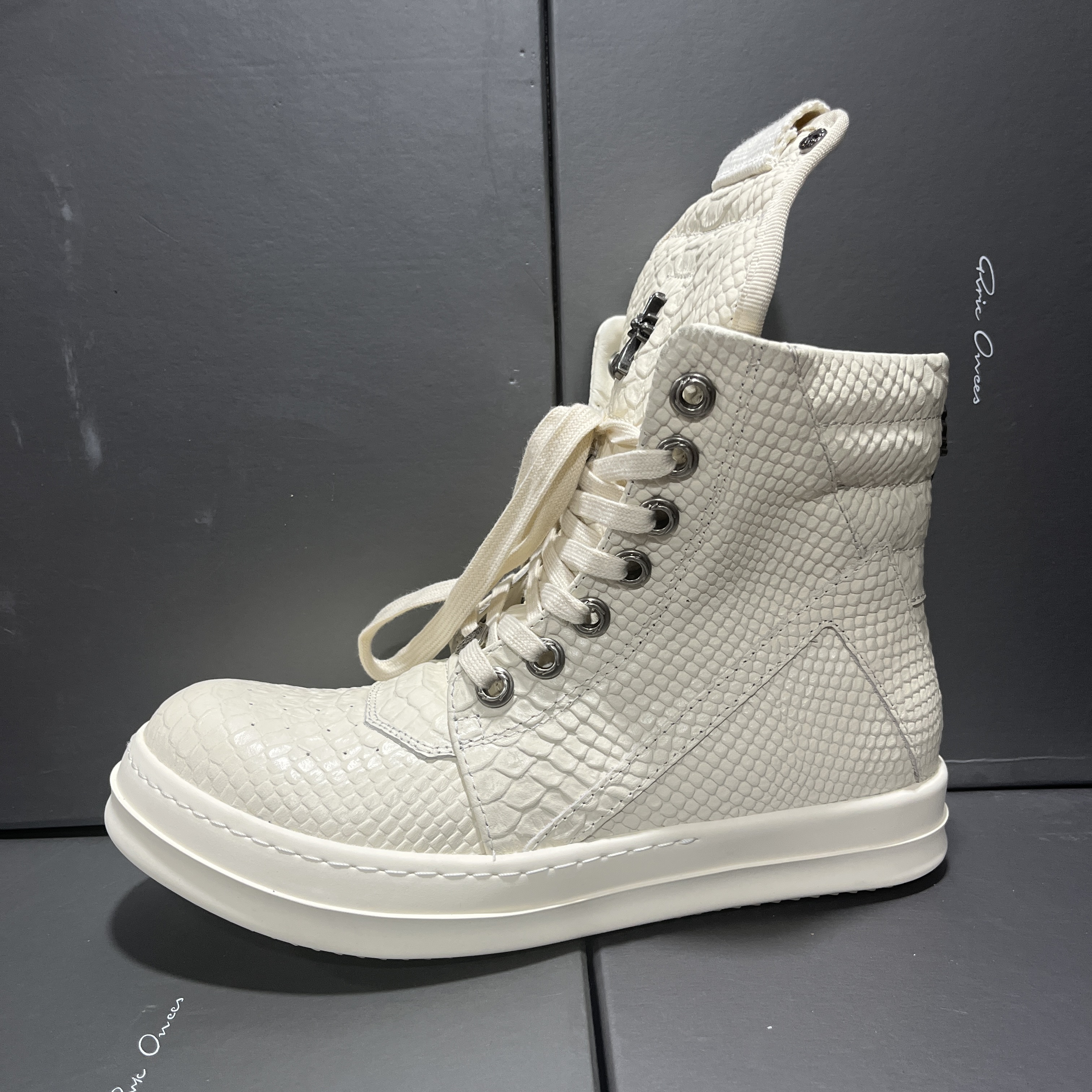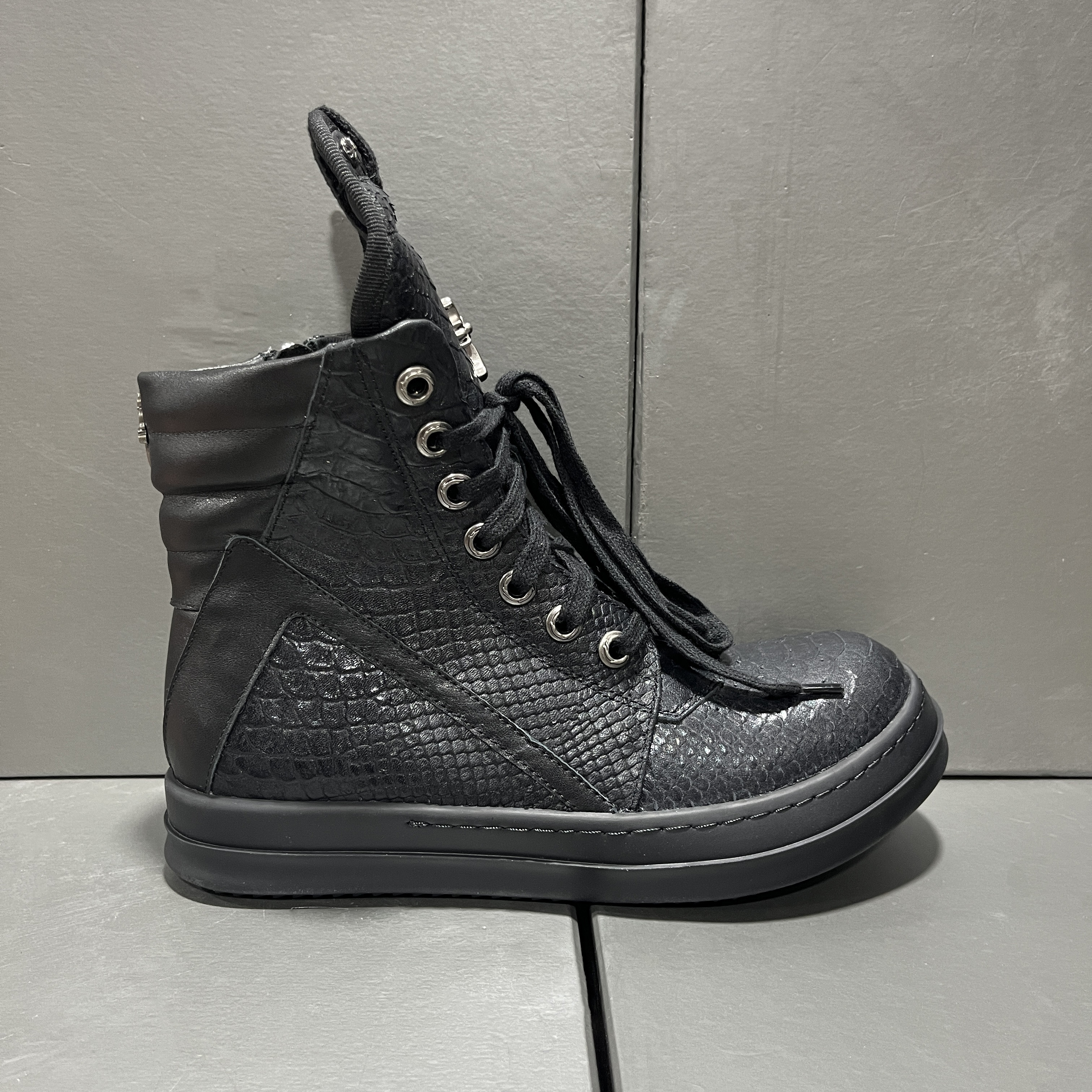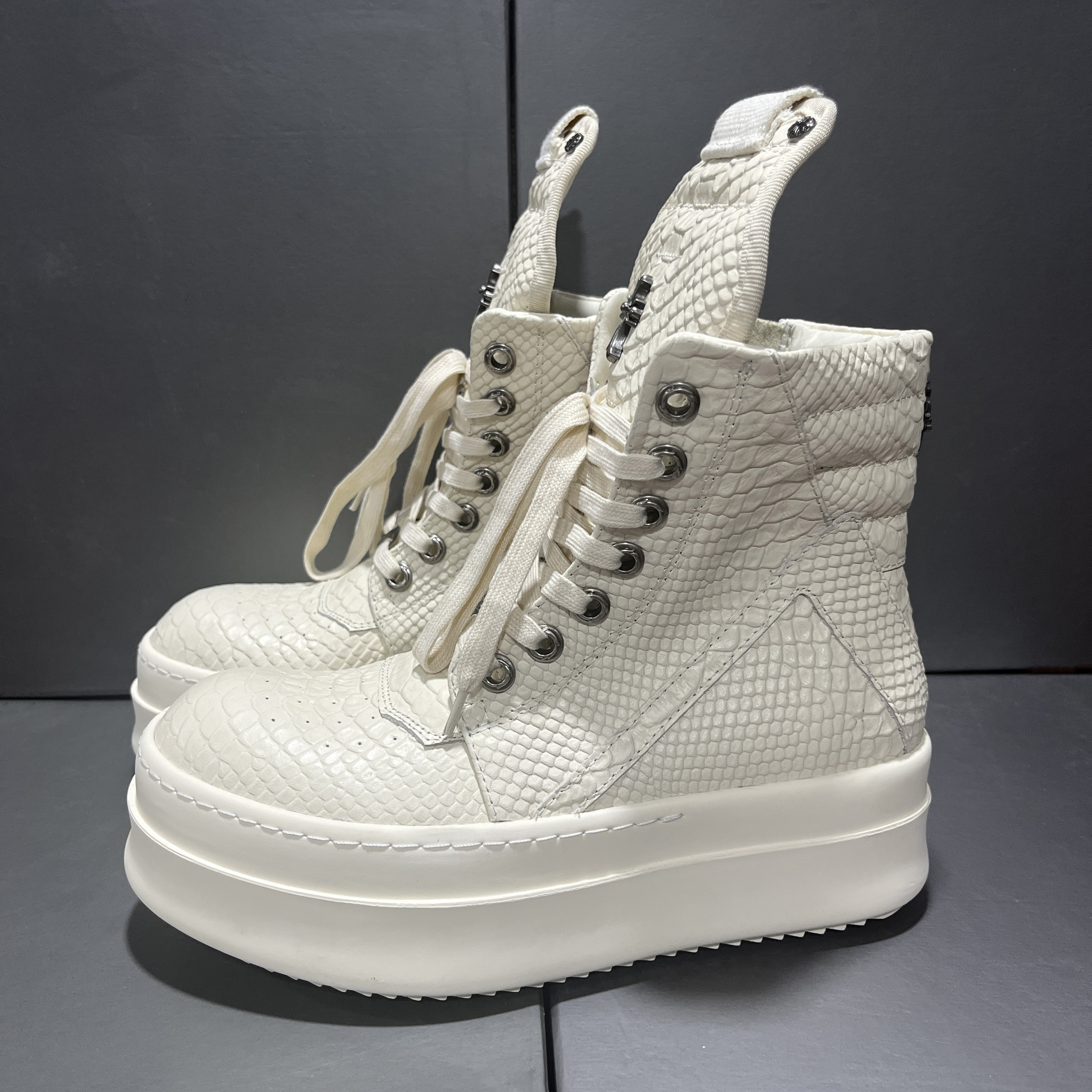 2025 New Ro Shoes High-Top Black and White Snake Pattern Inverted Triangle Genuine Leather Sneakers Men's Thick-Soled Casual Trendy Men's Short Boots