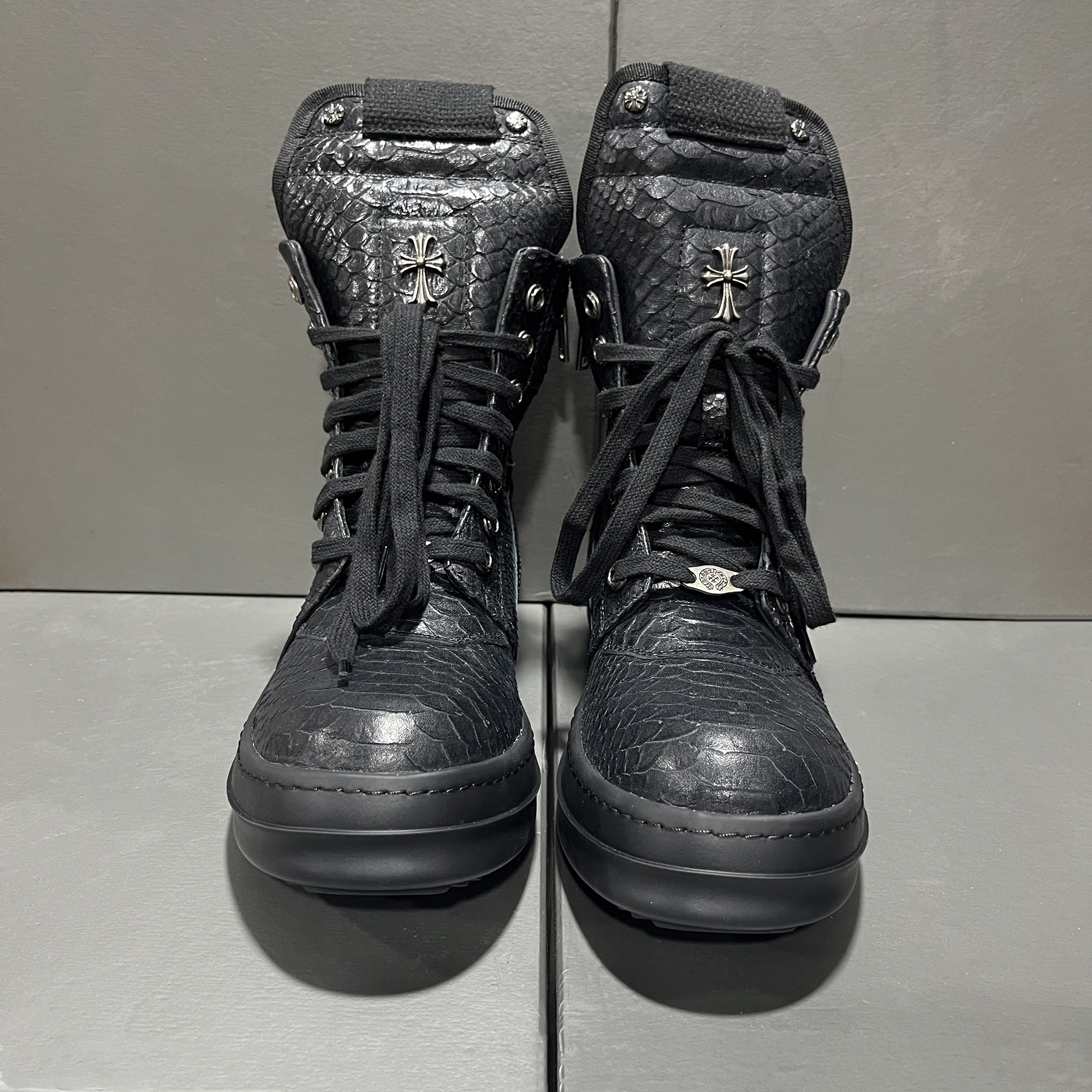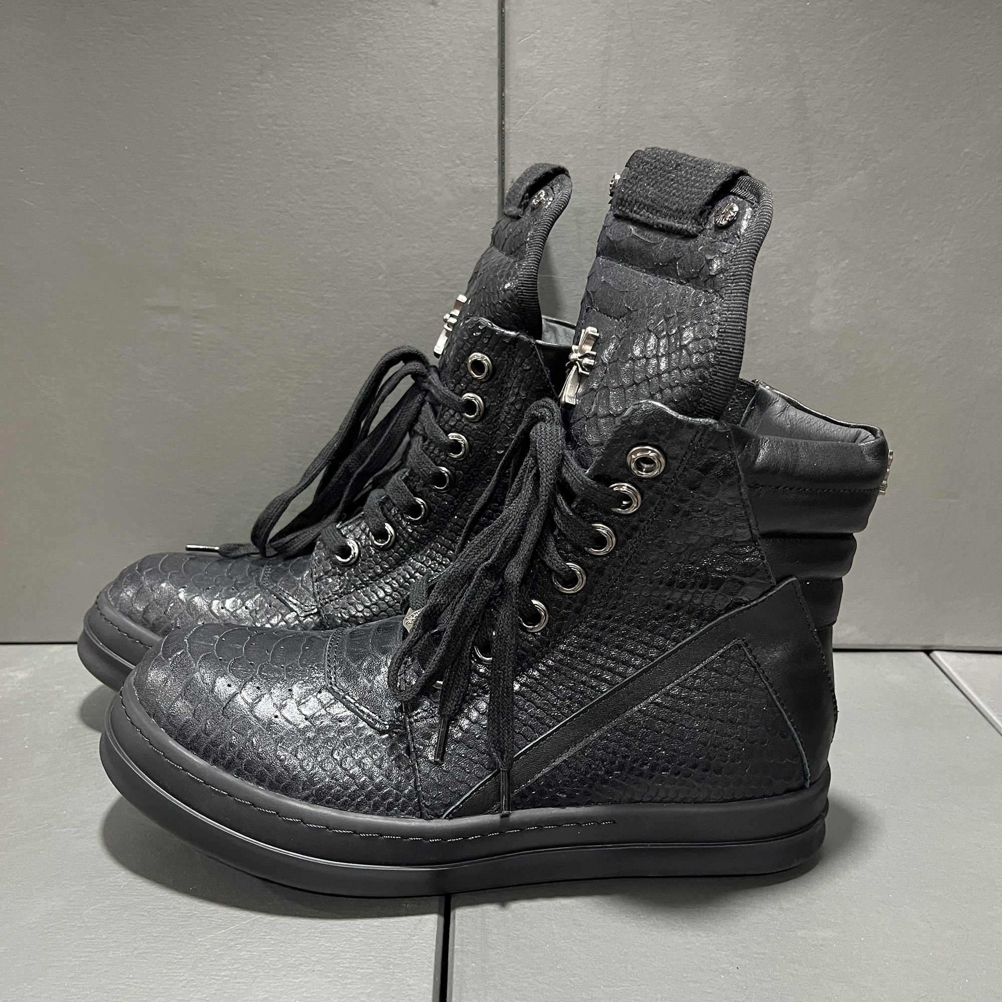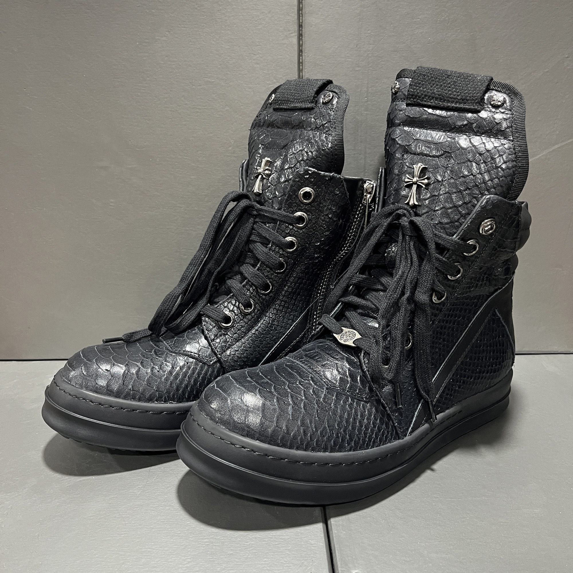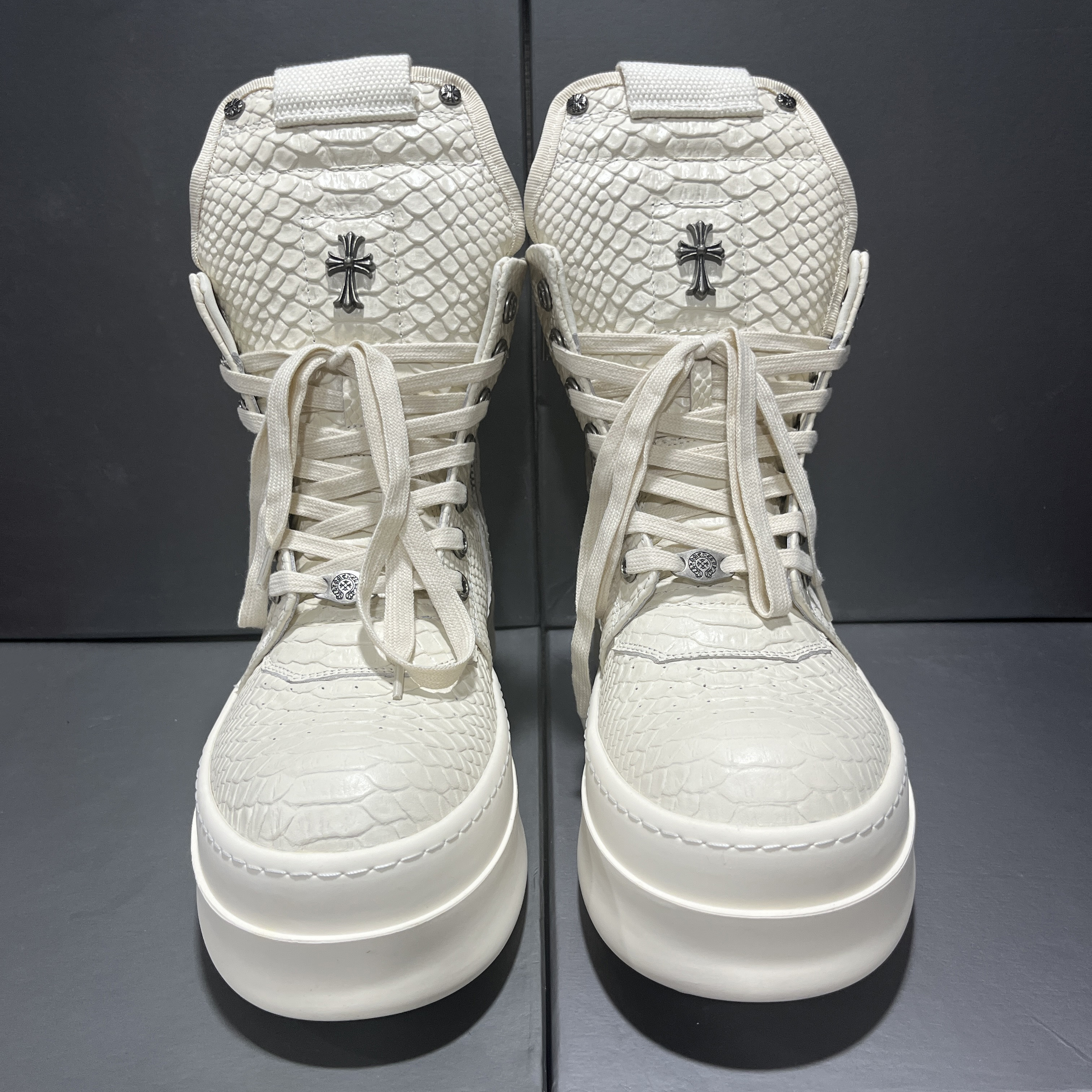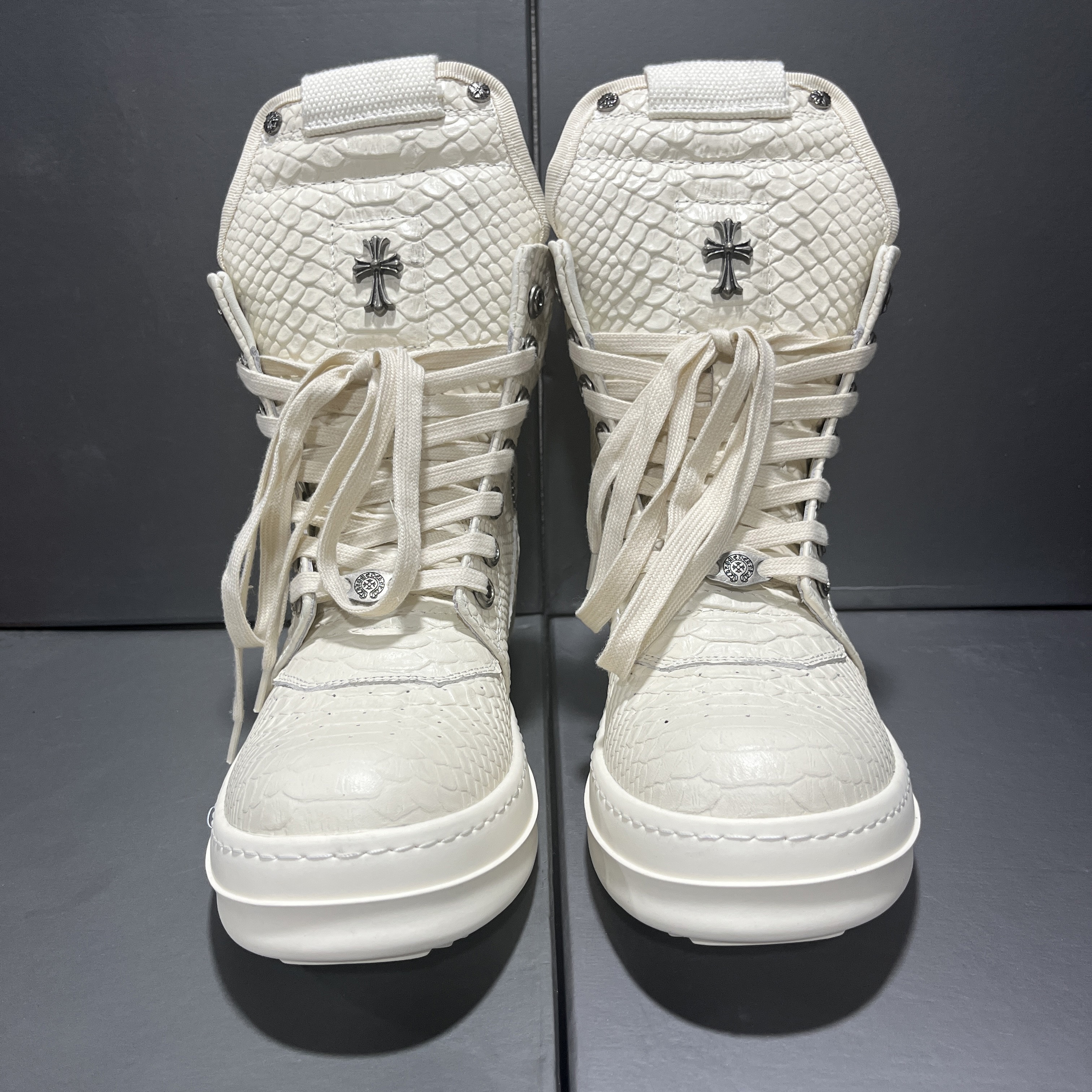 2025 New Ro Shoes High-Top Black and White Snake Pattern Inverted Triangle Genuine Leather Sneakers Men's Thick-Soled Casual Trendy Men's Short Boots