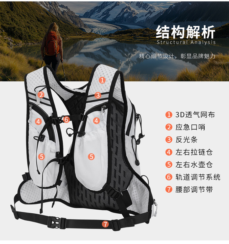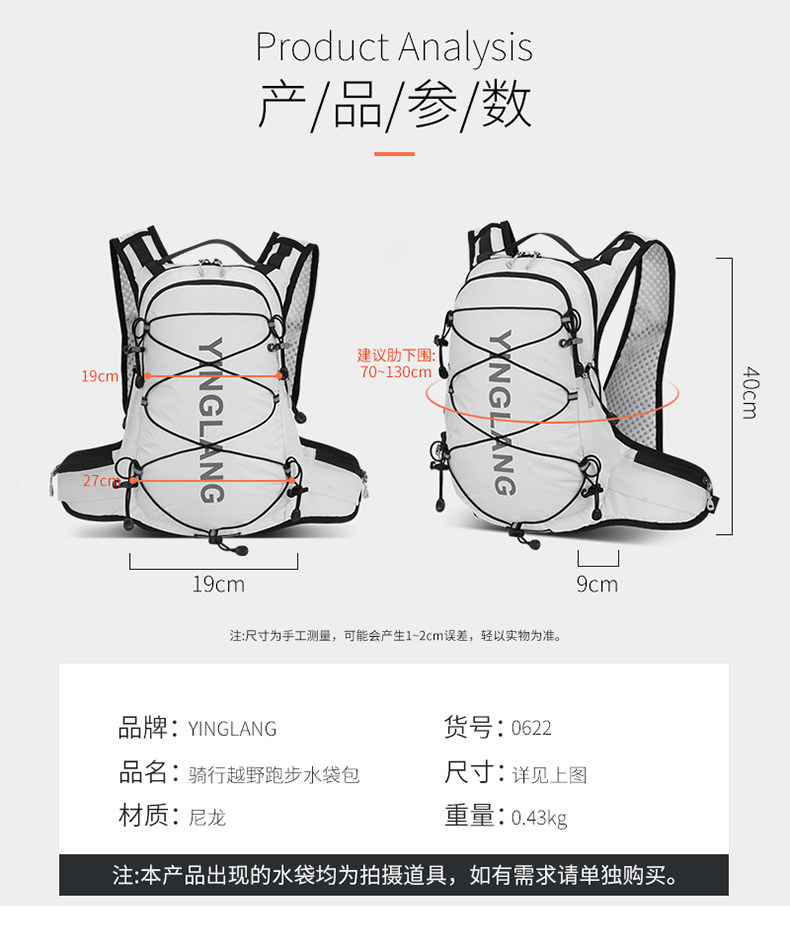 Genuine Yinglang 12L Cross-Country Running Backpack, Outdoor Mountaineering and Hiking Bag, Men's and Women's Cycling Backpack, Lightweight Water Bag Bag