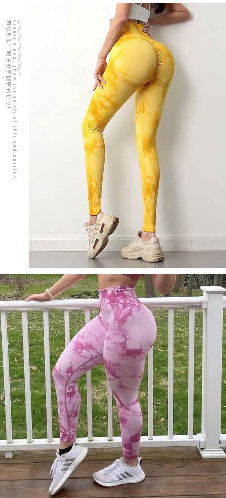 European and American Peach Lift Fitness Pants High-Waisted Tummy Control Tight Leggings Running Spring and Autumn Tie-Dye Sports Yoga Pants