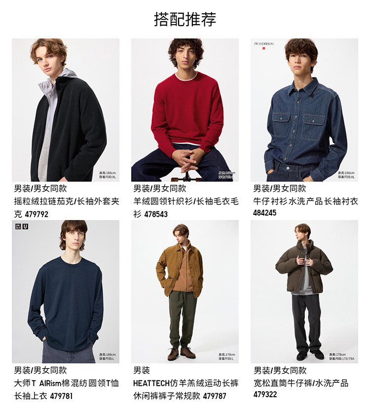 Uniqlo Men's and Women's Soft Round-Neck T-Shirt/Casual Long-Sleeved Top 479783