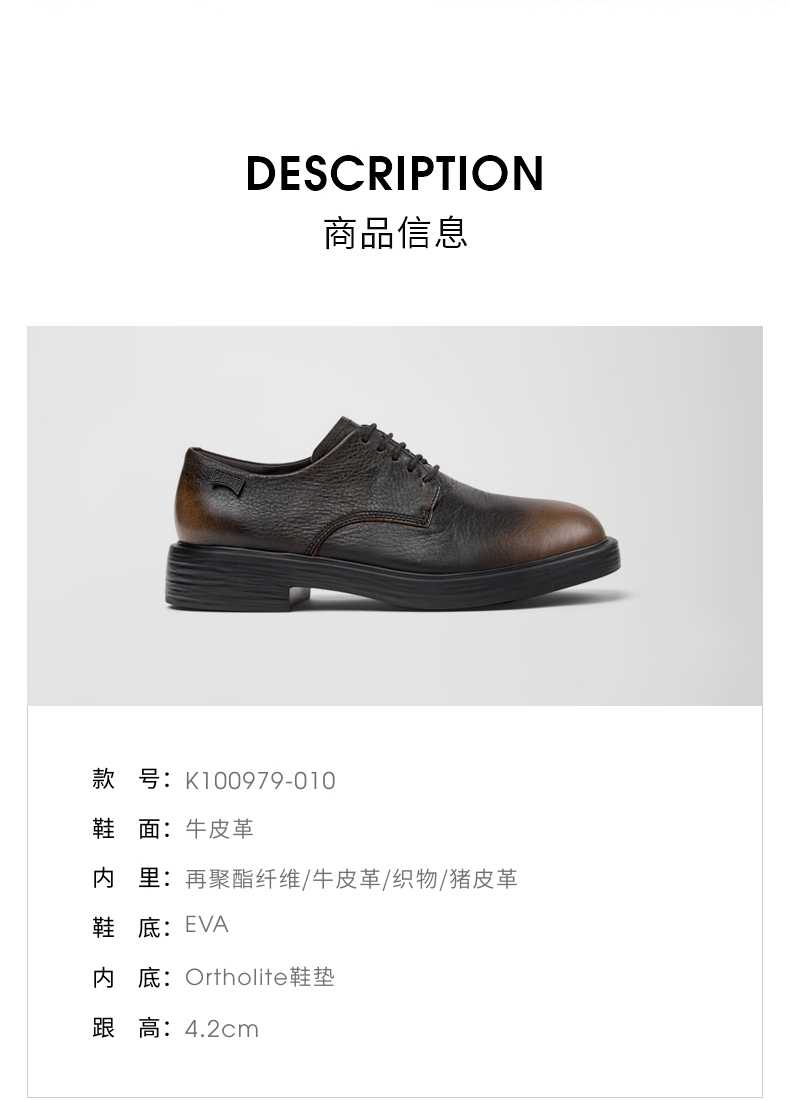 [New] Camper Men's Shoes Dean Shoelace Derby Shoes Business Work Clothing Casual Leather Round Toe Shoes
