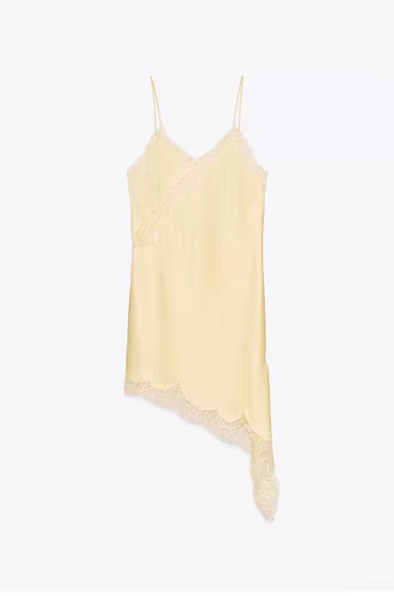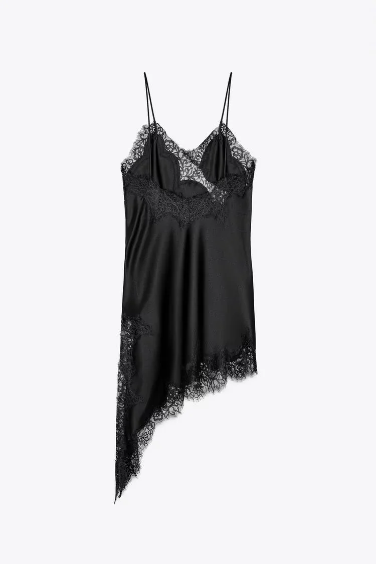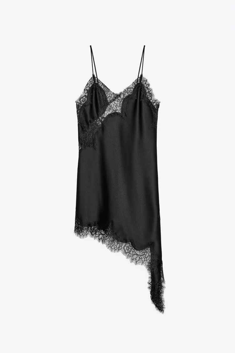Zaprha 2025 Summer New Sexy Lace V-Neck Sleeveless Asymmetric Suspender Dress 5919200