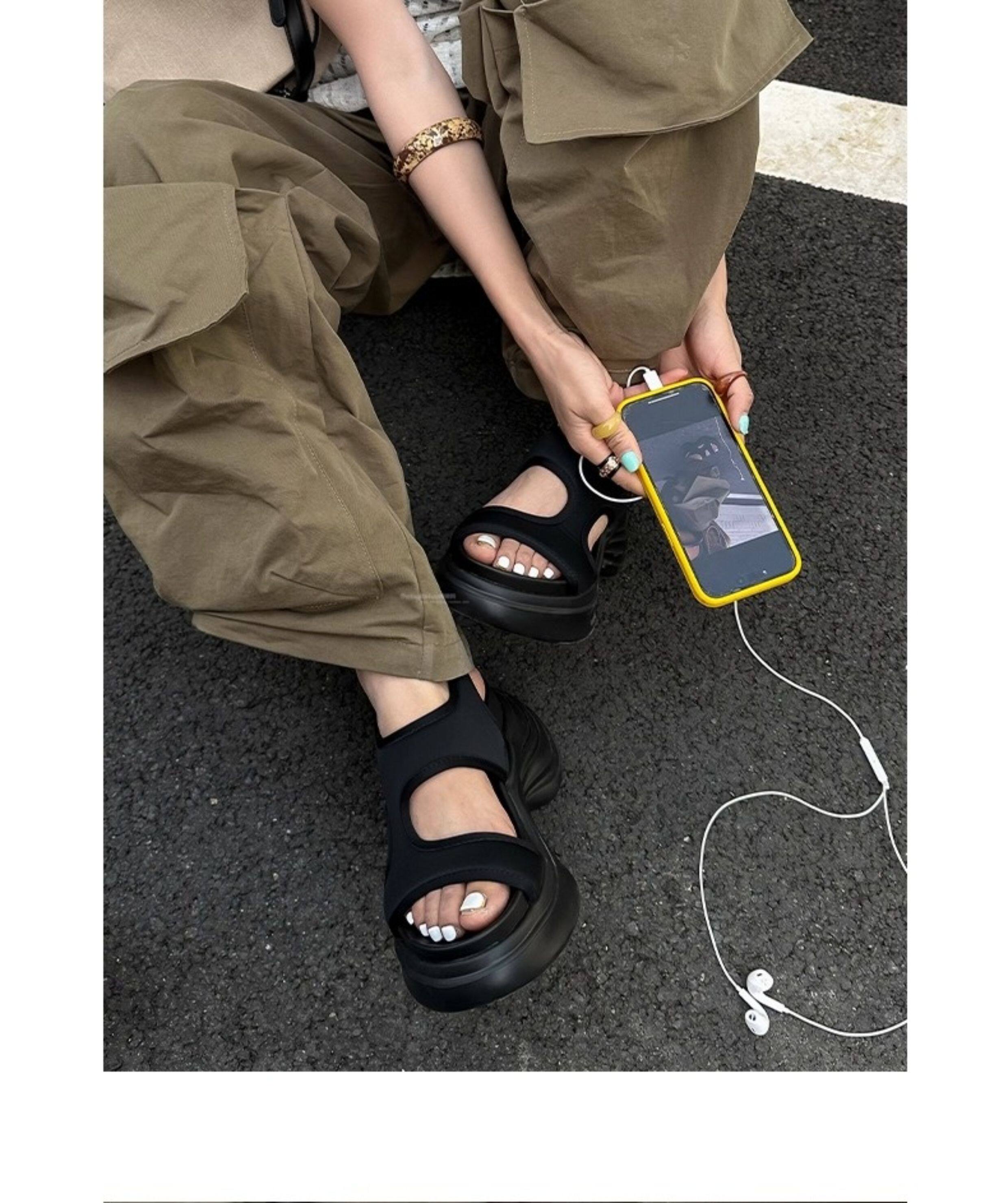 Hong Kong Style Height-Increasing Sandals for Women, 2026 Spring and Autumn New Model, Highly Breathable Platform Thick-Soled Casual Versatile Beach Shoes