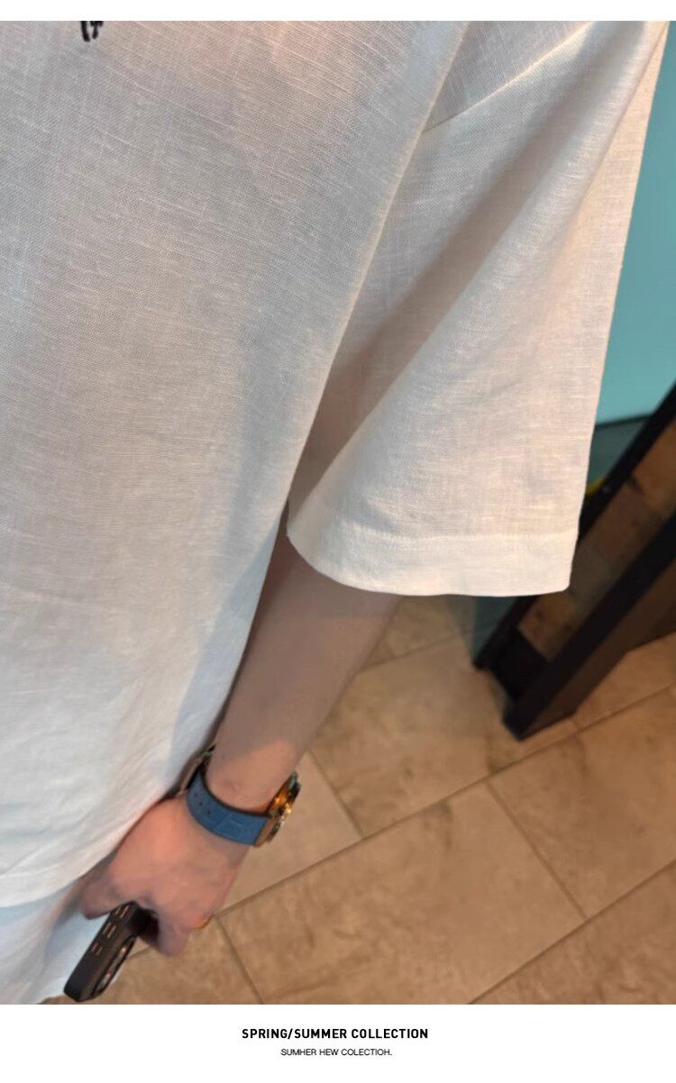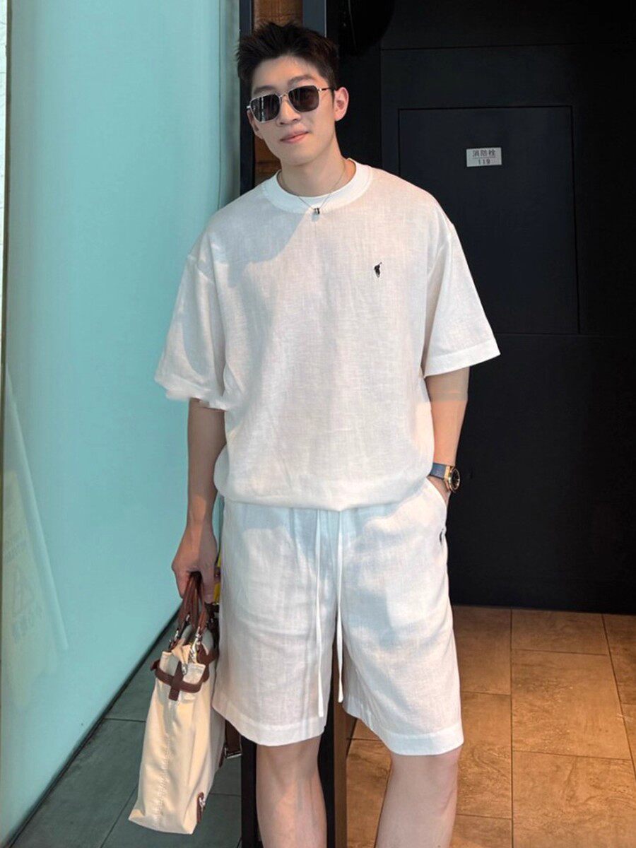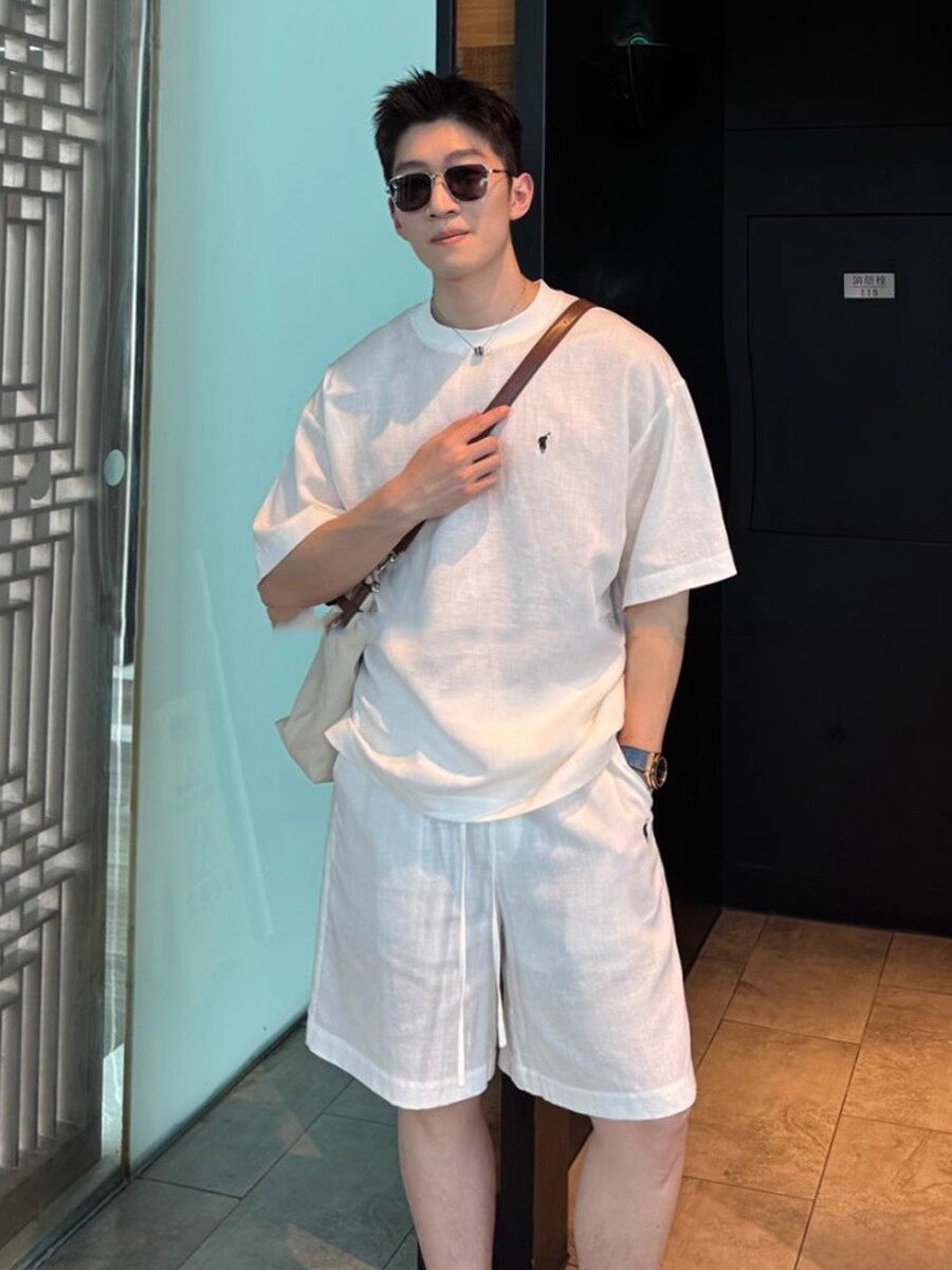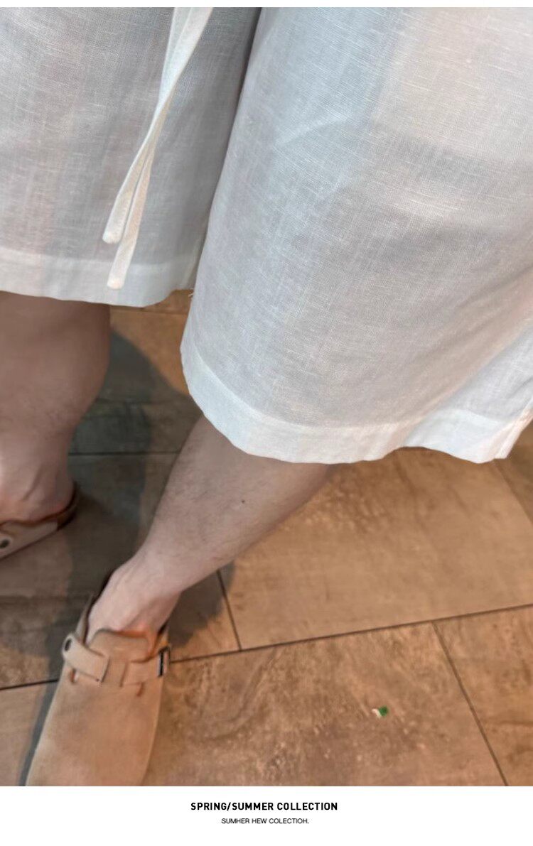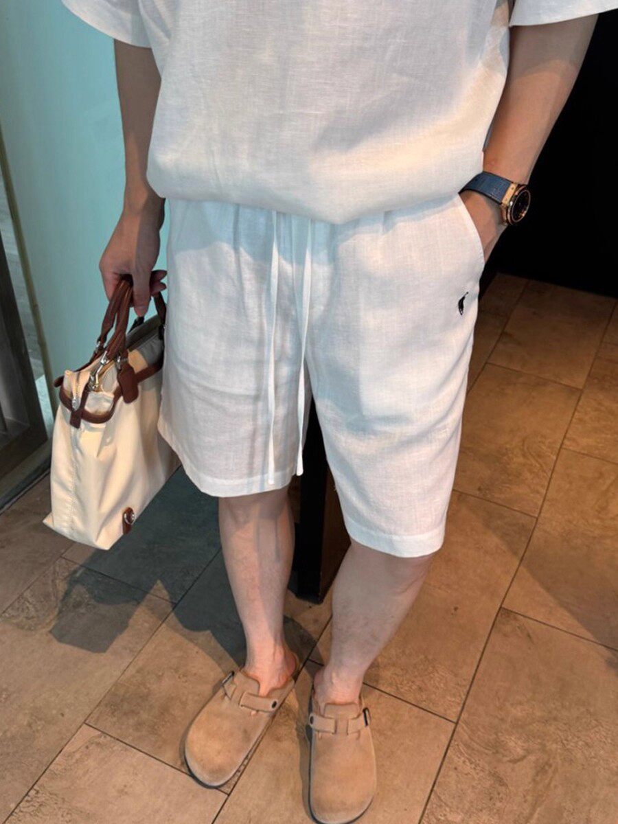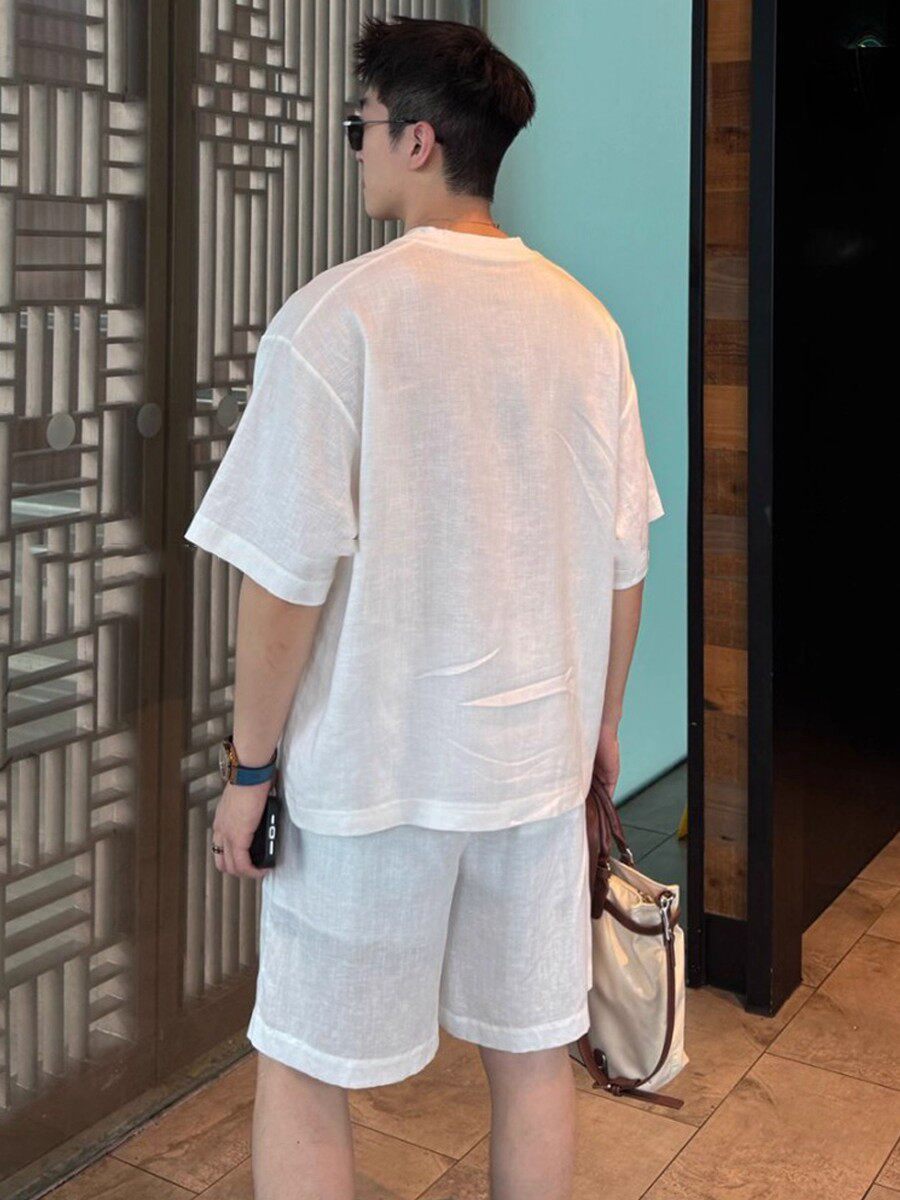 High-End Old Money Style Linen Short-Sleeve T-Shirt Set for Men, 2026 New Summer White Casual Shorts, Thin Men's Style