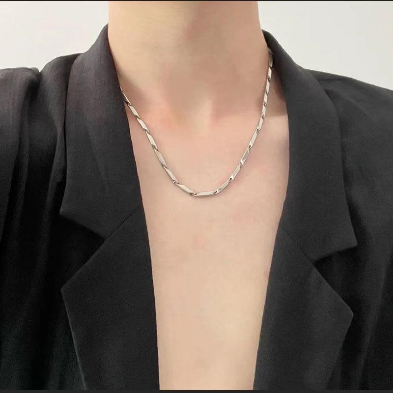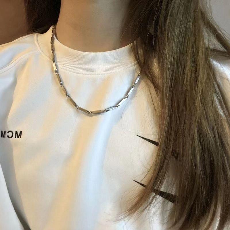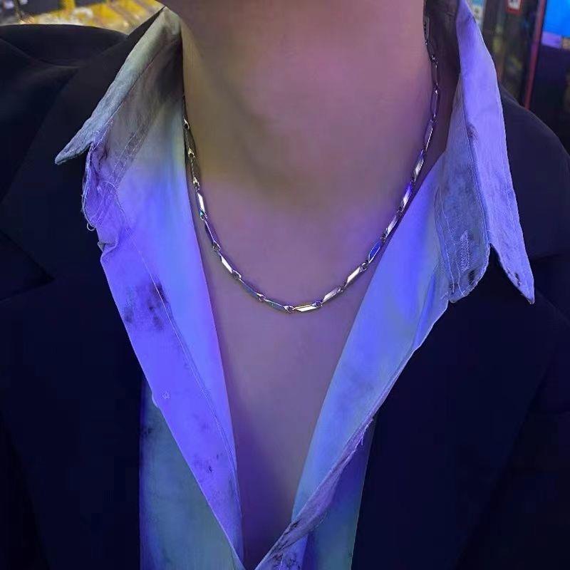 Men's Necklace Bamboo Chain Titanium Steel High-Grade Rhombus Clavicle Chain Men's Necklace Simple Necklace Men's Trendy Fashion Versatile
