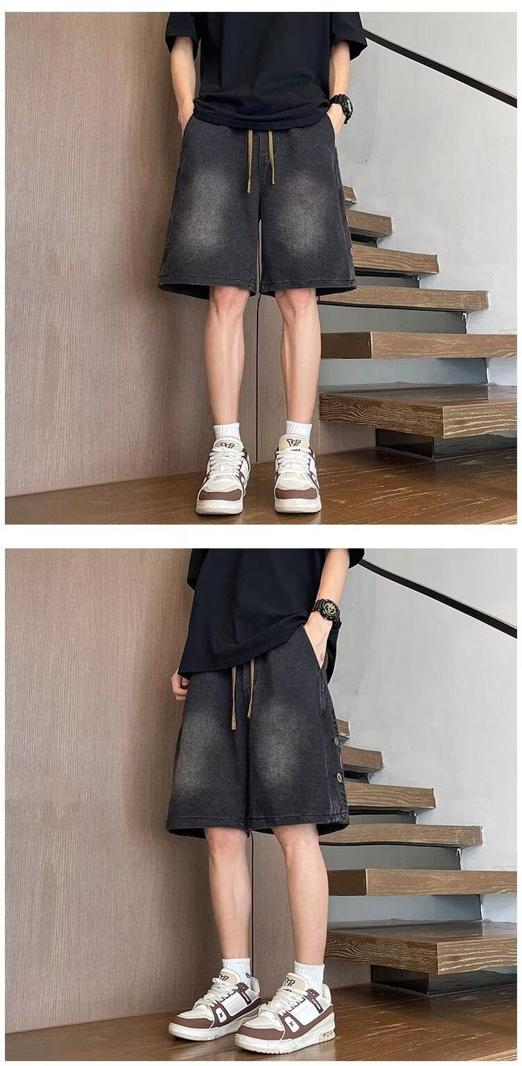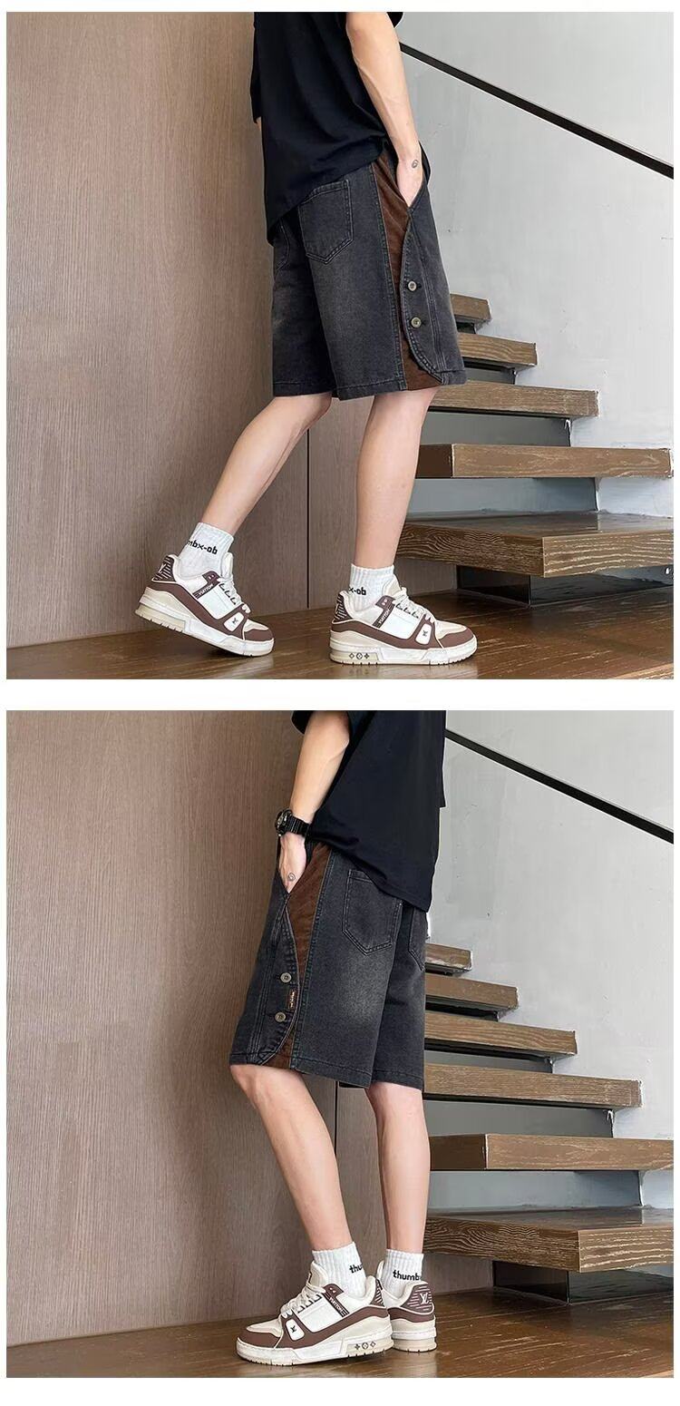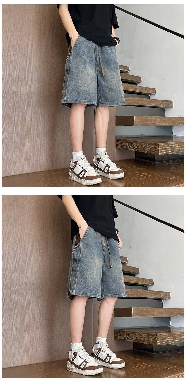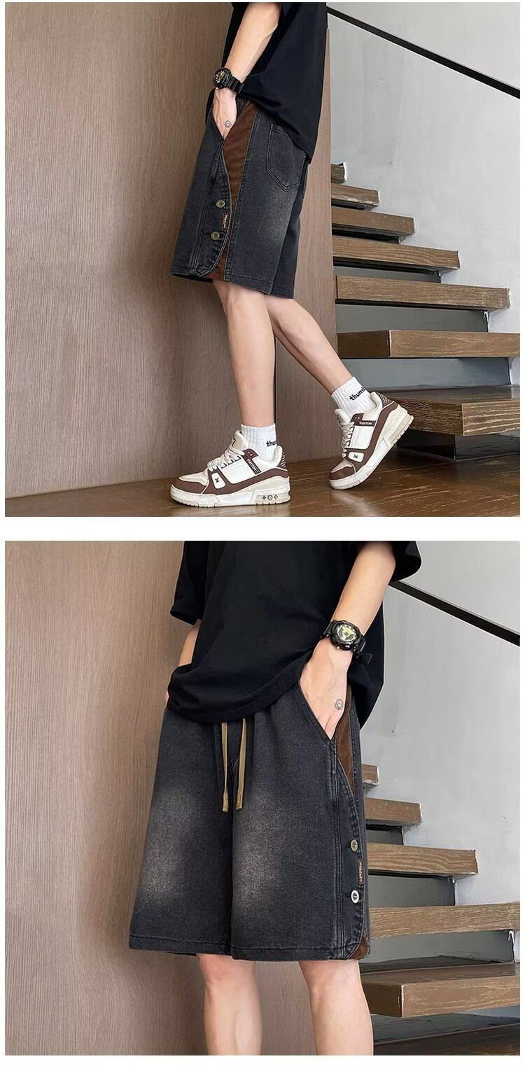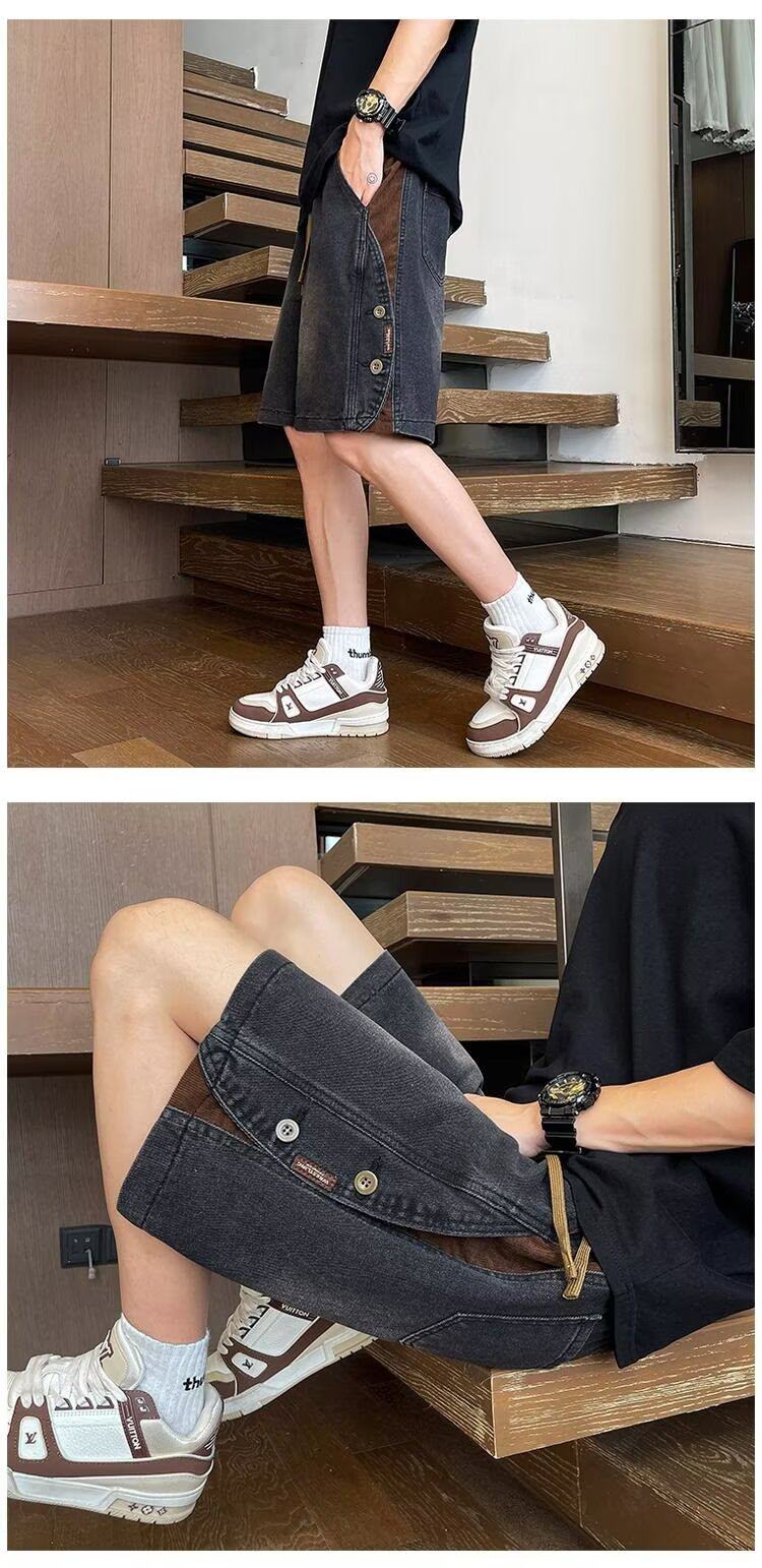 American Retro Denim Shorts for Men, Summer Thin Loose Trendy Brand Patchwork Five-Point Shorts, Casual Cool Mid-Length Pants