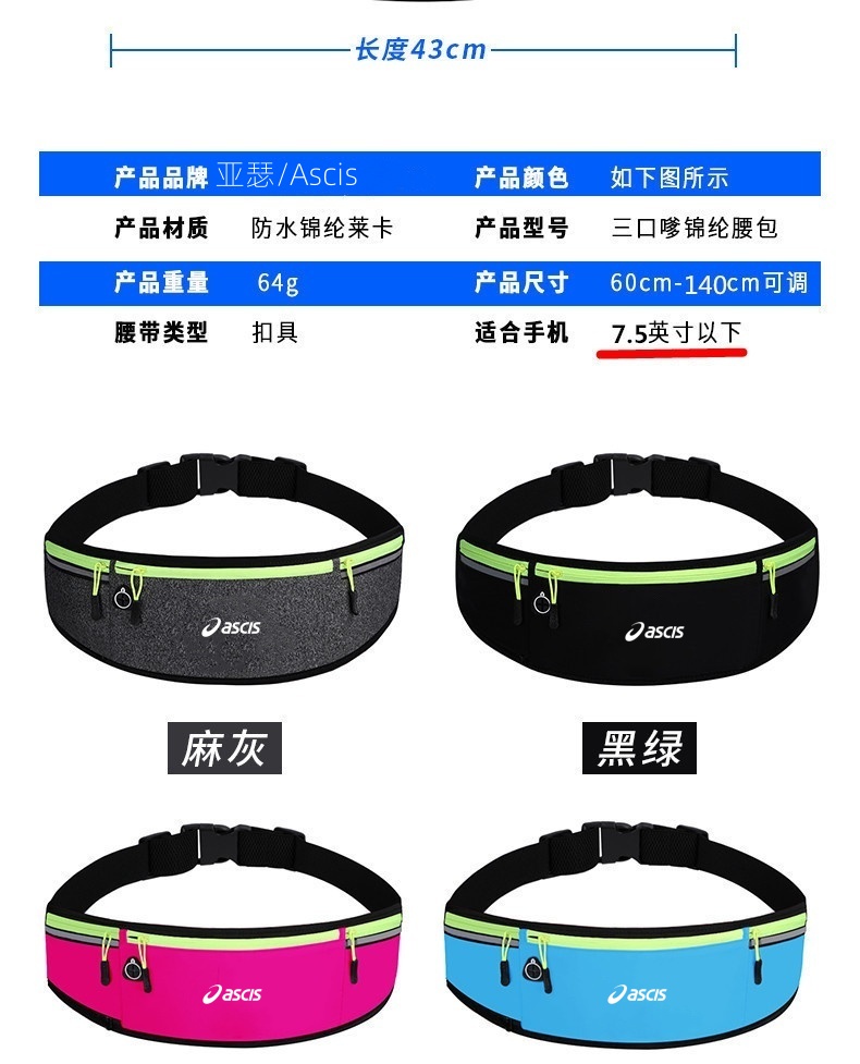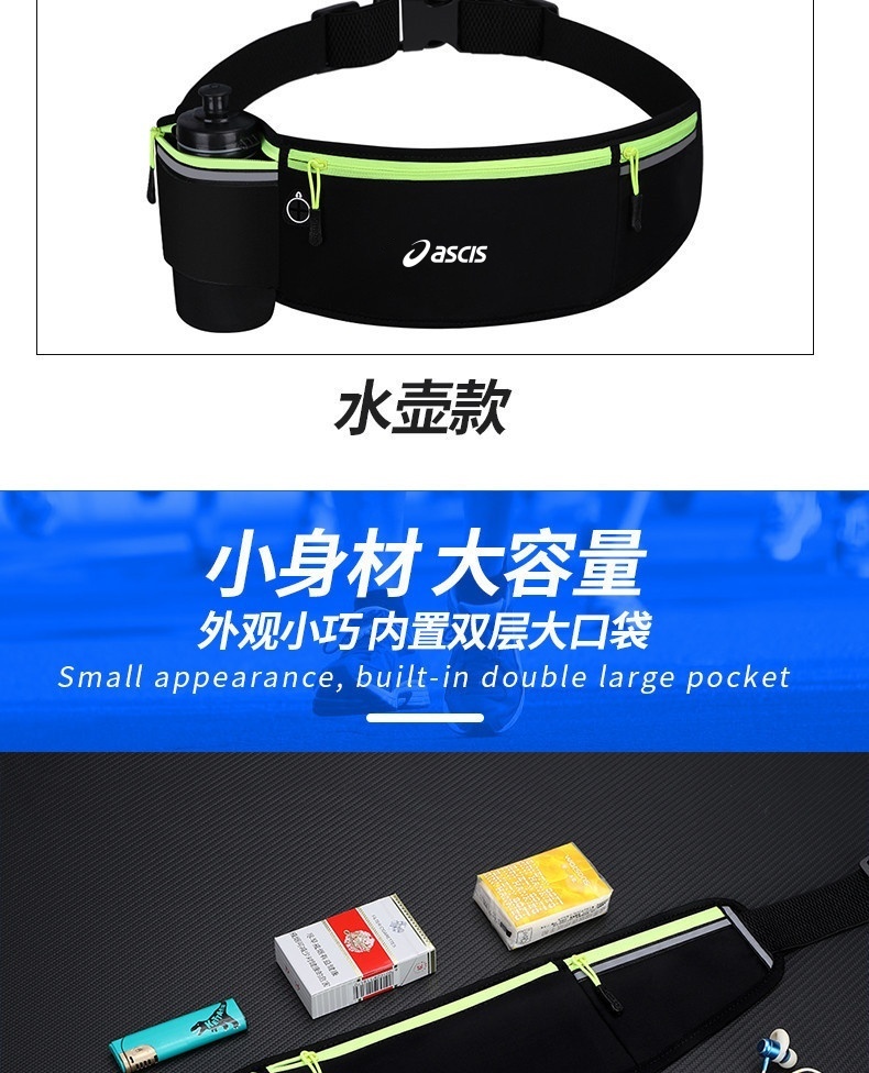 Japan/Ascis Sports Phone Waist Bag for Men and Women, Outdoor Running Fitness Multifunctional Marathon Water Bottle Belt