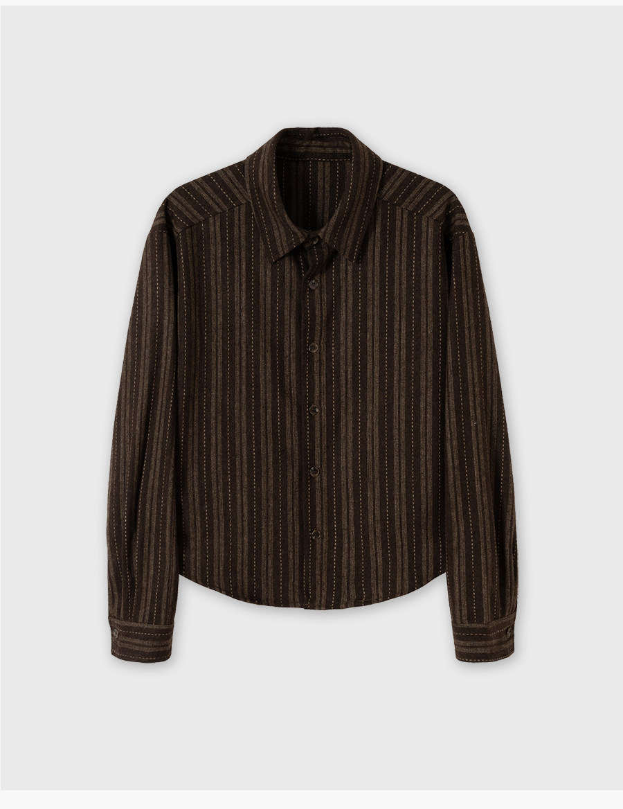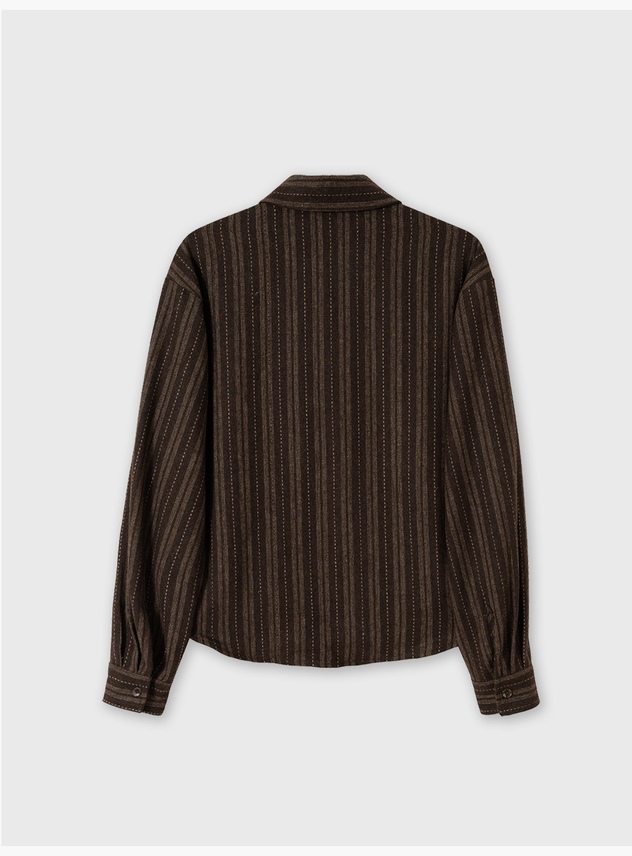 Breathy Striped Blended Elegant Wire-Hemmed Short Wide Shoulder Long-Sleeved Shirt Jacket for Autumn and Winter