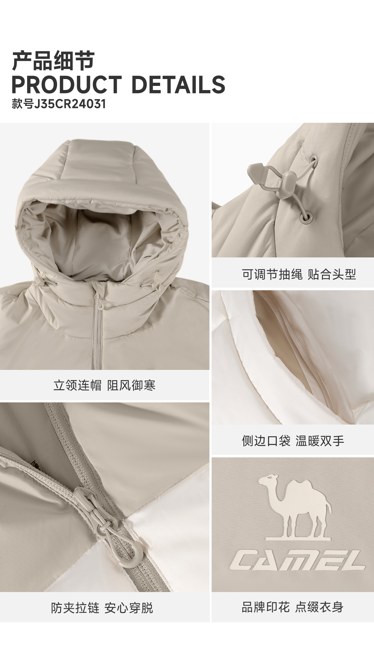 Camel Puff Down jacket Women's Winter Duck Down thickened Windproof Hooded Outwear Heattech Short Bread Suit