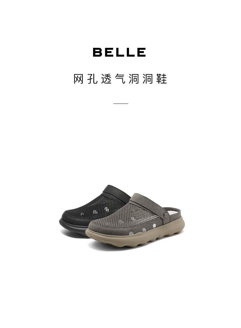Belle Genuine Casual Outer Wear Clogs Men's Summer Mesh Breathable Slippers Baotou Beach Sandals A1640Bm4