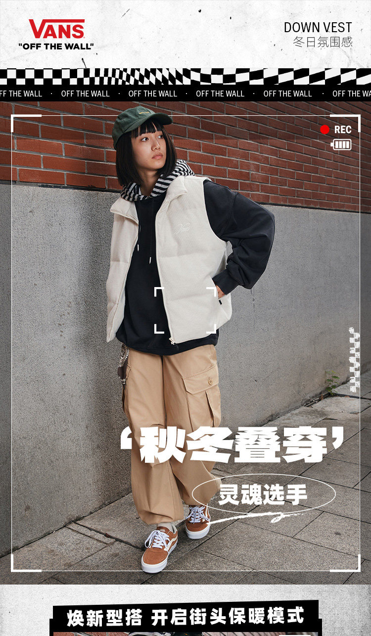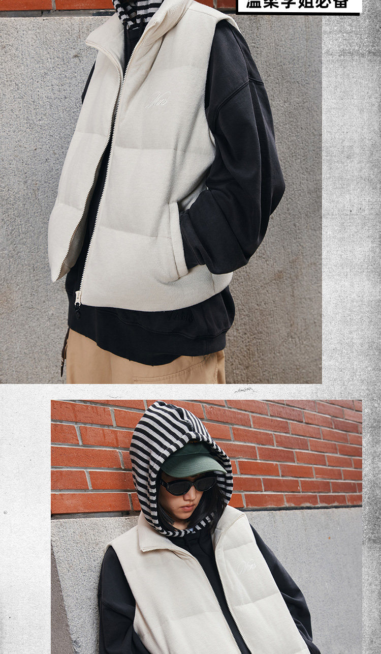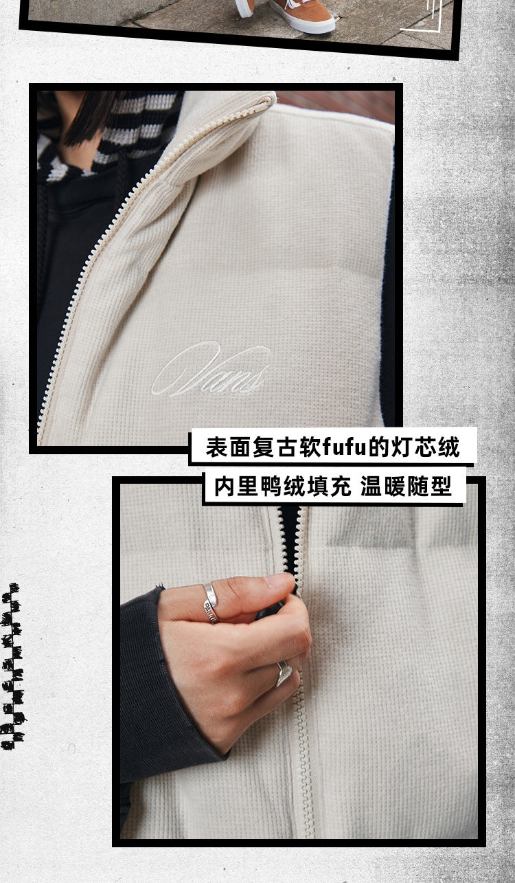 Vans Official Women's Corduroy down Vest with Warm Stand Collar
