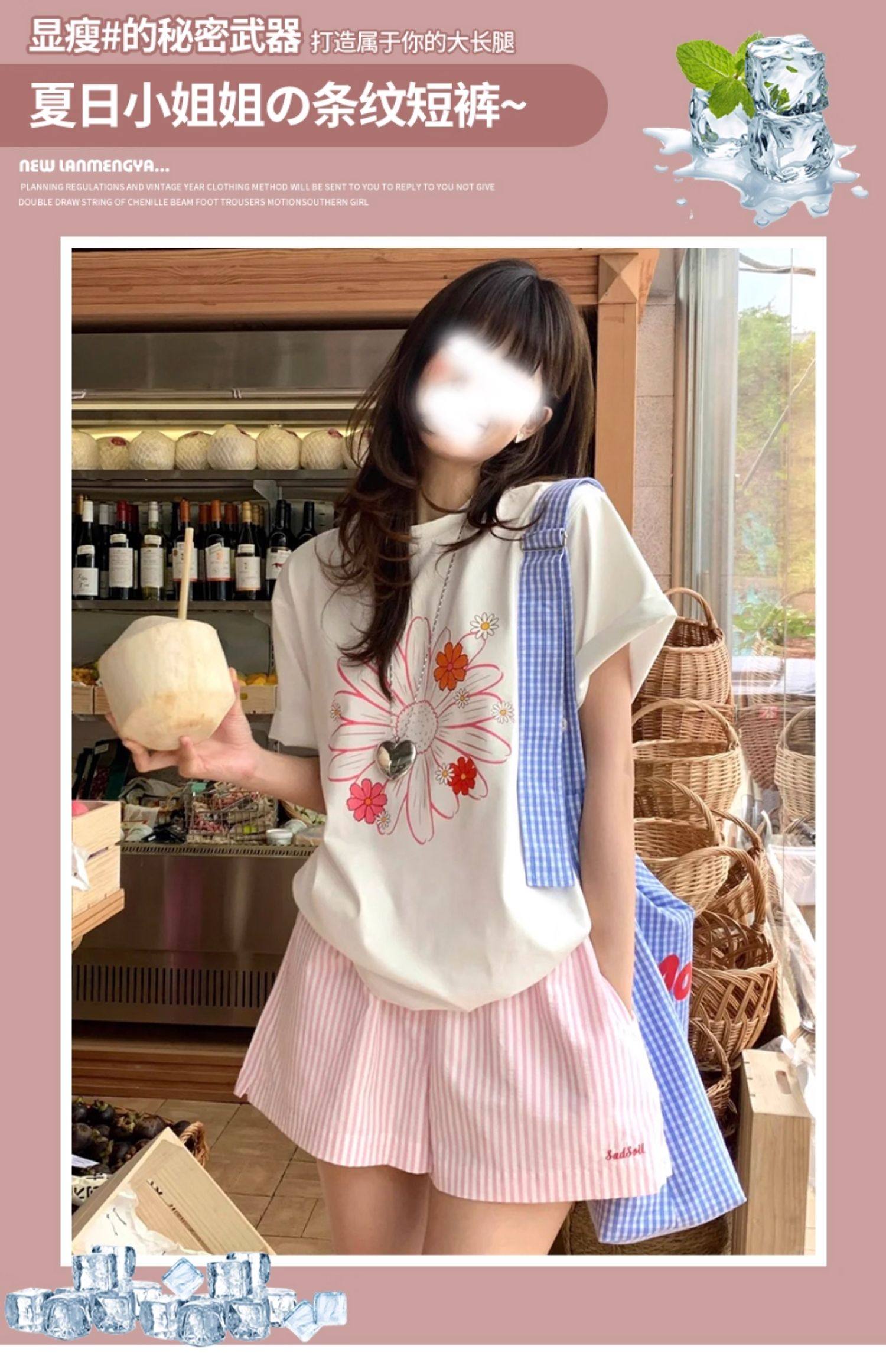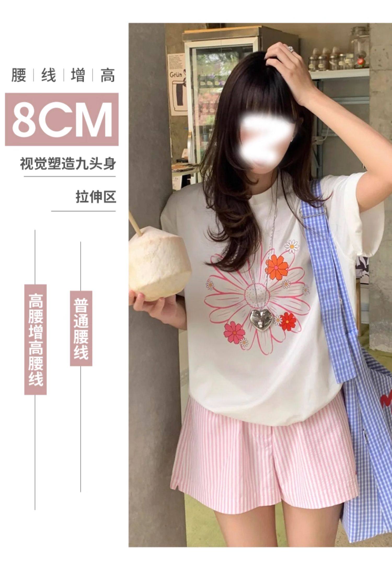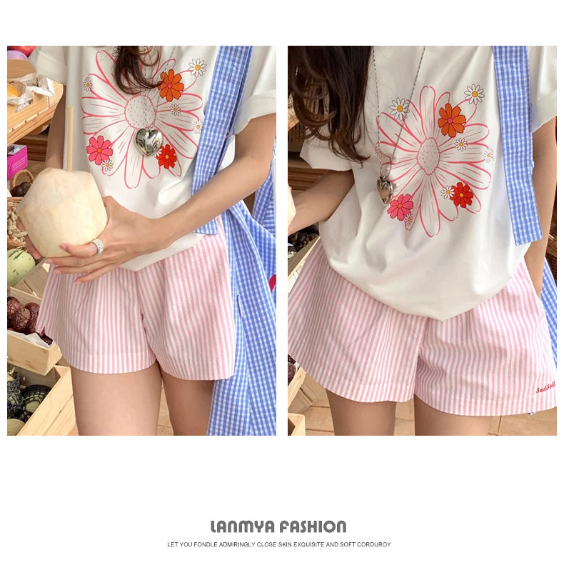 Clearance Sale~ Striped Shorts for Petite Women, Summer High-Waisted Casual A-Line Sports Shorts, Slimming Beach Three-Quarter Shorts