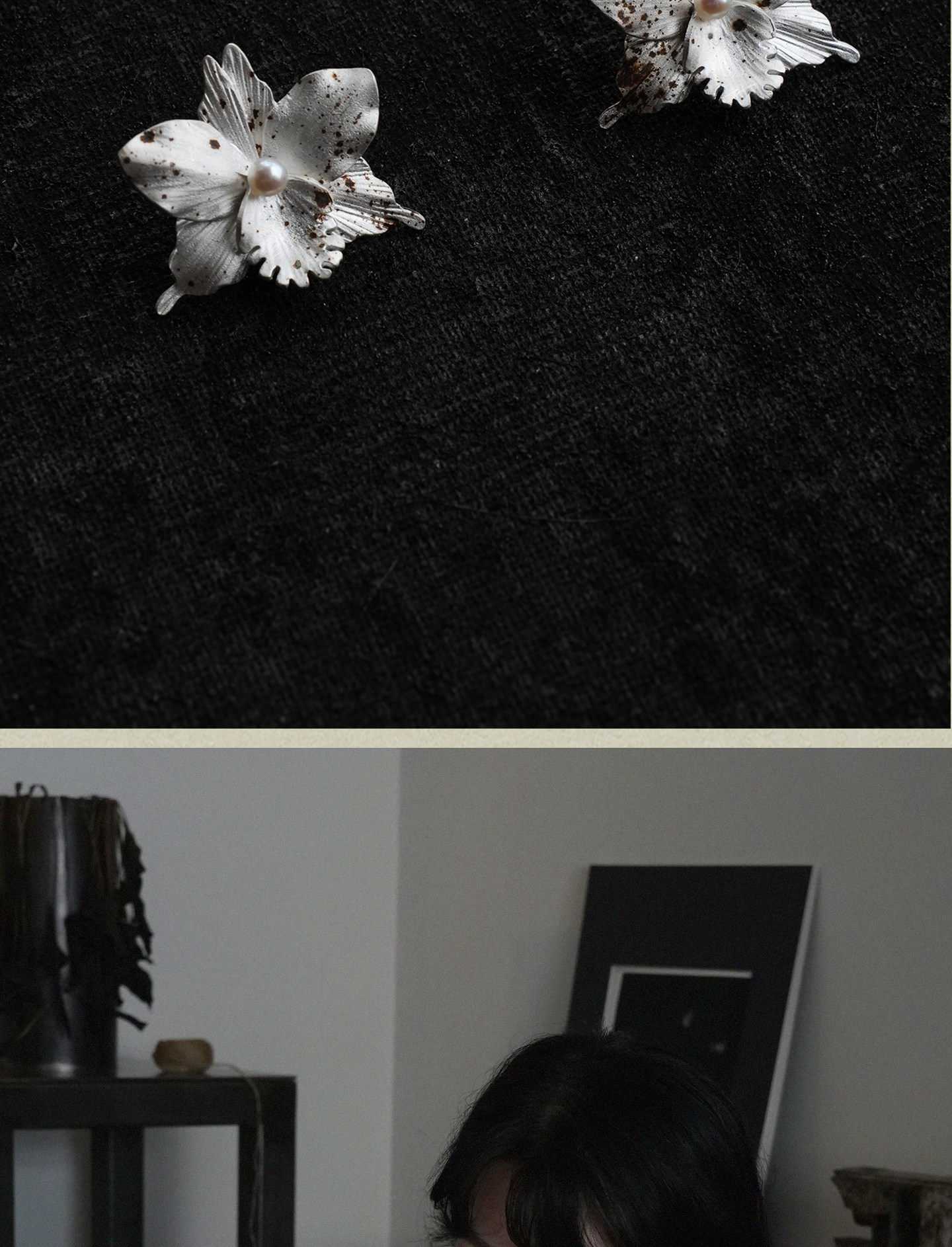 Yiyu Yiyu Lan Die Series S925 Sterling Silver Earrings Original Niche Design Handmade Silver Jewelry Burnt White Ink Splatter