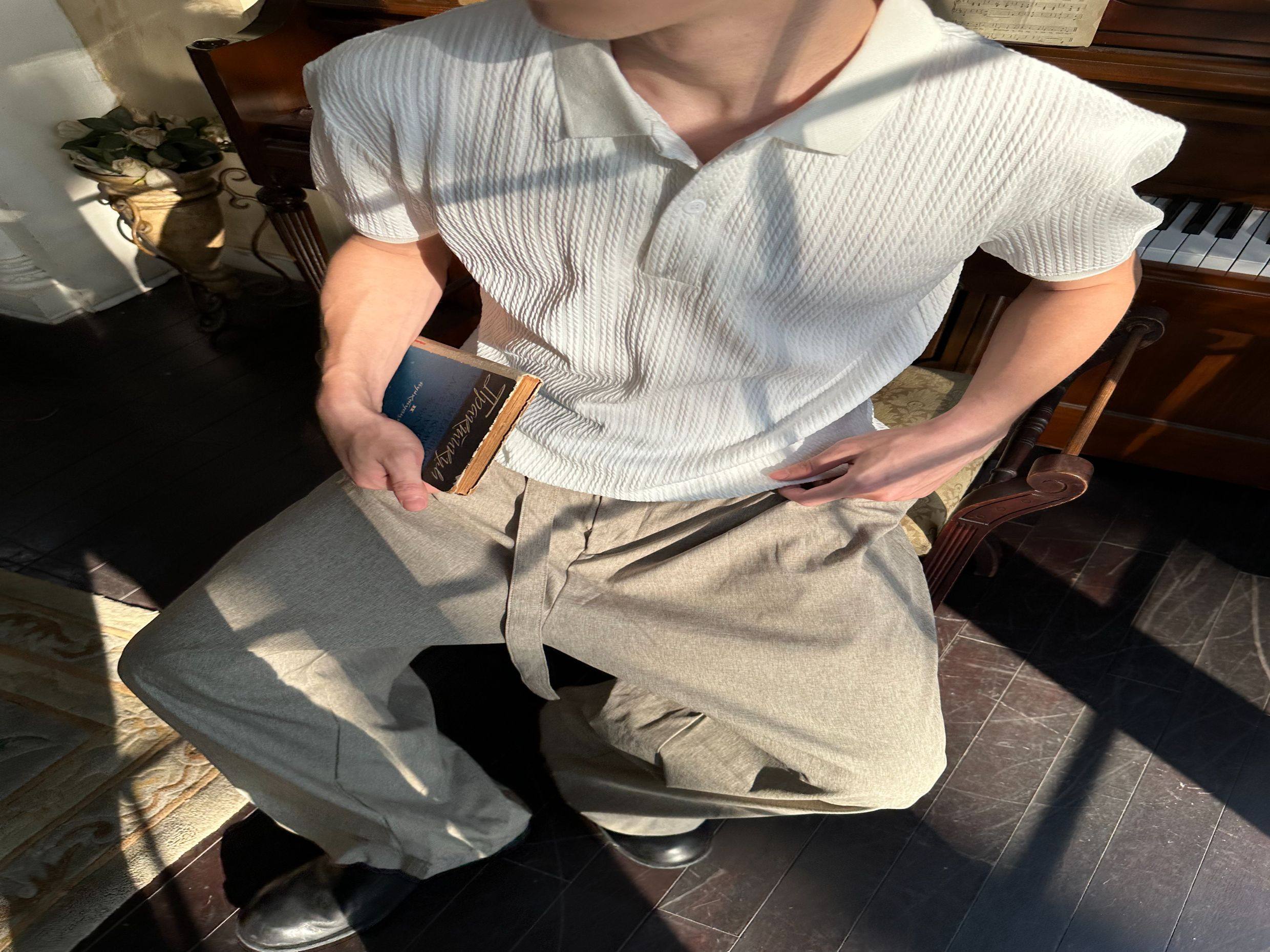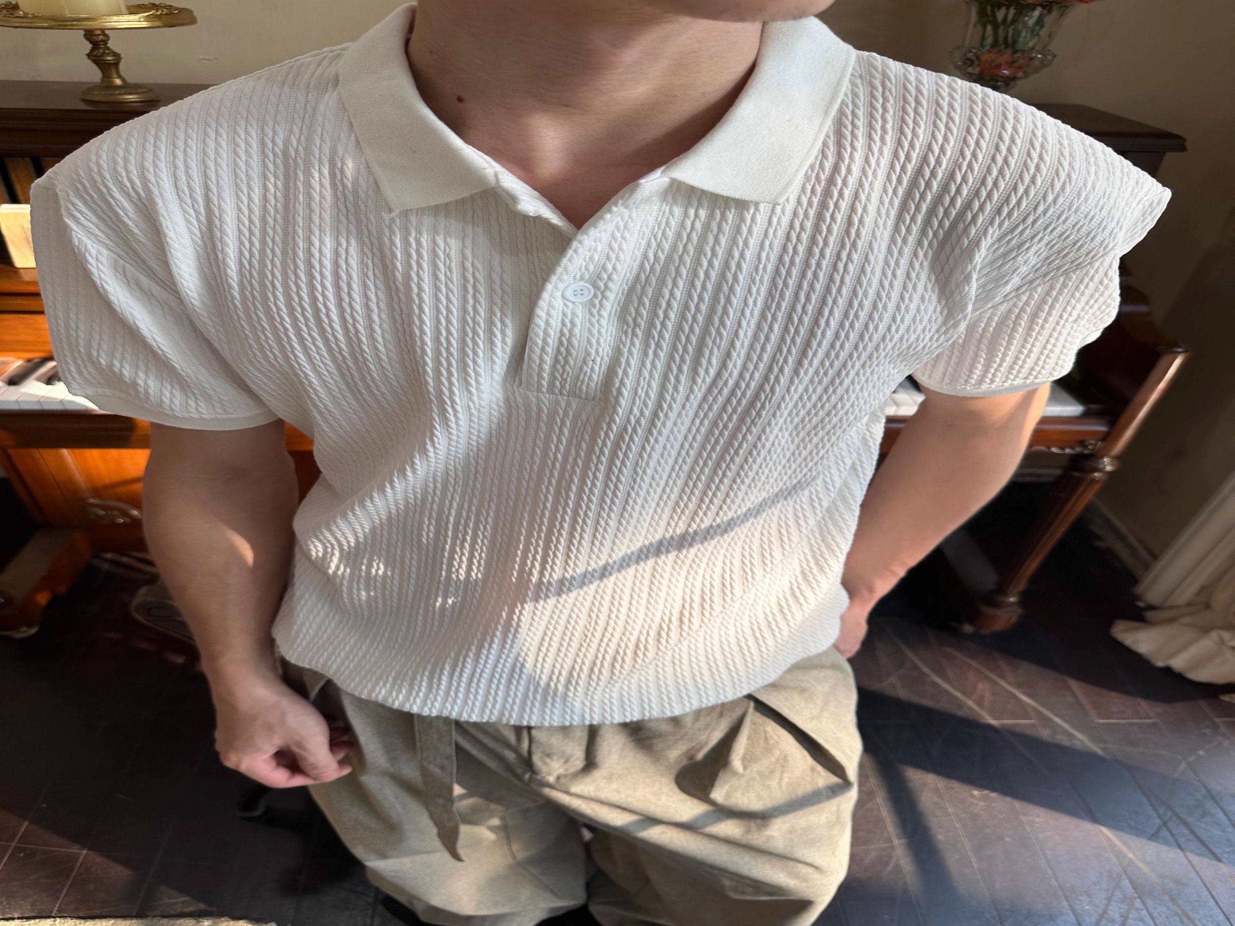 Eme Summer Embossed Henry Collar Short-Sleeve T-Shirt for Men, Cleanfit Vintage Polo Shirt, American-Style Regular Shoulder Top for Women
