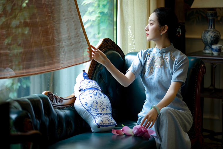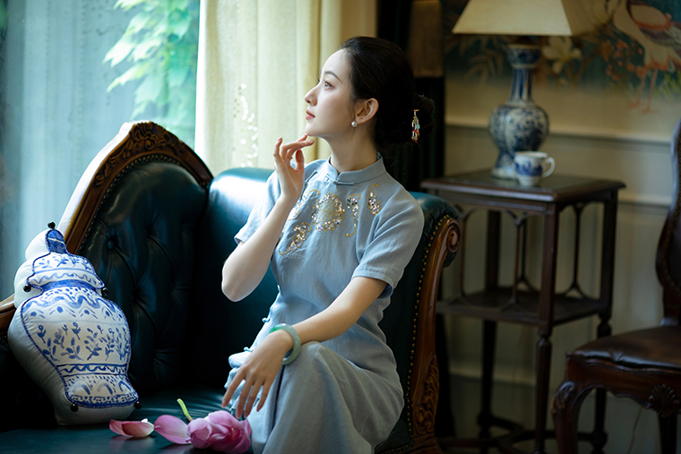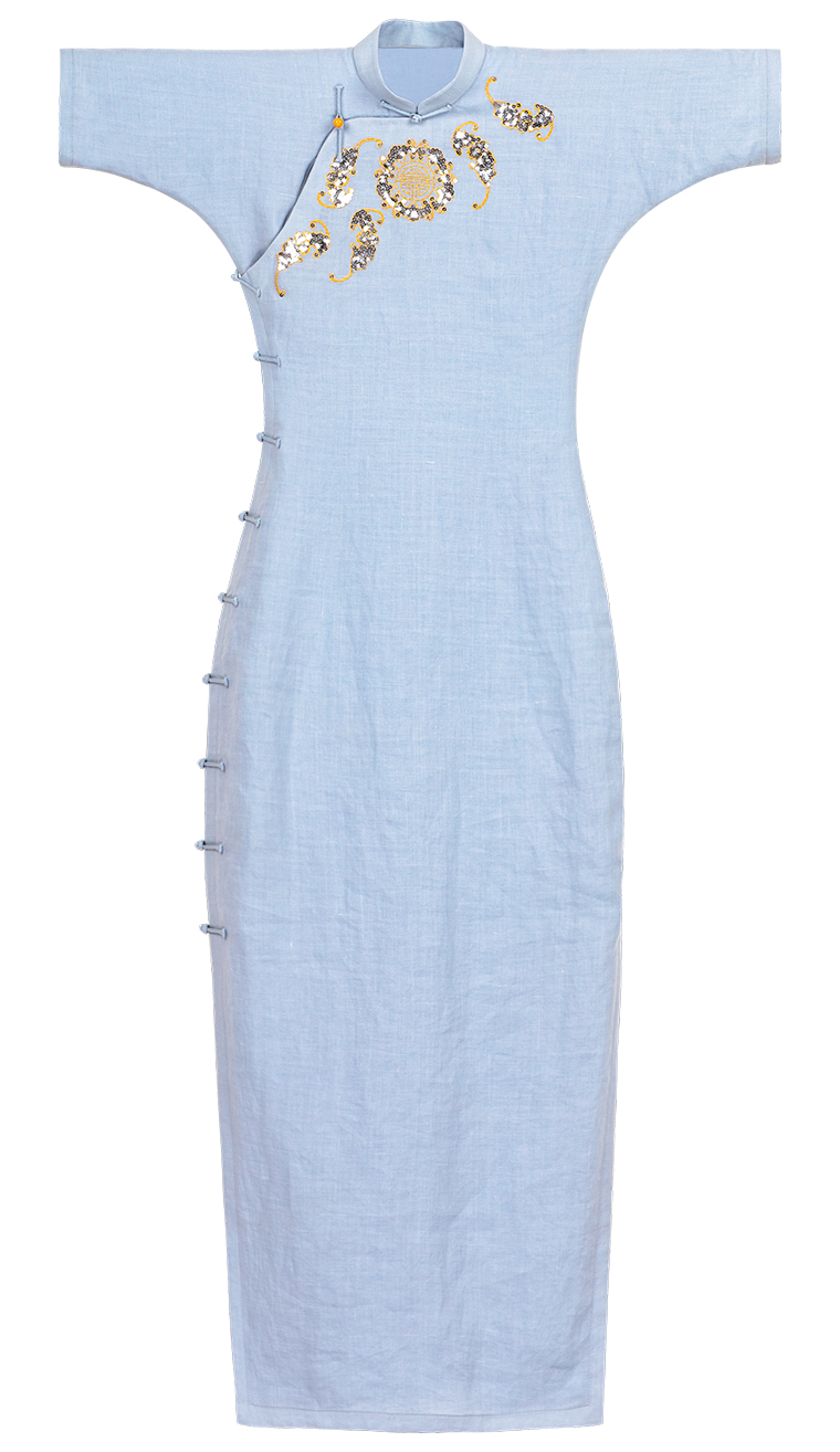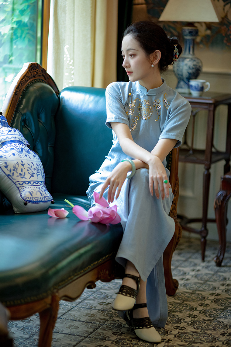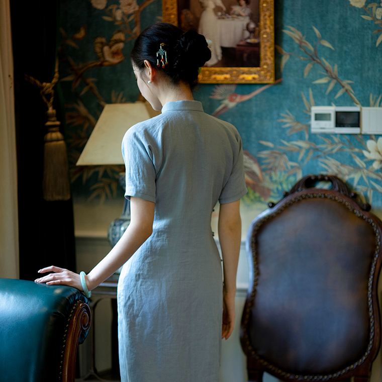 Fuluo Zhi Xiao丨2025 Summer New Collection丨Vintage Ramie Embroidered Floral Quarter-Sleeve Stand Collar Traditional Daily Cheongsam