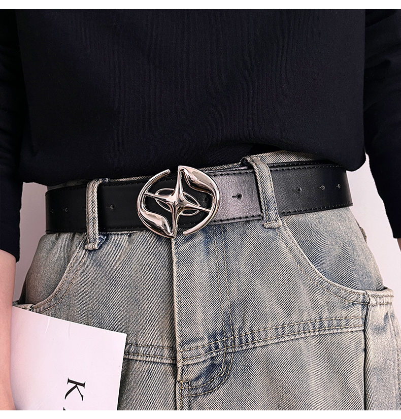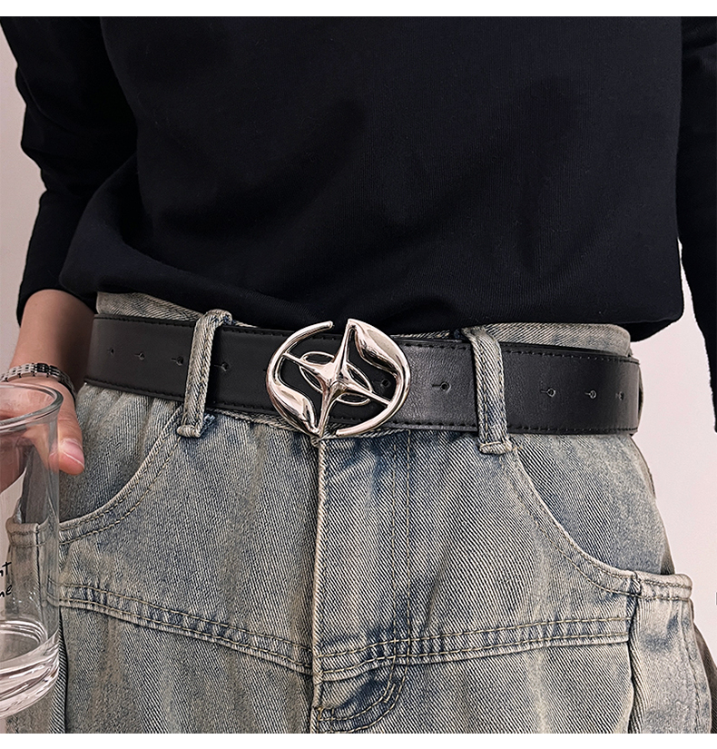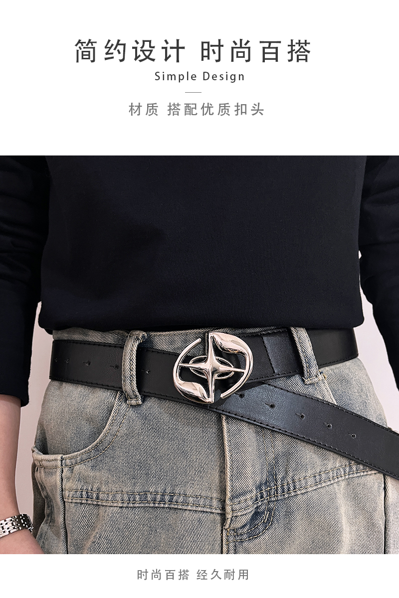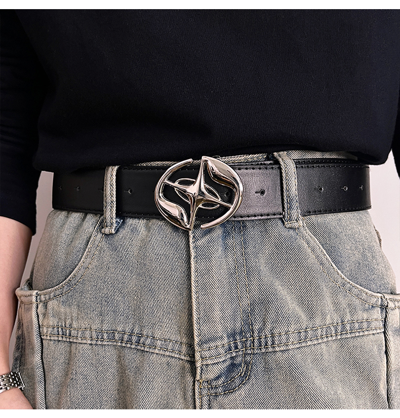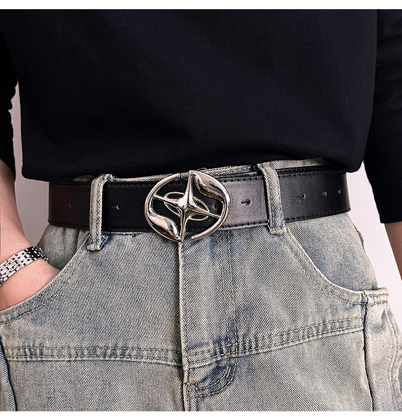 Men's Vintage Black Belt Metal 2025 Men's and Women's New Style Leather Belt Niche Trouser Belt Trendy Young People Women's Style