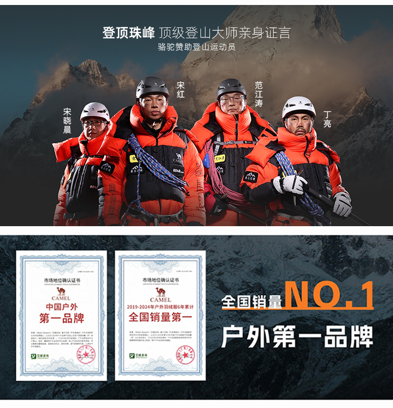 Camel Black Diamond 5 Outdoor Down jacket Winter New arrival Men's and Women's Water-repellent Outwear thickened Aerogel Bread Suit