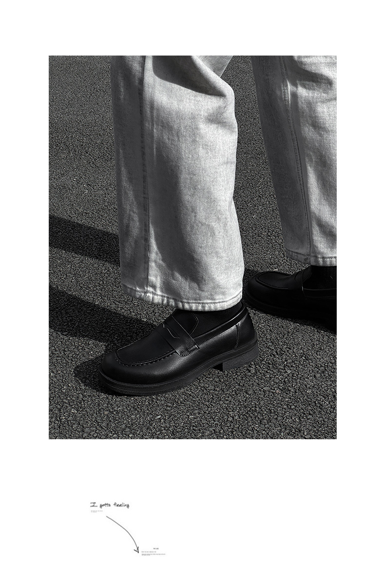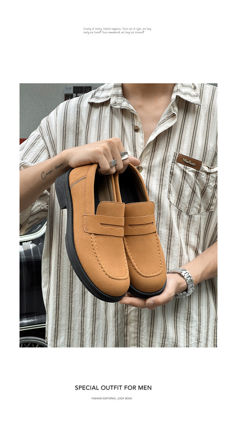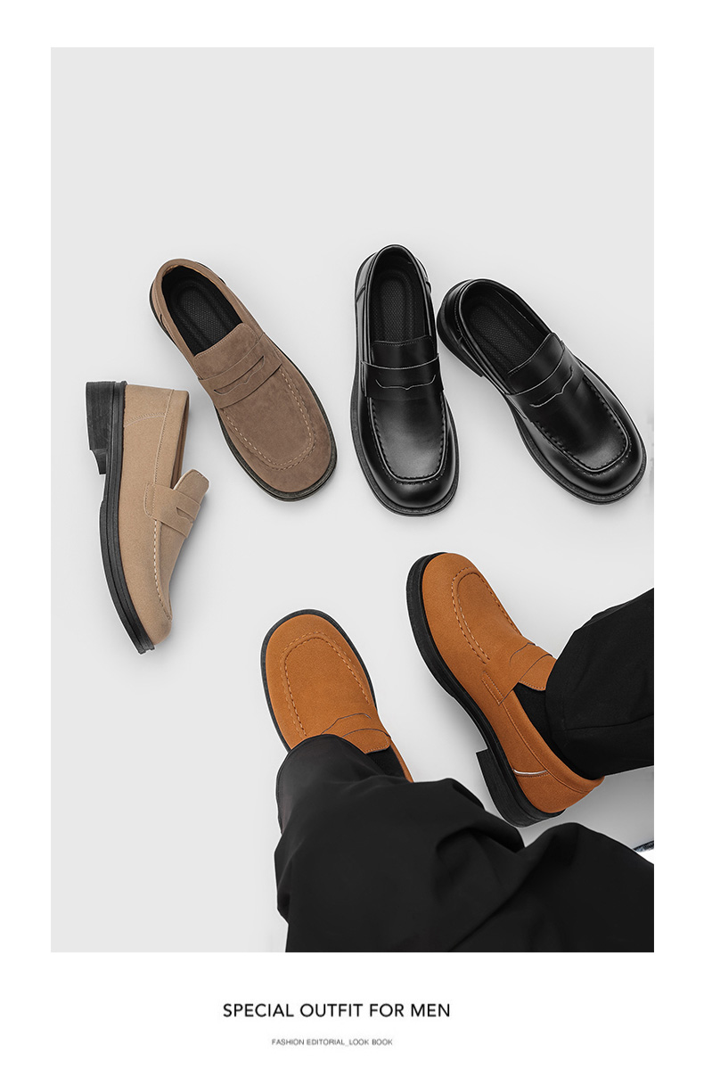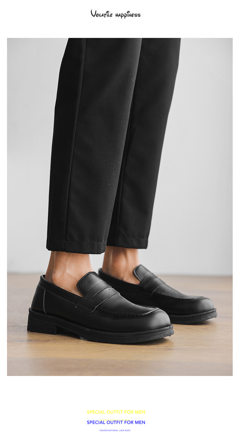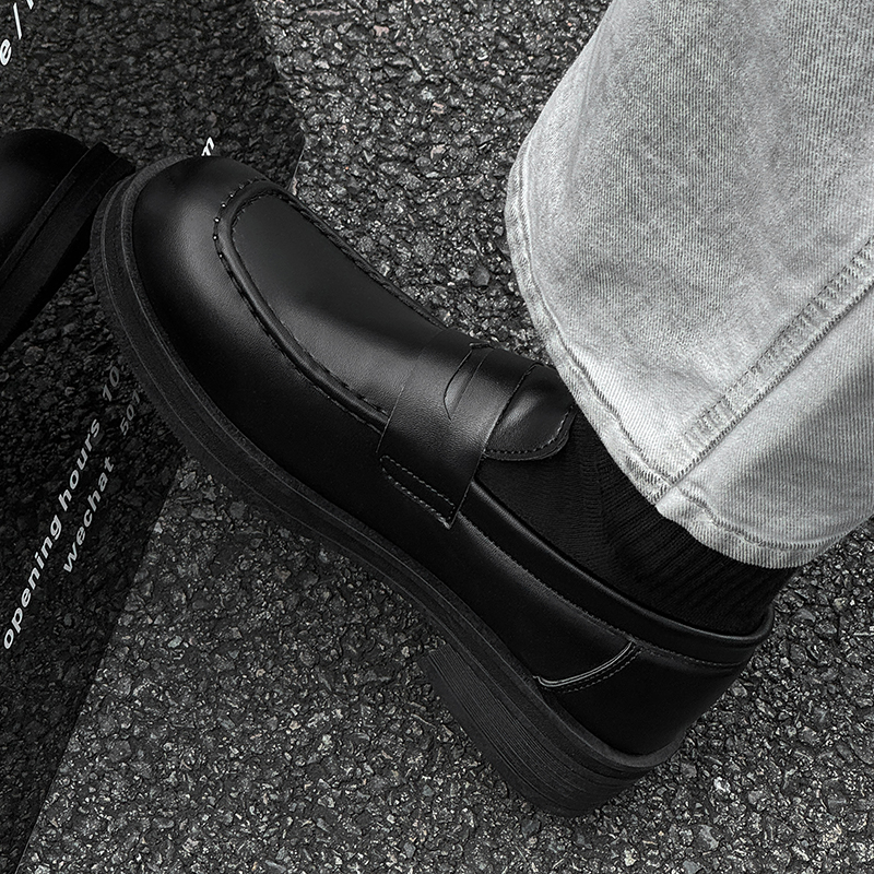 Black Thick-Soled Loafers for Men 2025 New Versatile Slip-On Square-Toe Casual Derby Leather Shoes for Men