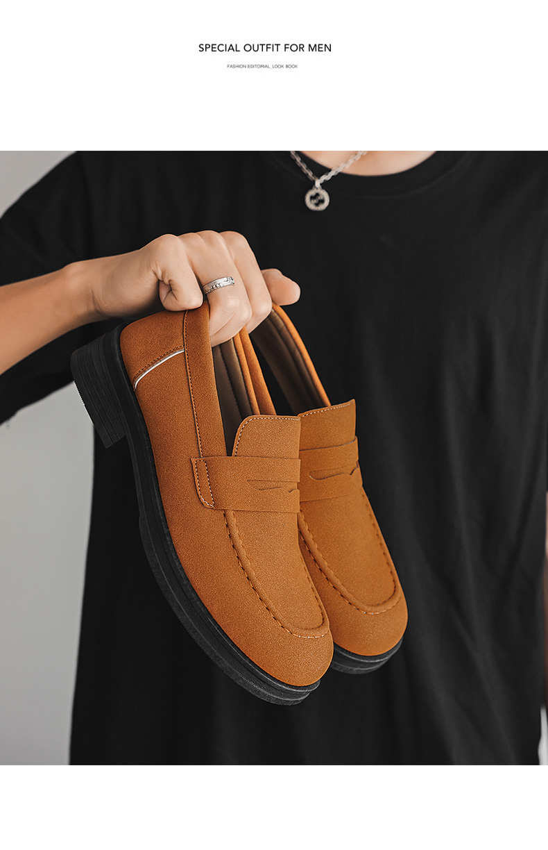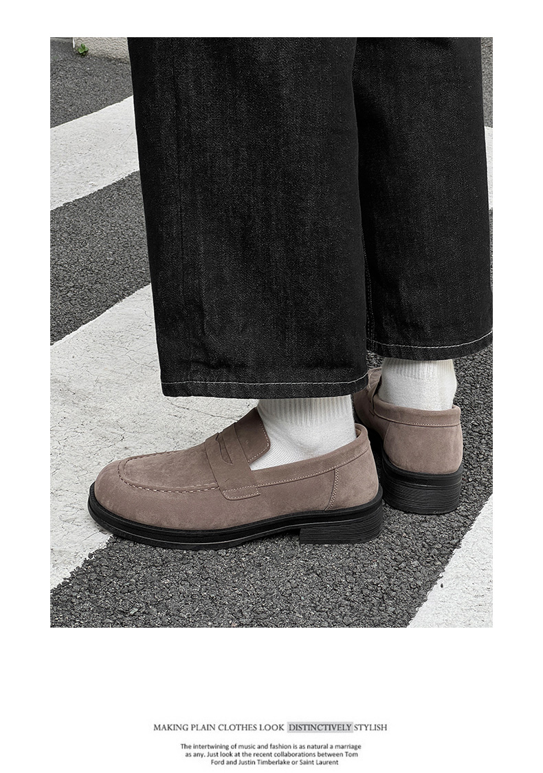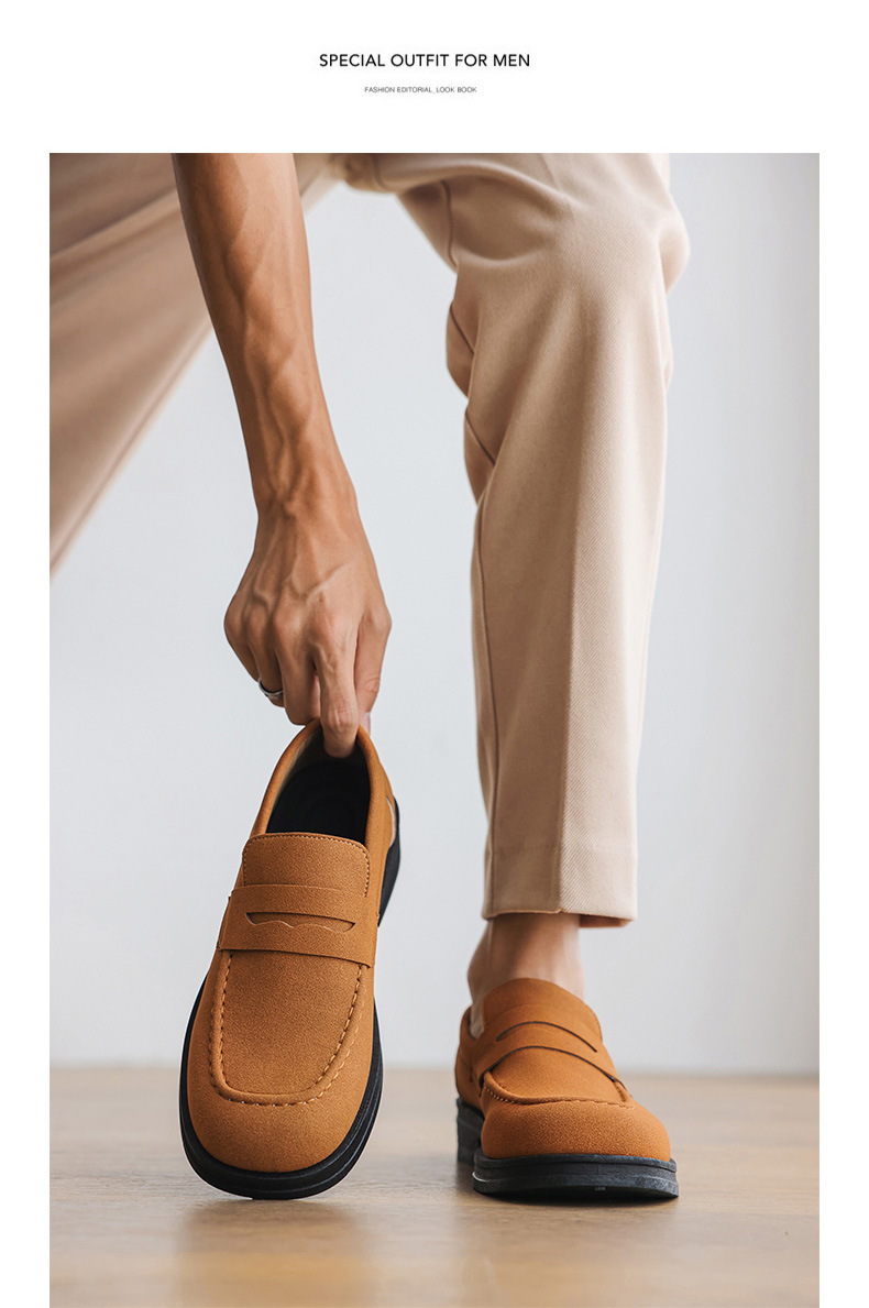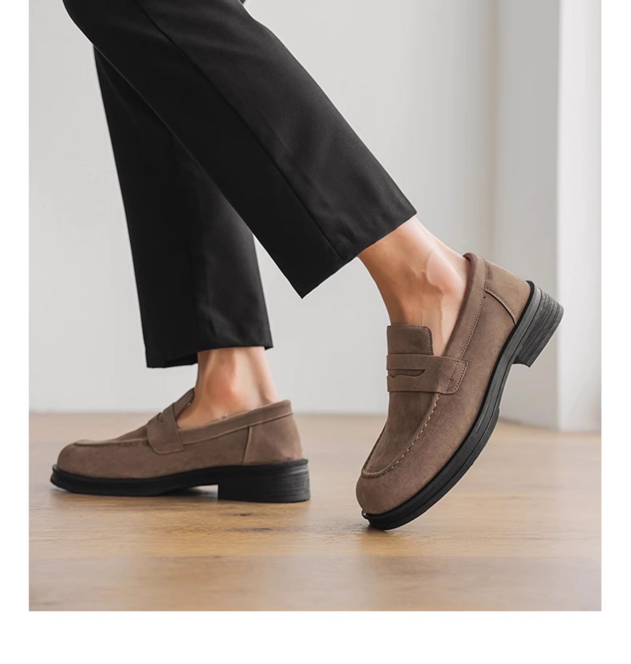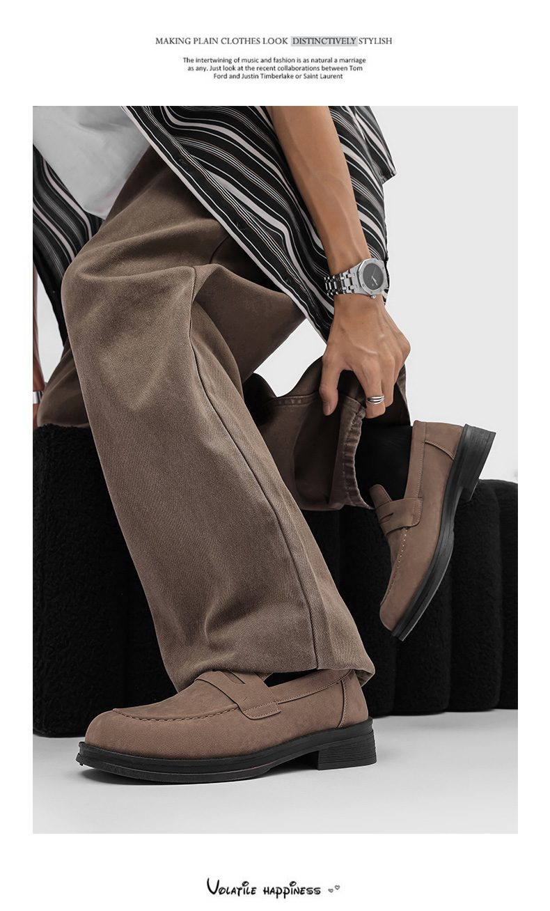 Black Thick-Soled Loafers for Men 2025 New Versatile Slip-On Square-Toe Casual Derby Leather Shoes for Men