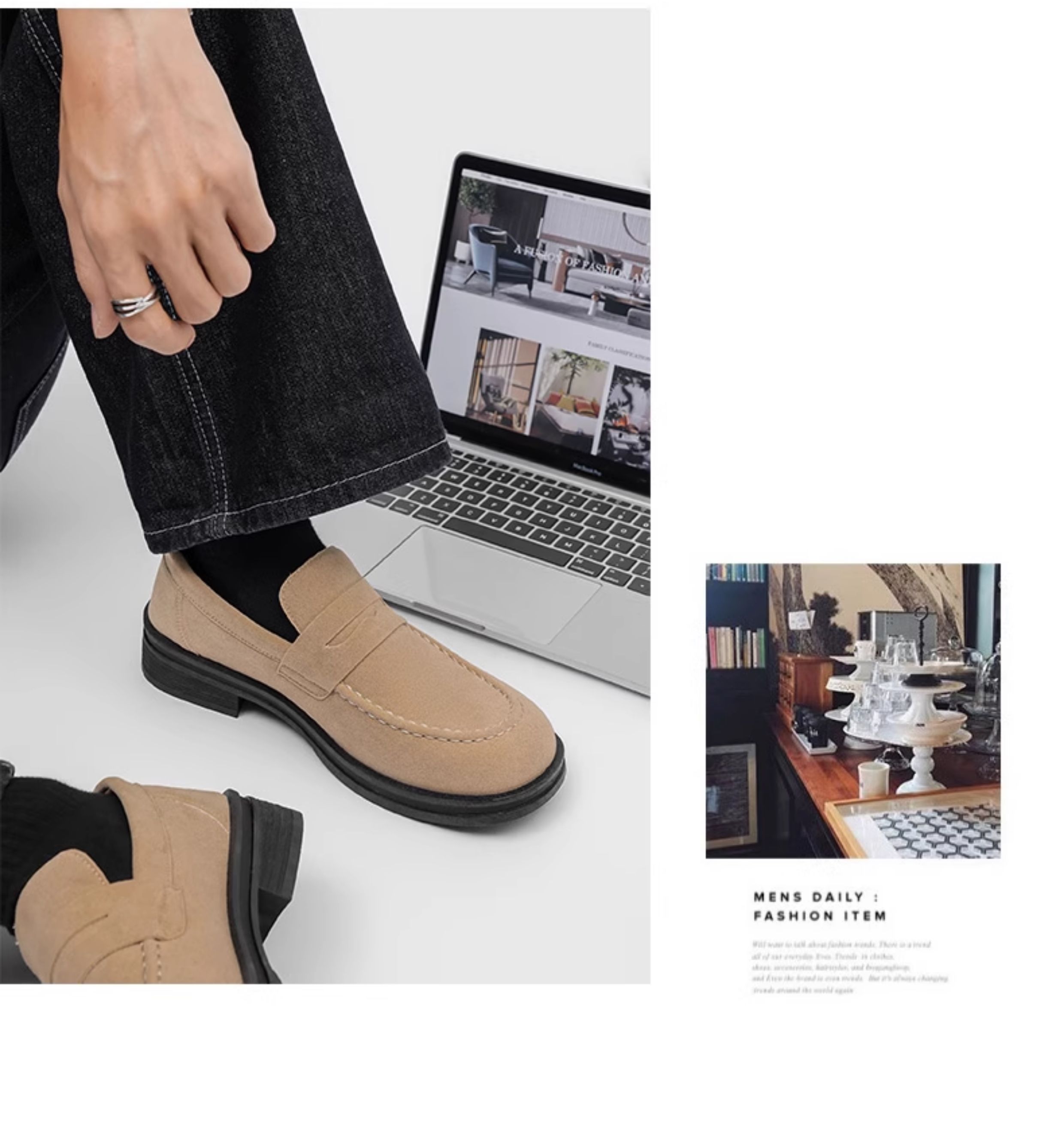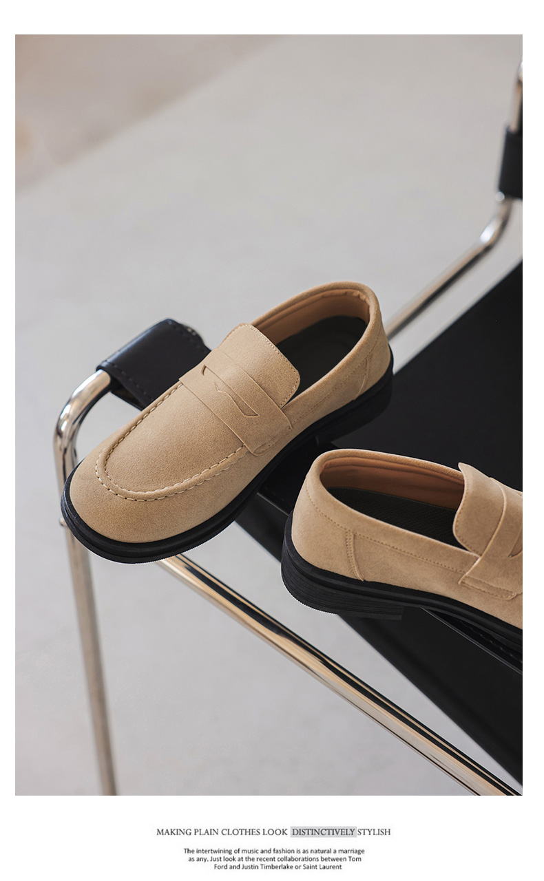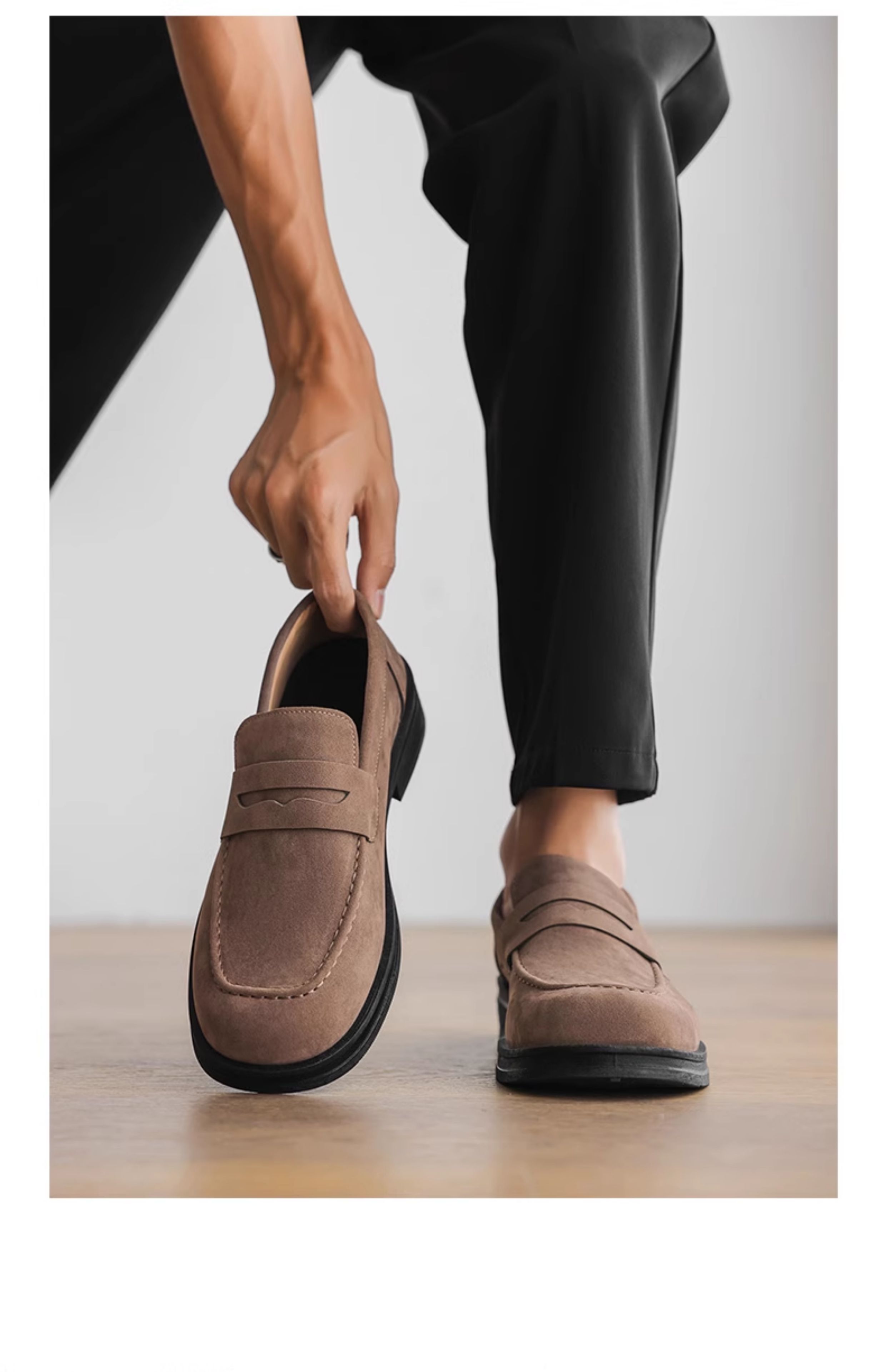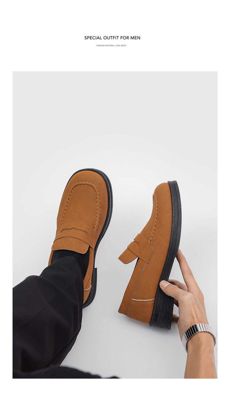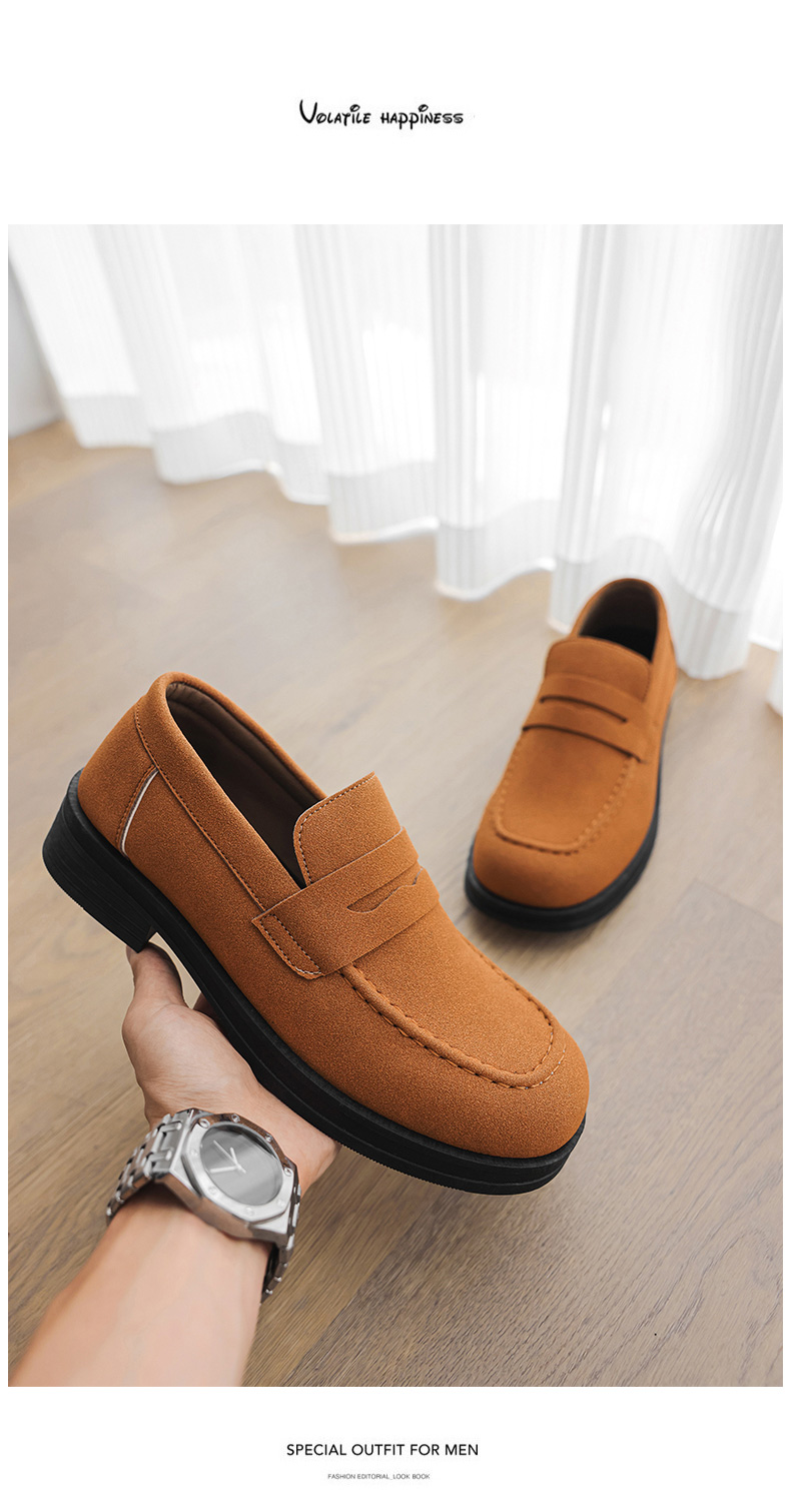 Black Thick-Soled Loafers for Men 2025 New Versatile Slip-On Square-Toe Casual Derby Leather Shoes for Men