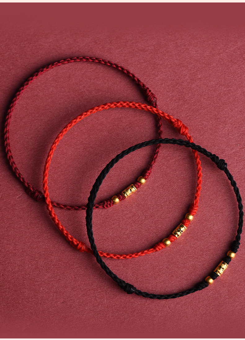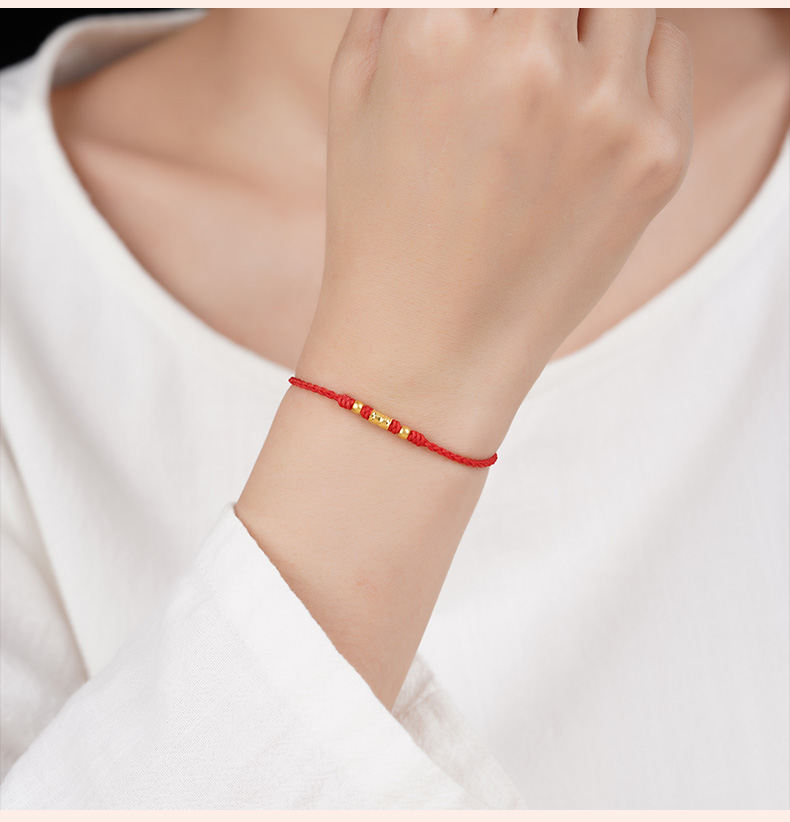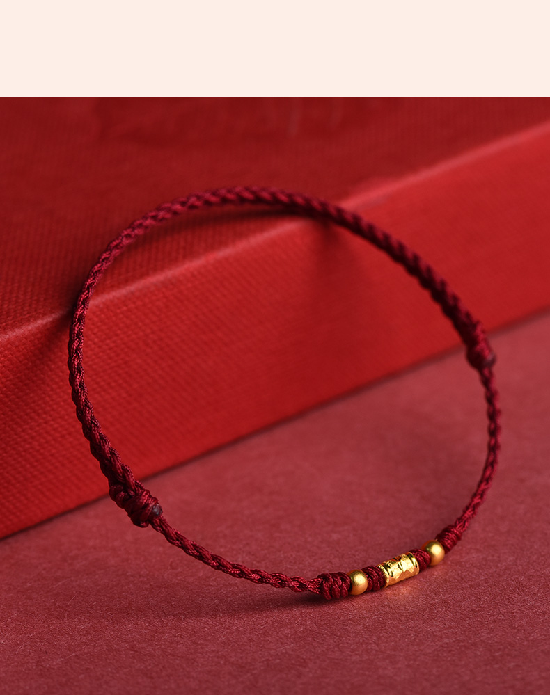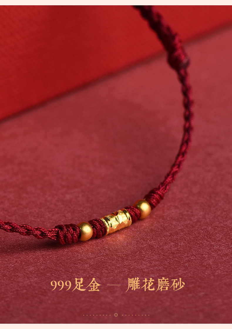 Putuo Mountain Miaohai 999 Pure Foot Gold Bracelet for Men and Women Benmingnian New Transfer Bead Little Red Rope Lutong Foot Rope