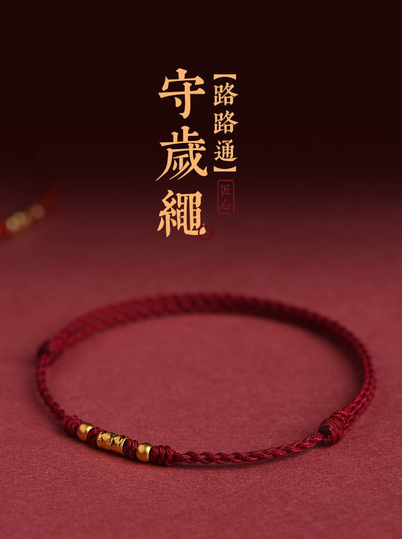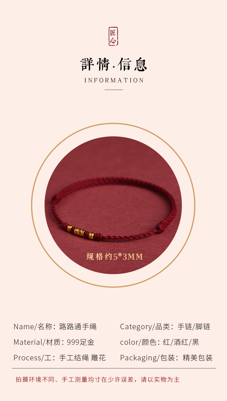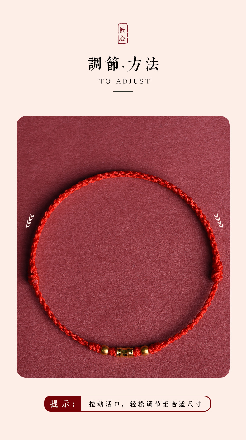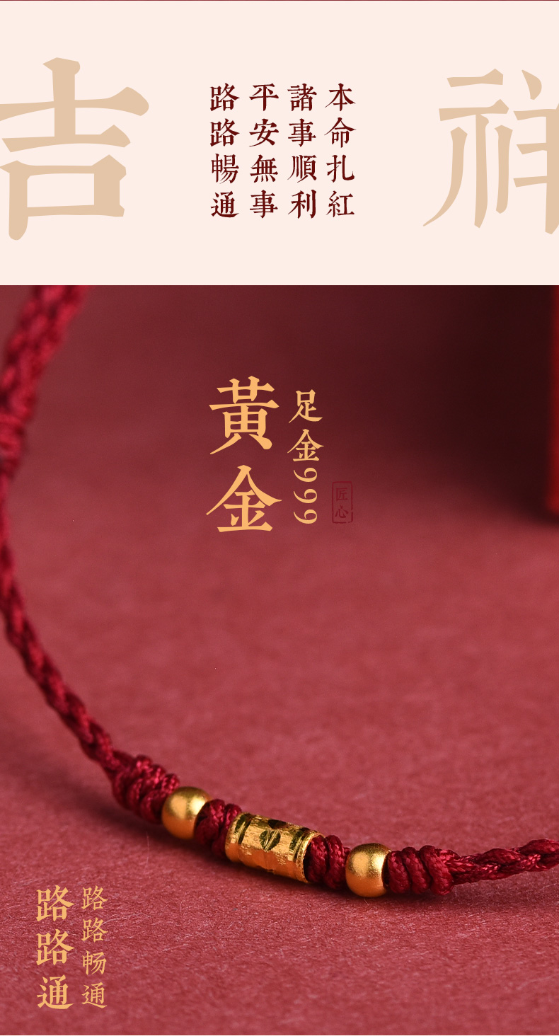 Putuo Mountain Miaohai 999 Pure Foot Gold Bracelet for Men and Women Benmingnian New Transfer Bead Little Red Rope Lutong Foot Rope