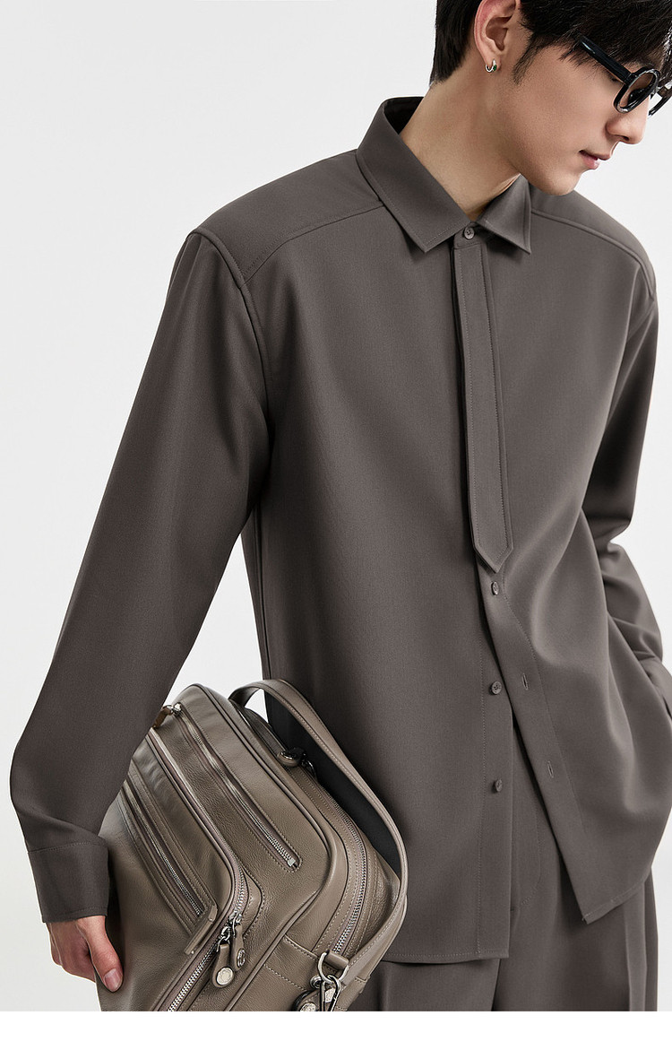 Three-Proof Anti-Wrinkle Custom-Woven High-End Bjze26 Spring and Autumn Long-Sleeve Shirt for Men, Solid Color, Easy-Care Commuter Shirt