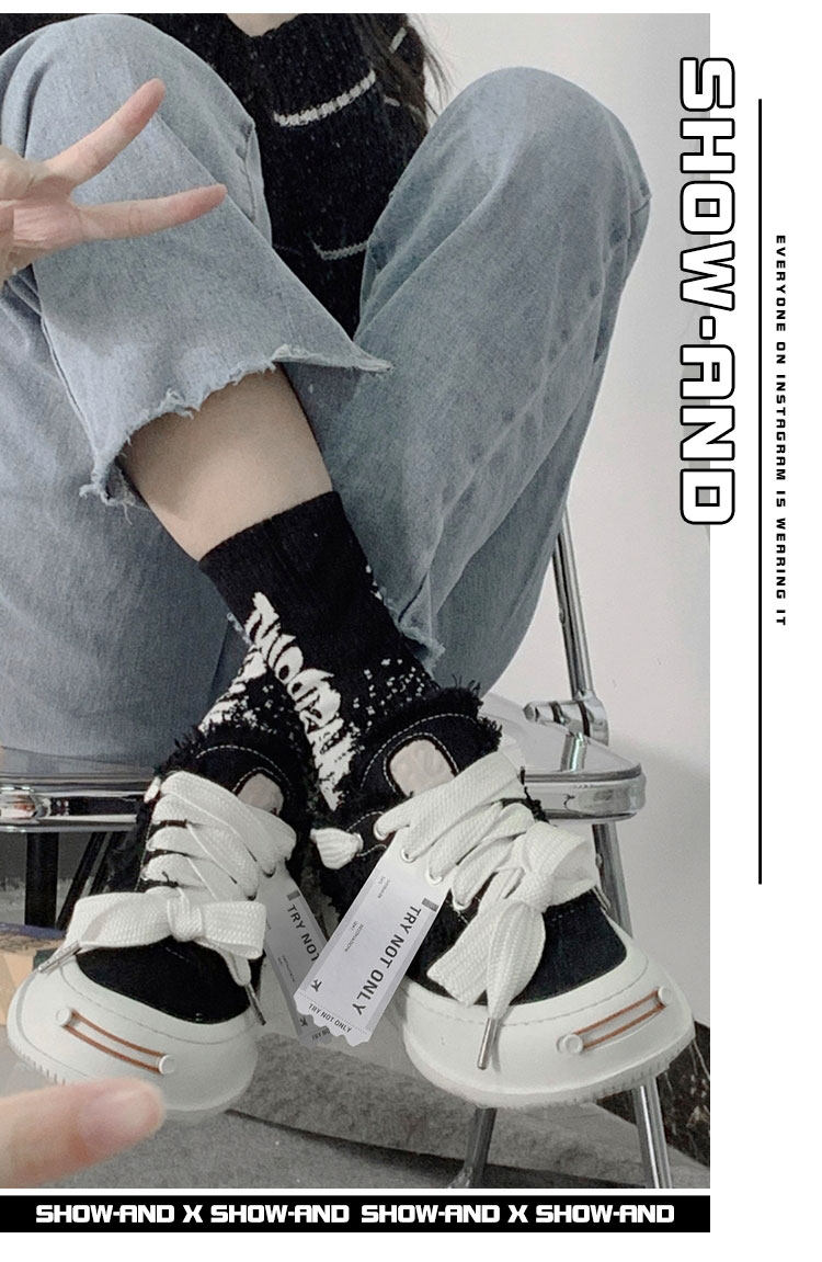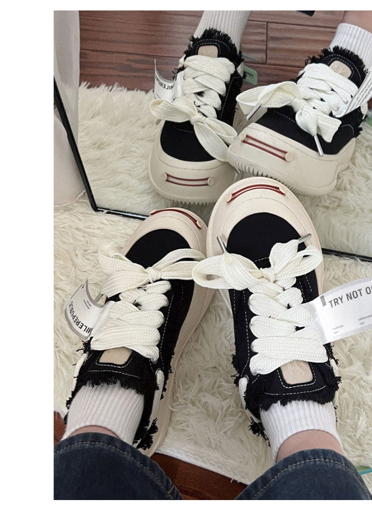 Smiling Canvas Shoes with Dragon Scales, the Same Style as Tan Jianci, Limited Edition for the Year of the Dragon, White Sneakers with Thick Soles, Summer Thick-Soled Women's Shoes