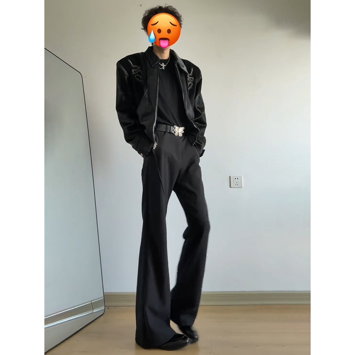 Cleanfit Black Micro-Flared Knife-Cut Dress Pants for Men, High-End Drape Effect Suit Pants, Extra-Long Pants for Tall Individuals