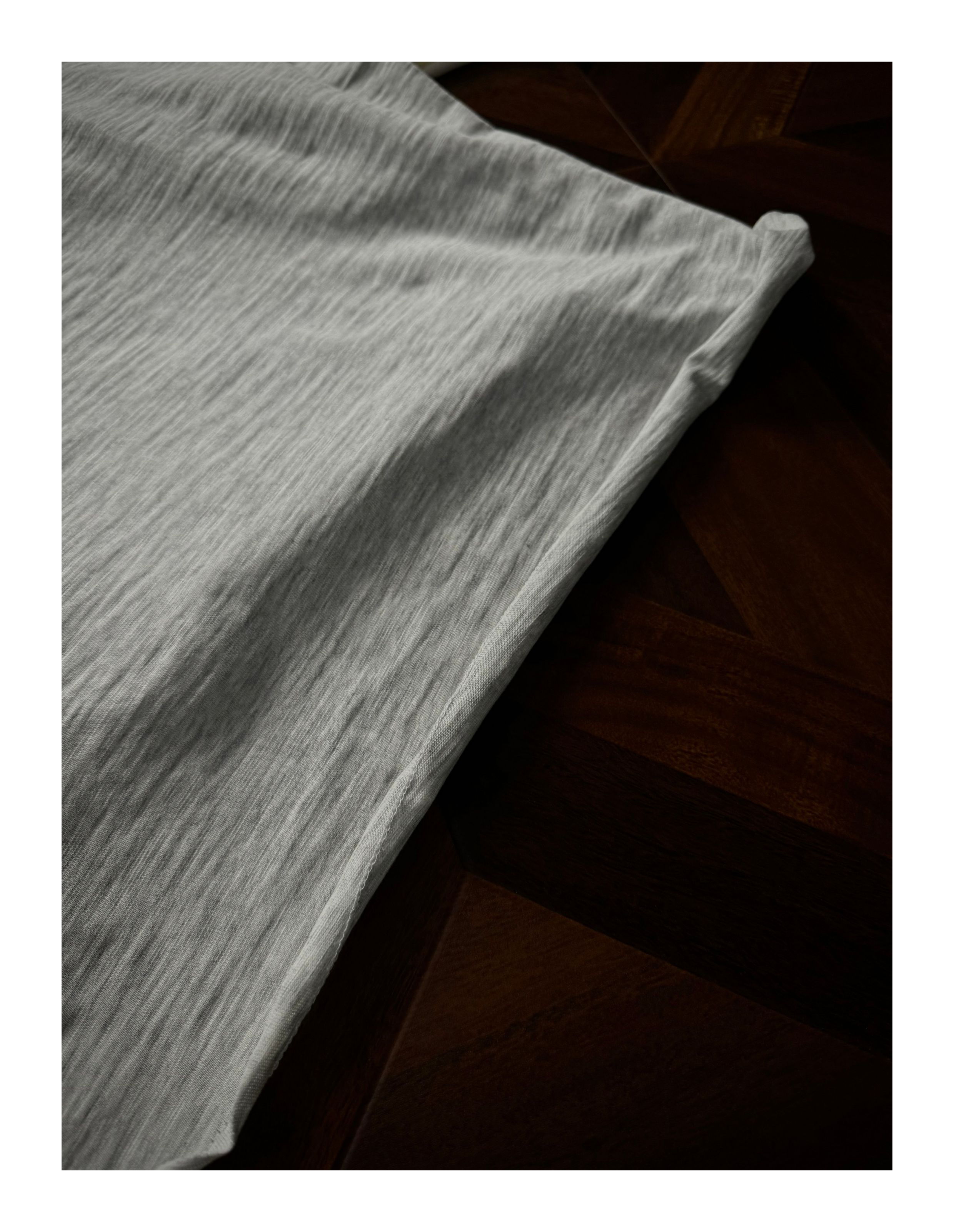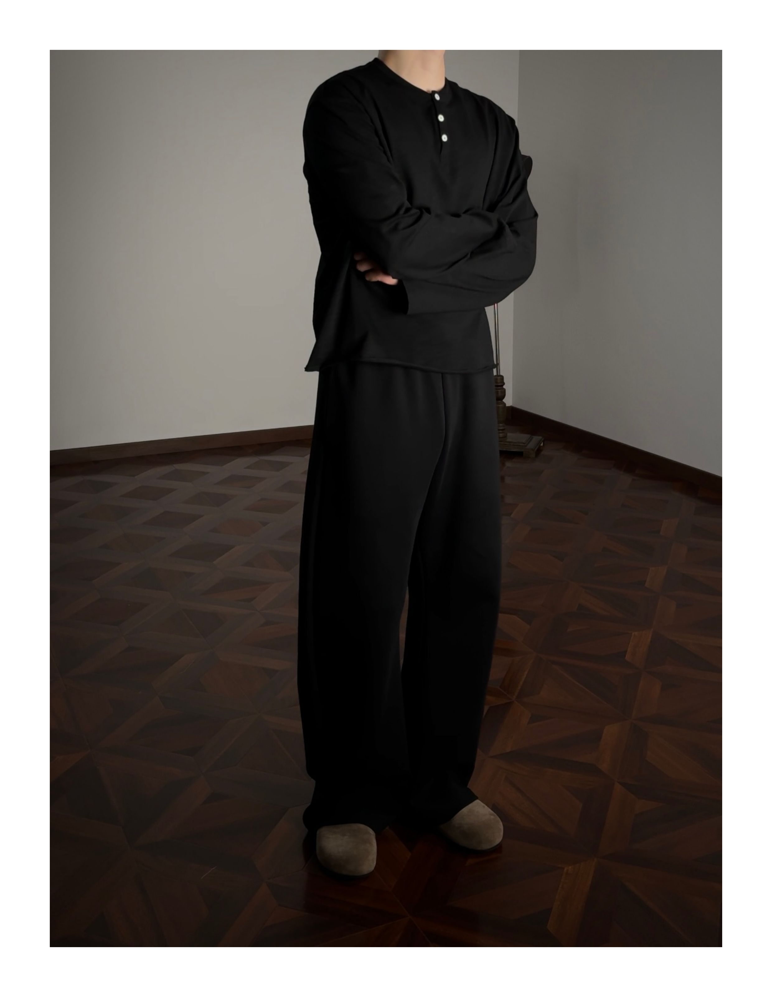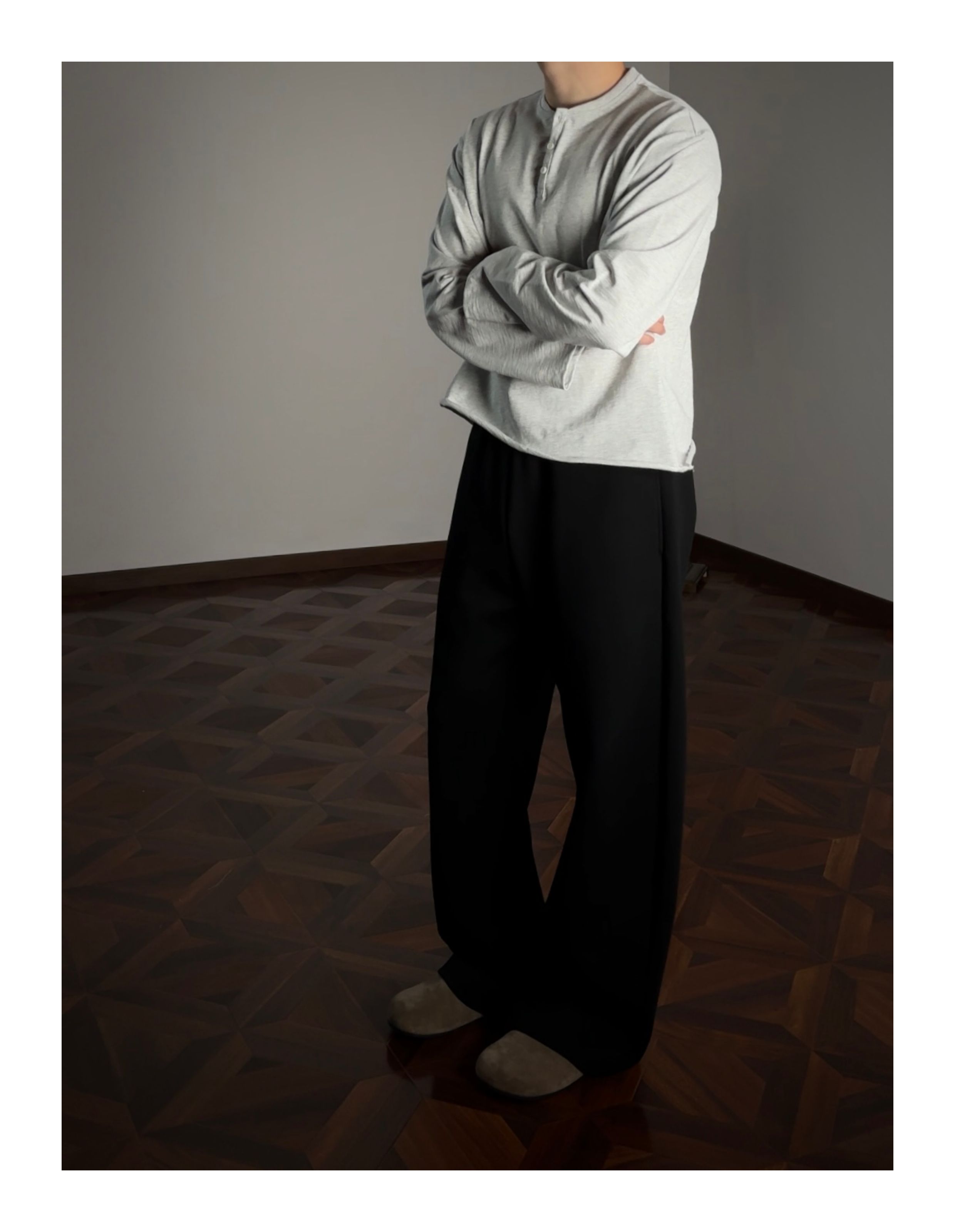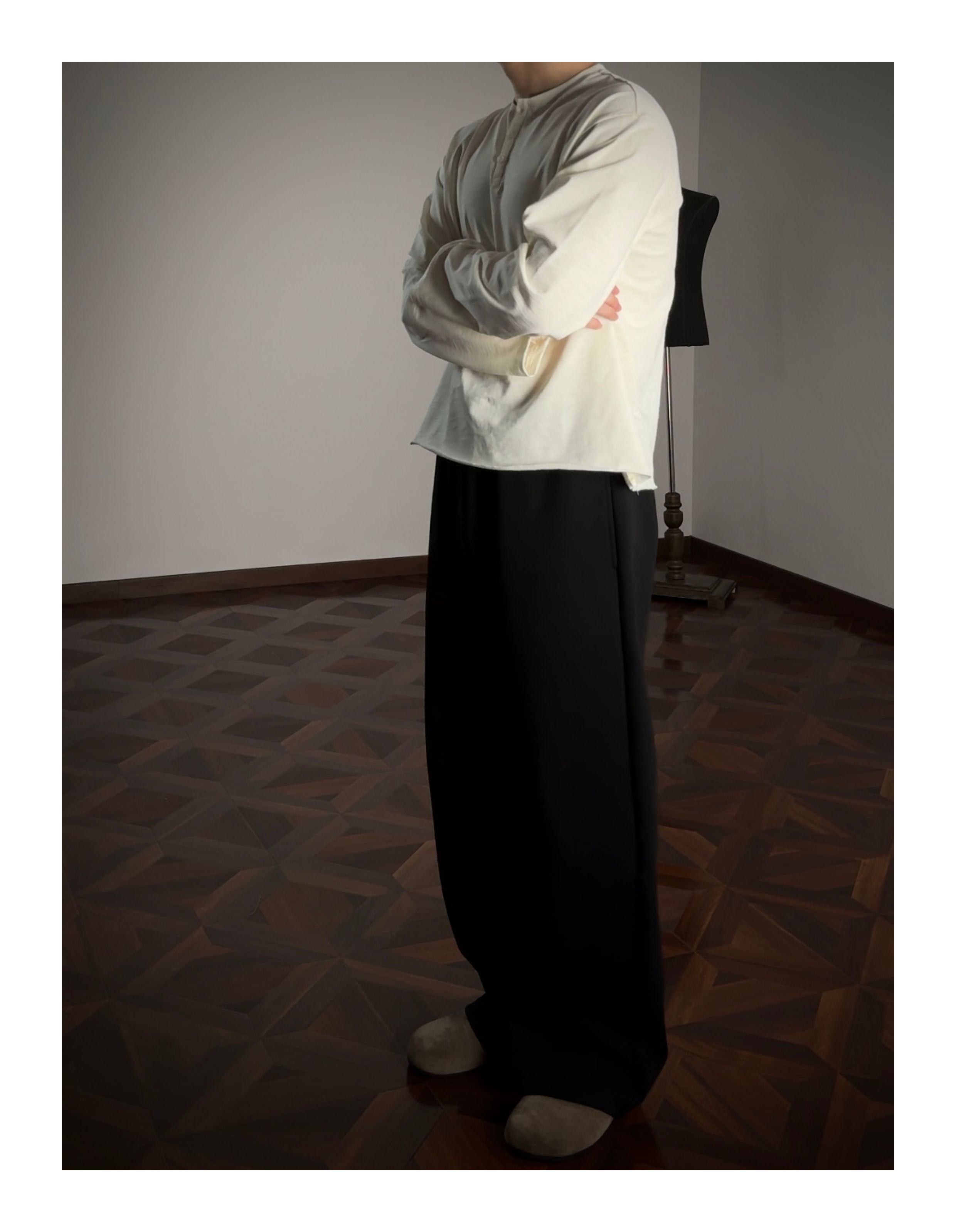 Oclin Bamboo Texture Henry Collar Long-Sleeve Shirt with Rolled Hem, Short and Wide Fit, Pure Cotton Commuter Essential, Shell Buttons