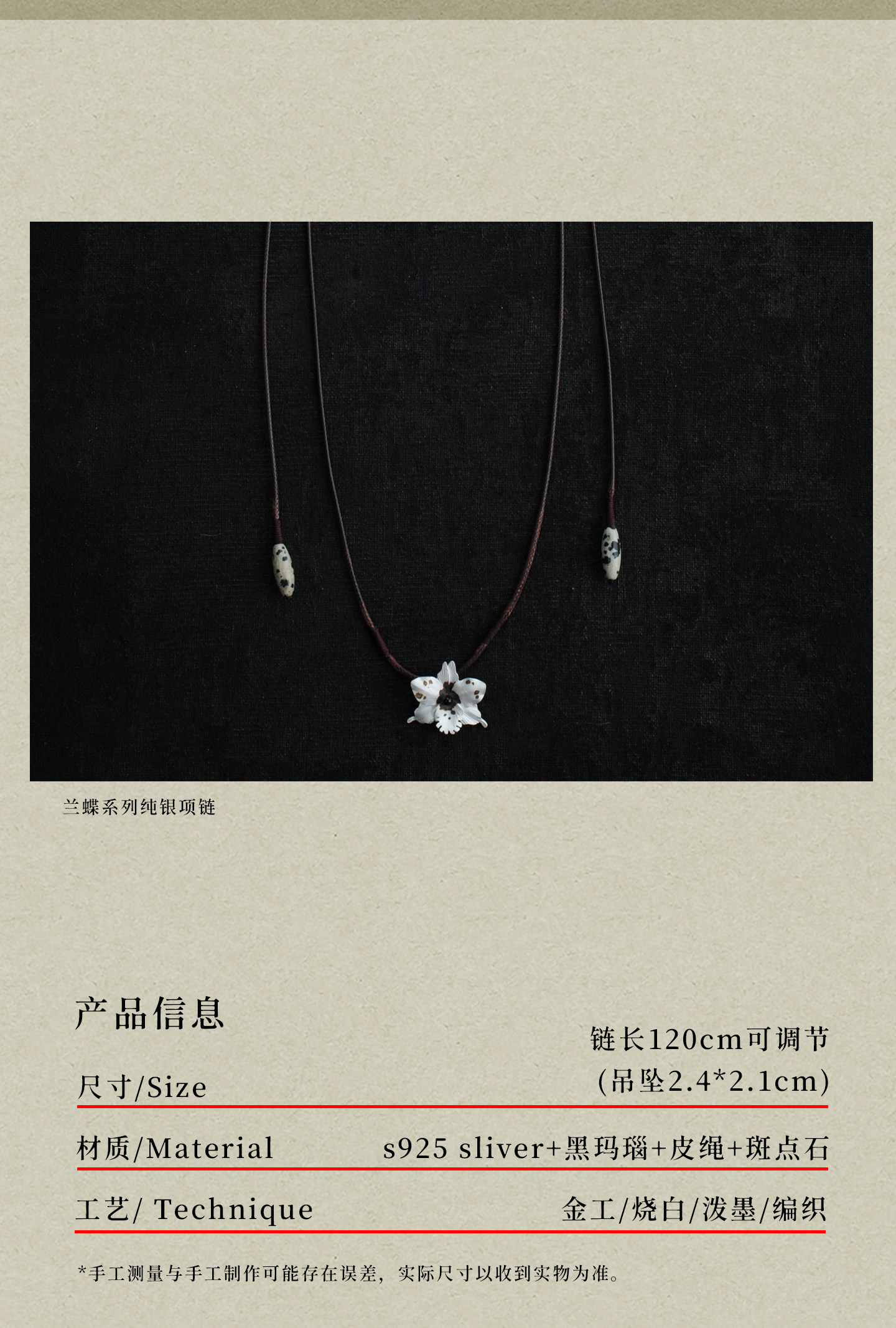 Yiyu Yiyu Lan Die Series S925 Sterling Silver Sweater Chain Braided Rope Ink Splashing Art Original Niche Handmade Silver Jewelry