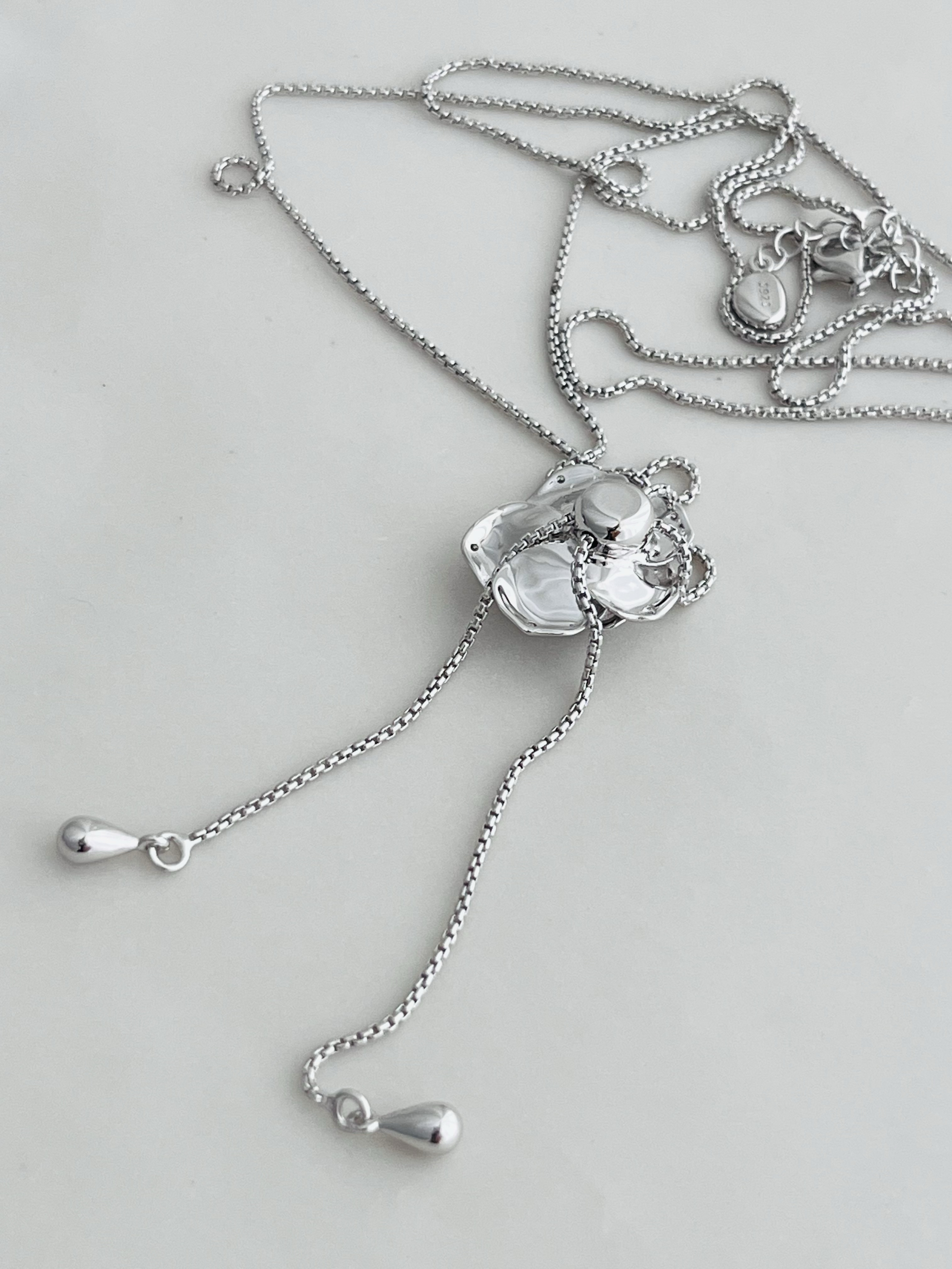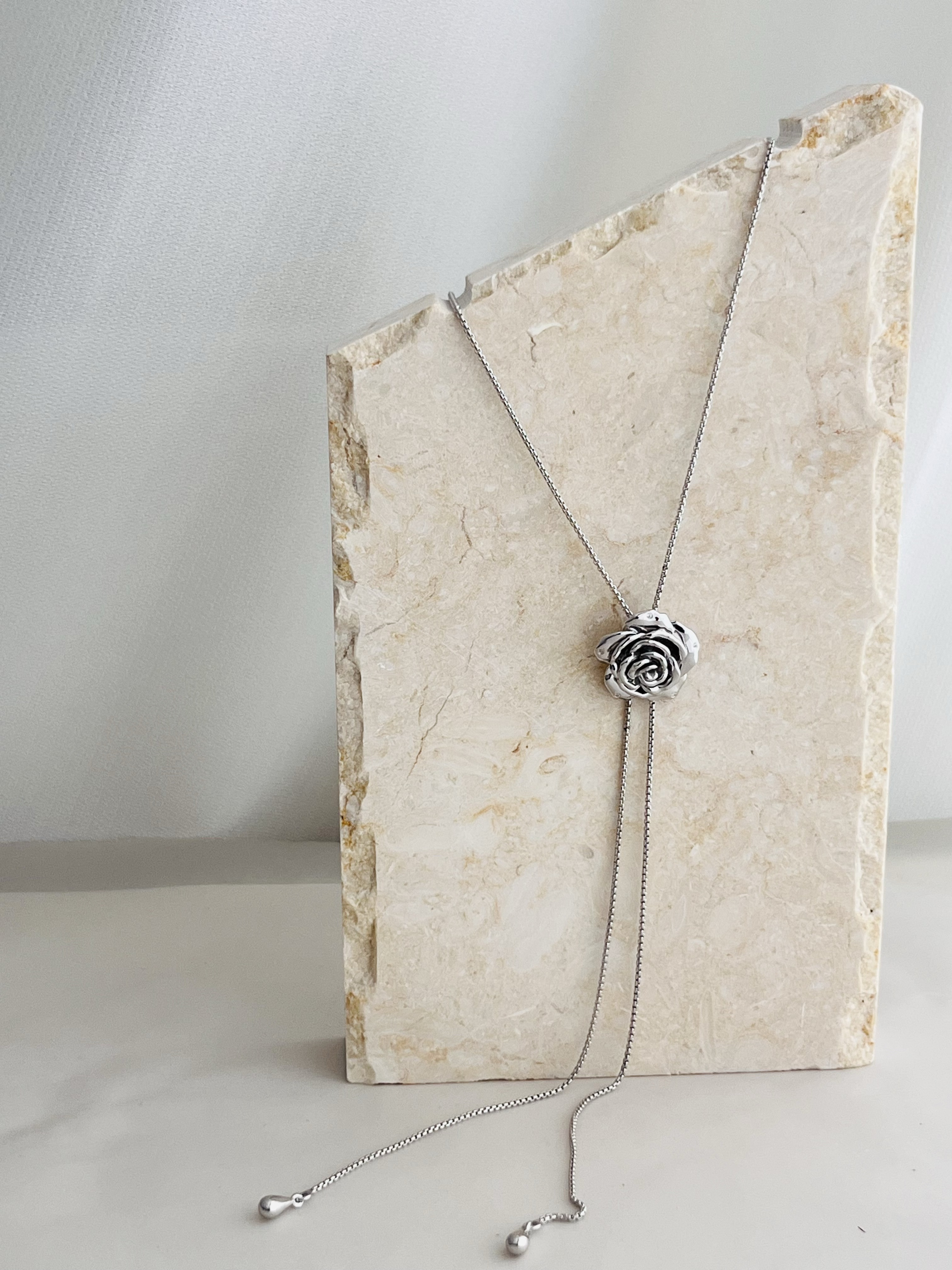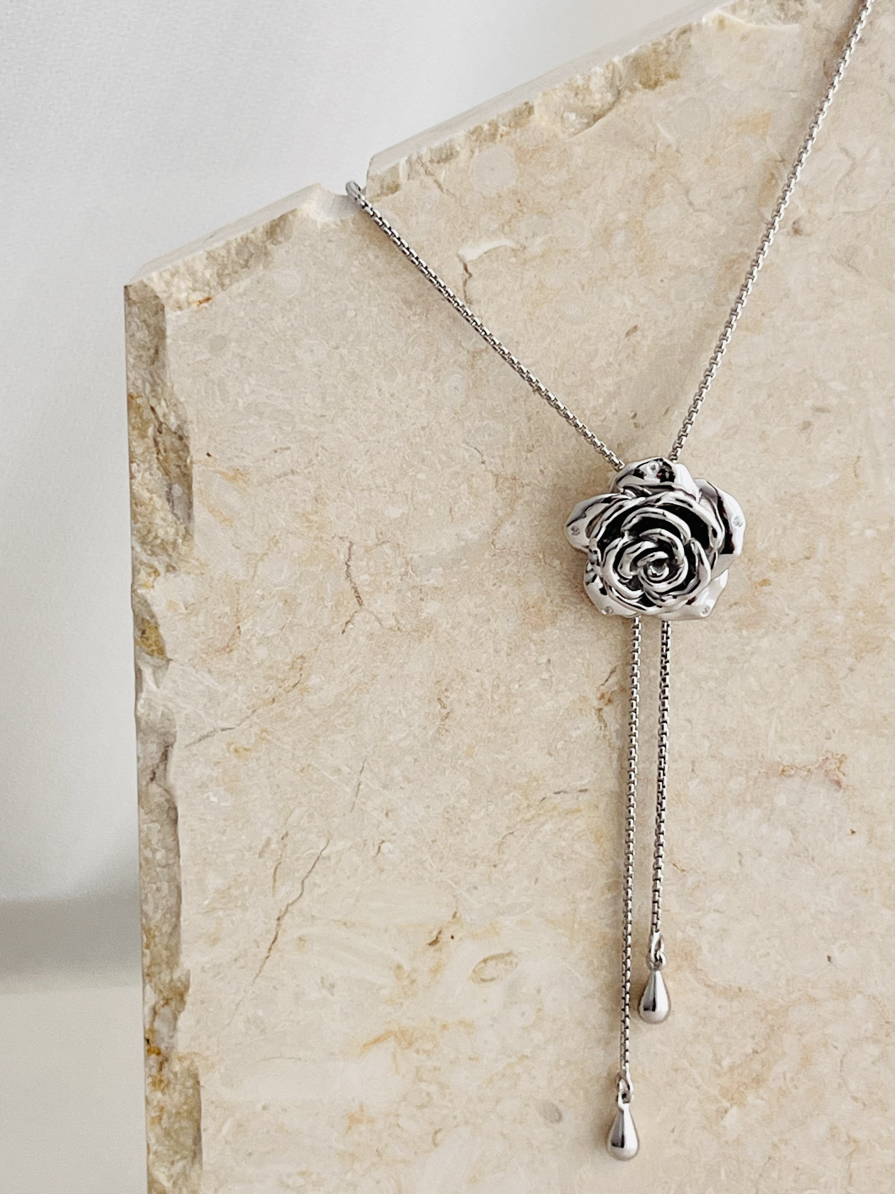 Designer Style All-Over S925 Sterling Silver Rhodium-Plated Vintage Camellia Necklace Niche High-End Fashion Sweater Chain