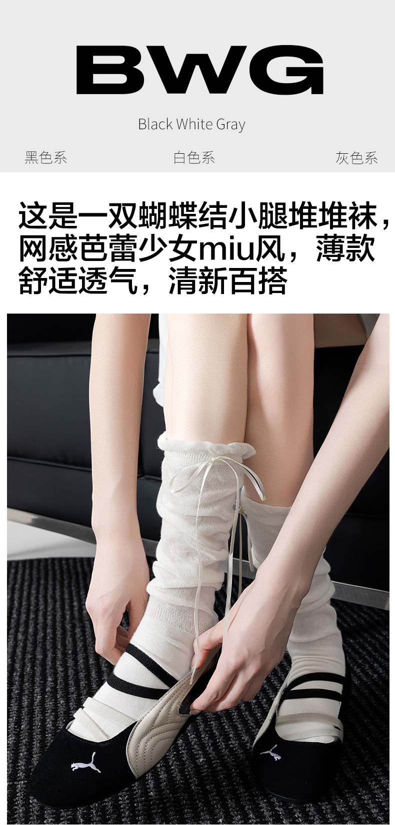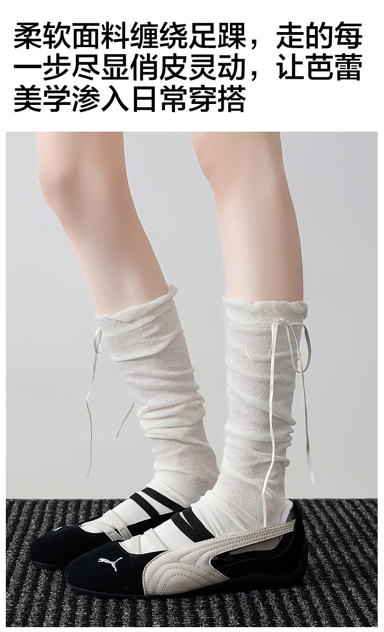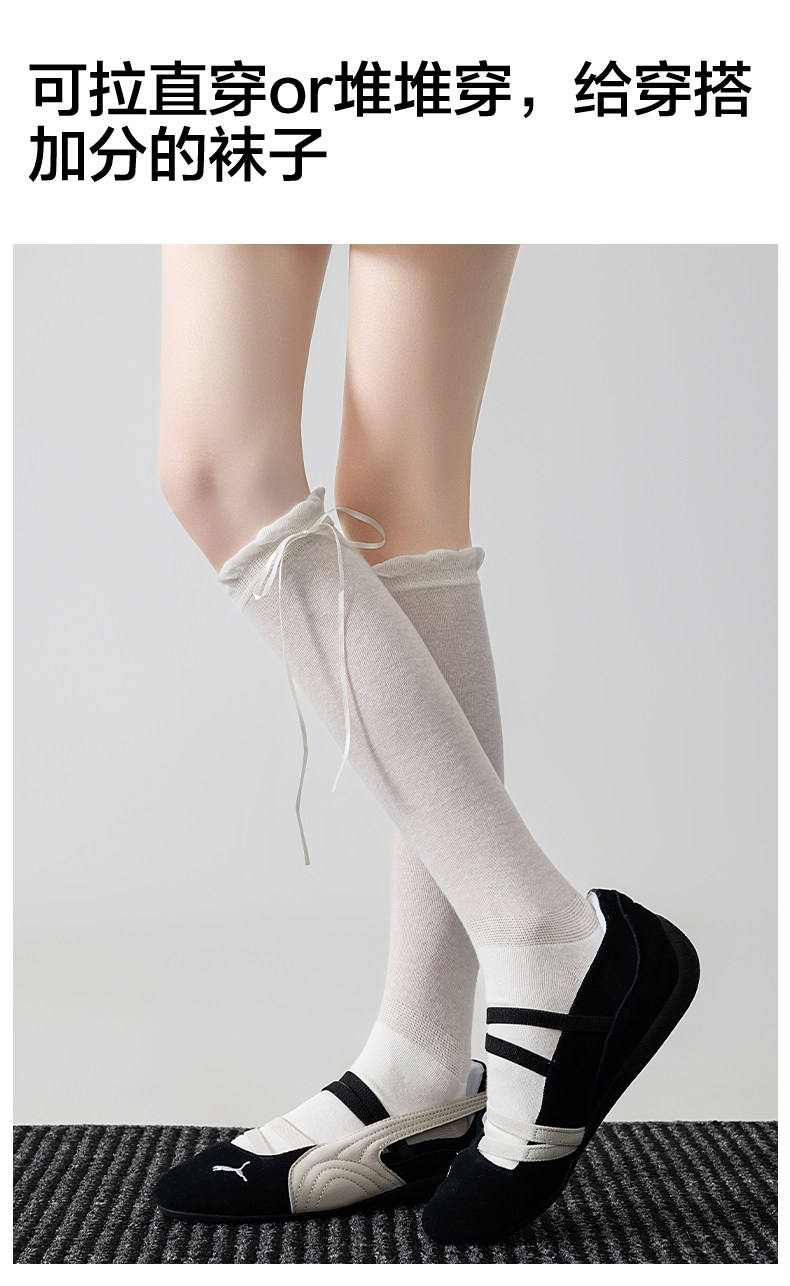 Bwg Pink Bow Socks Calf Socks Women's Summer Thin Slouch Socks Ballet Style 2025 New Popular Long Socks