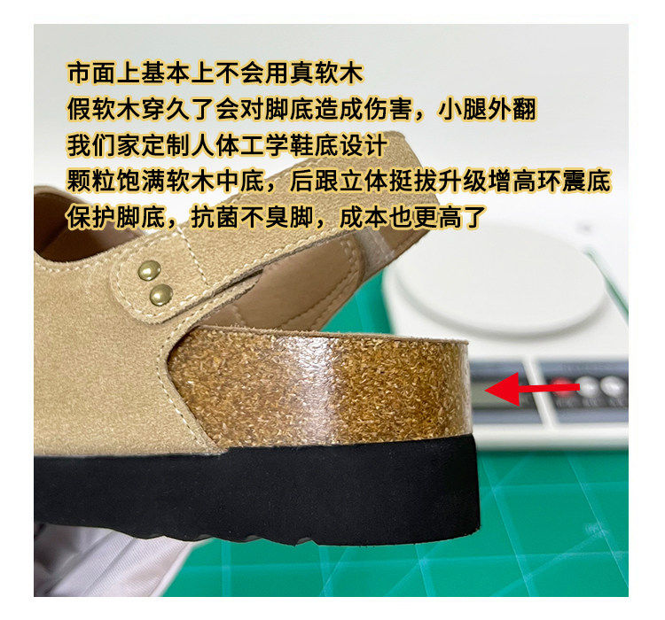 Sanli Thick-Soled Open-Toe Birkenstock Sandals for Women, Spring and Summer Genuine Leather Fashion Casual Comfortable Versatile Roman Sandals